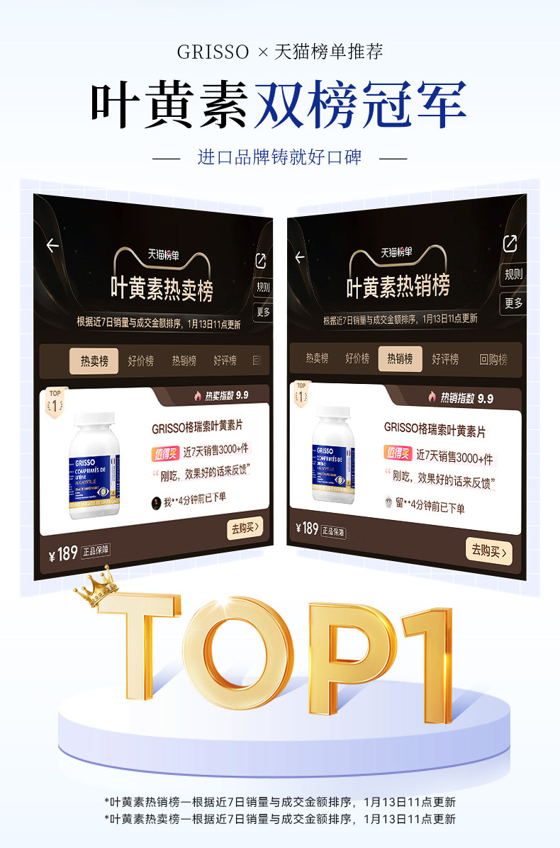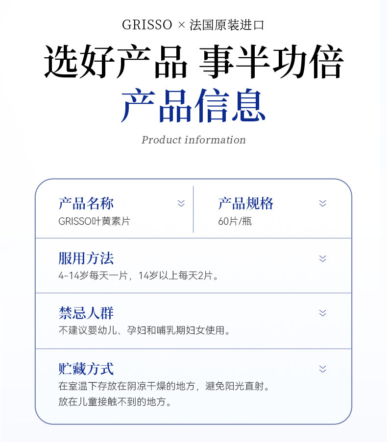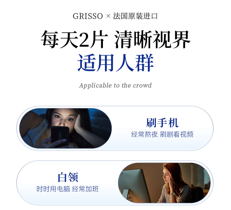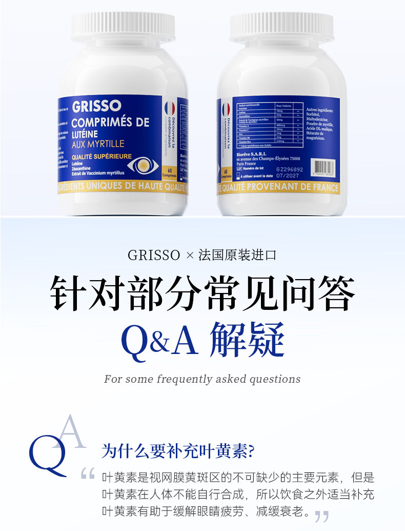 GRISSO格瑞索叶黄素片干痒游离态小分子稳定眼视力高纯度红血丝
