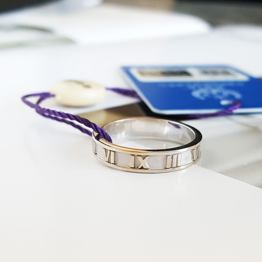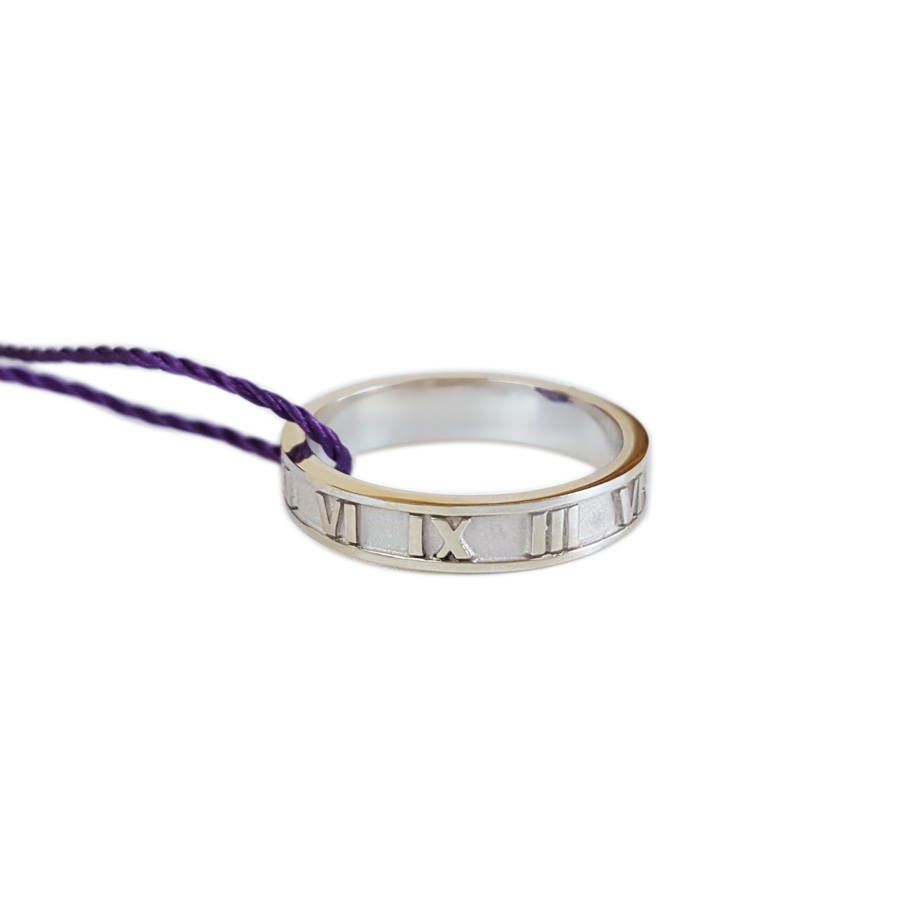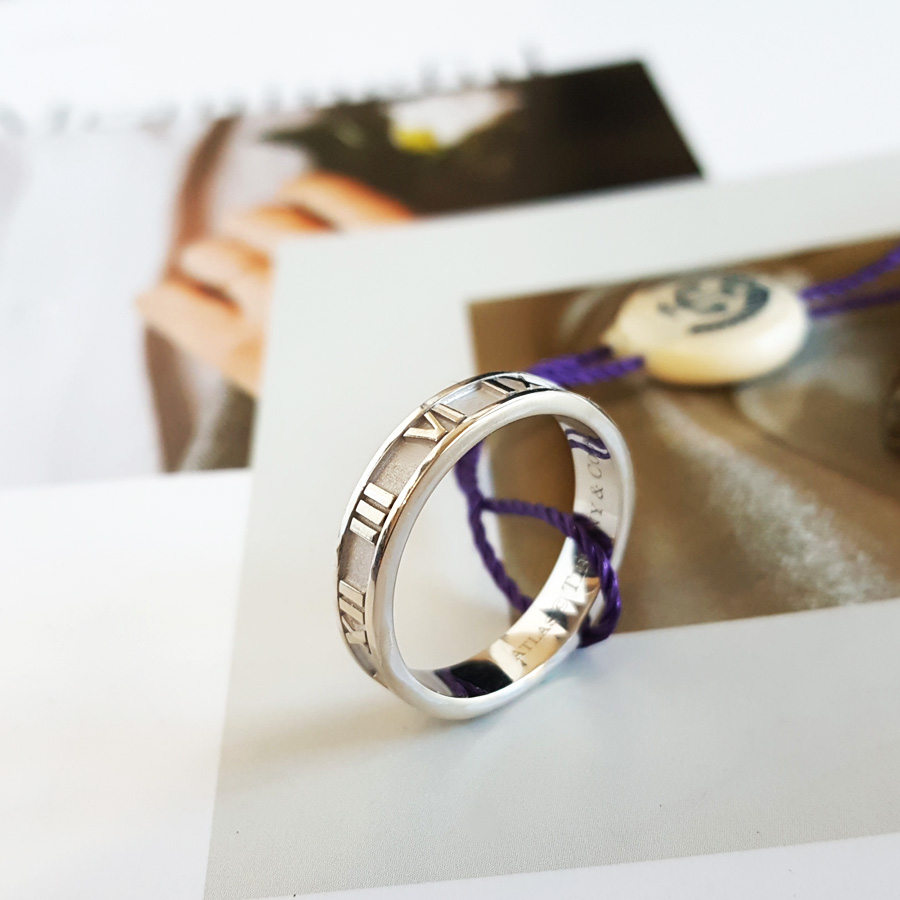 【95新】Tiffany & Co.蒂芙尼18K白金Atlas罗马数字戒指55号中性款151224TJ15 现售价:3400