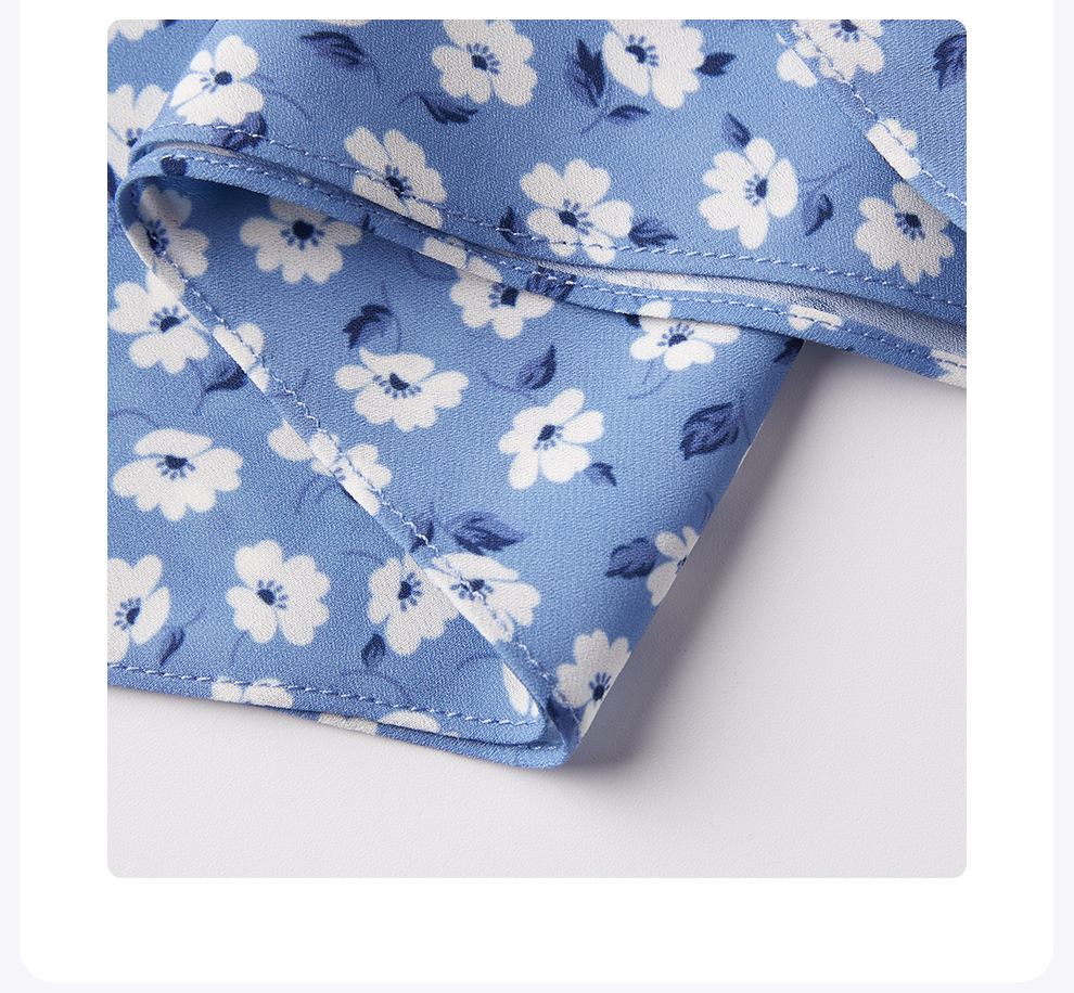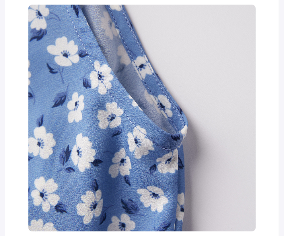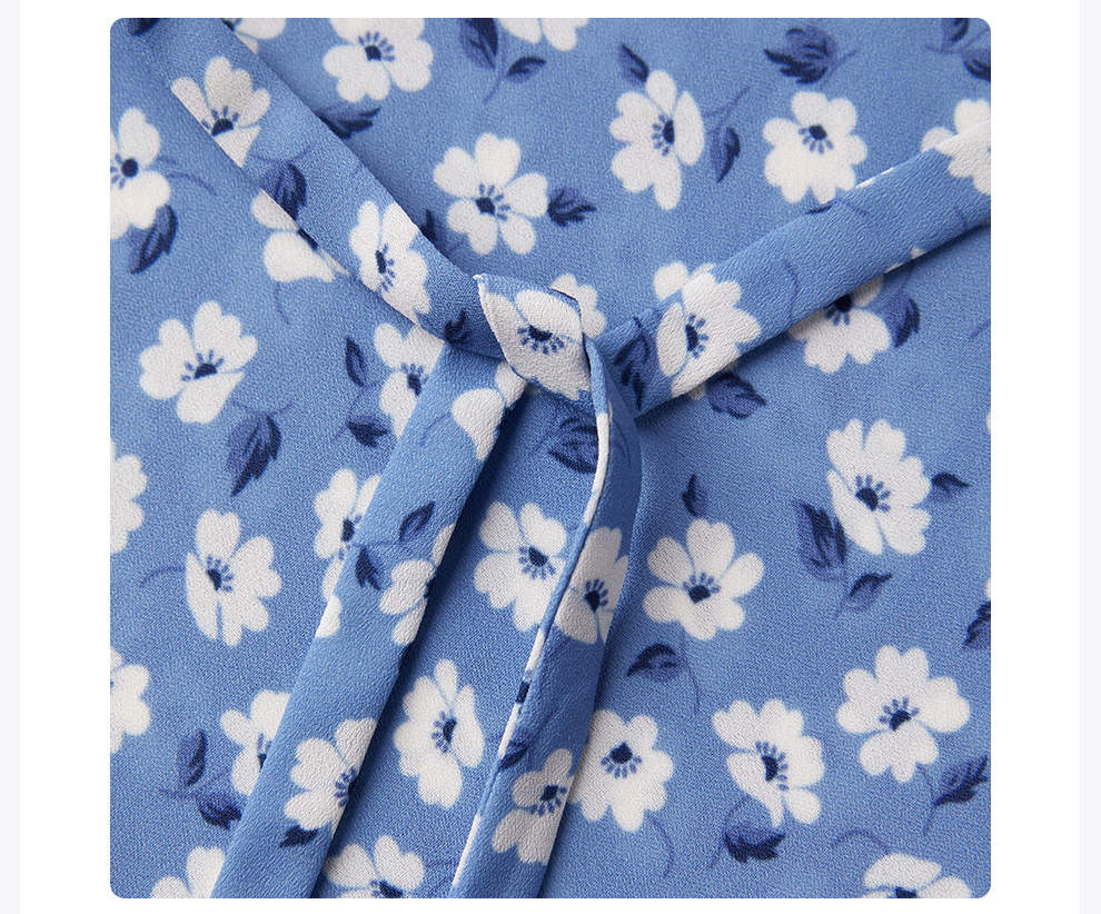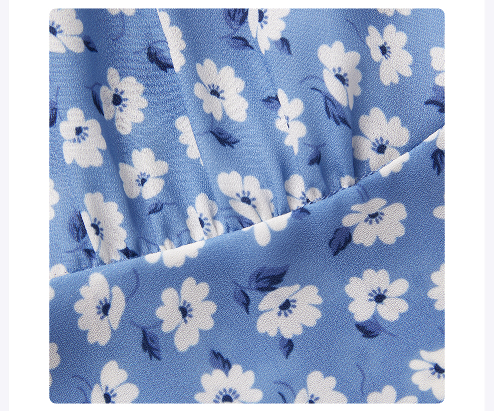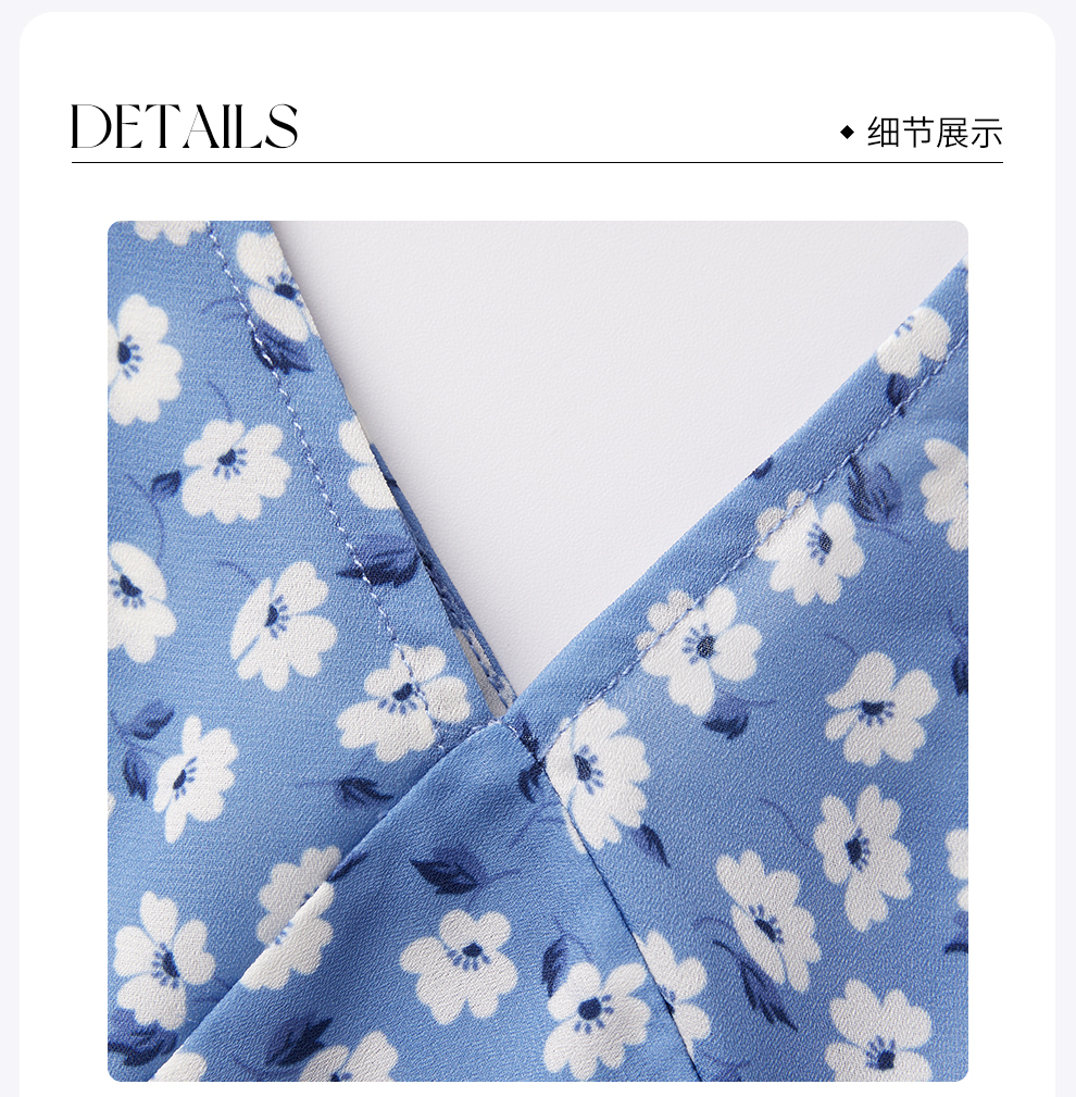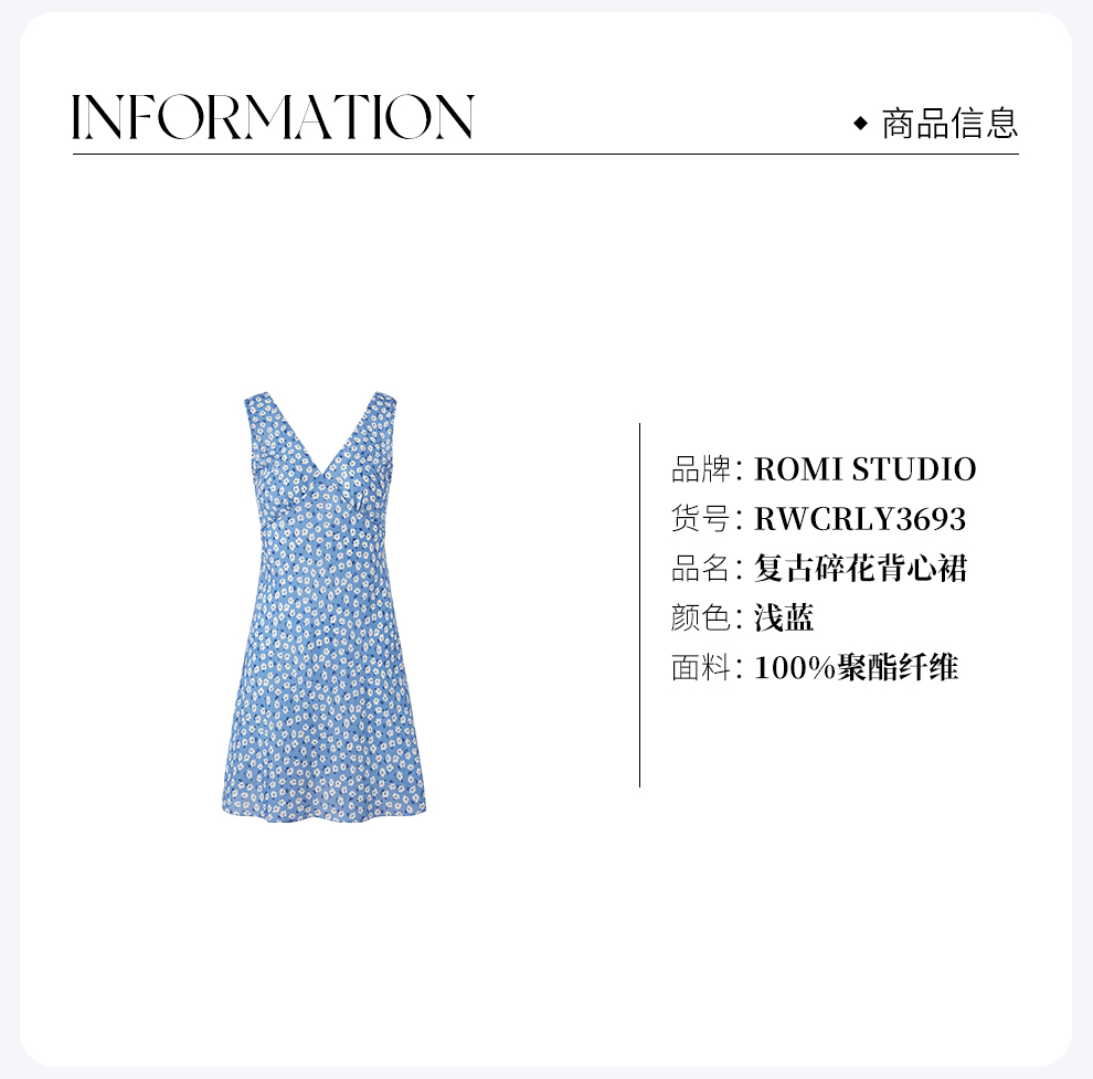 ROMI STUDIO“莫奈花园”浅蓝碎花轻薄V领修身短款连衣裙RWCRLY3693