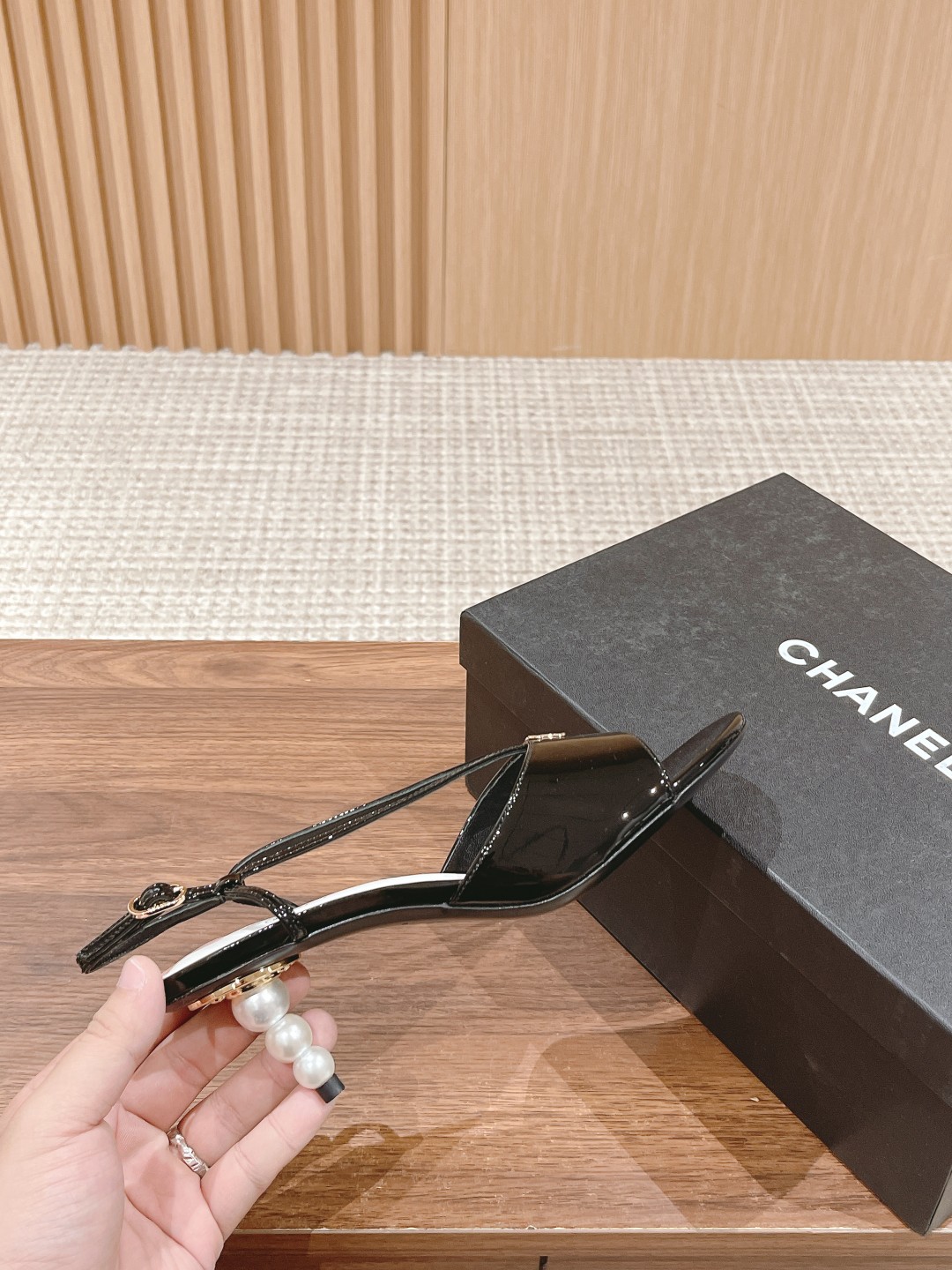 CHANEL 香奈儿2023夏季珍珠中跟拖鞋