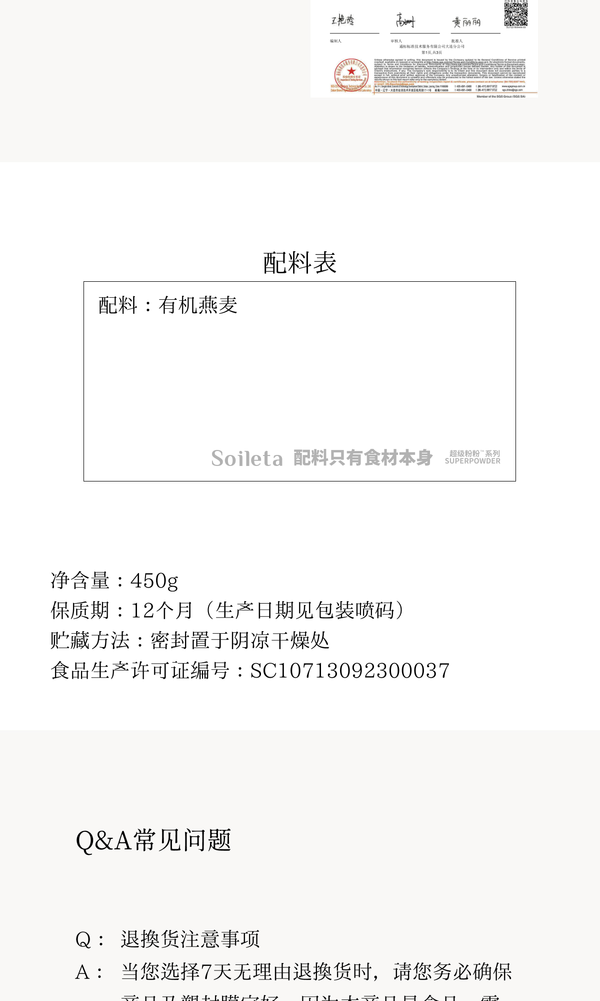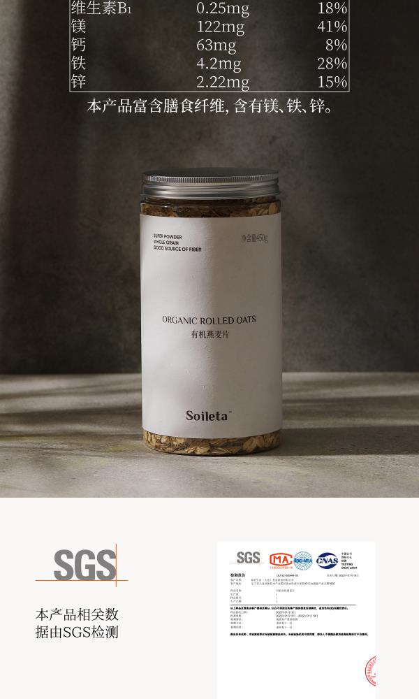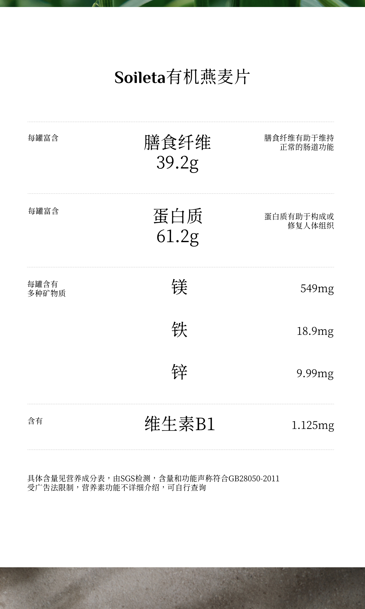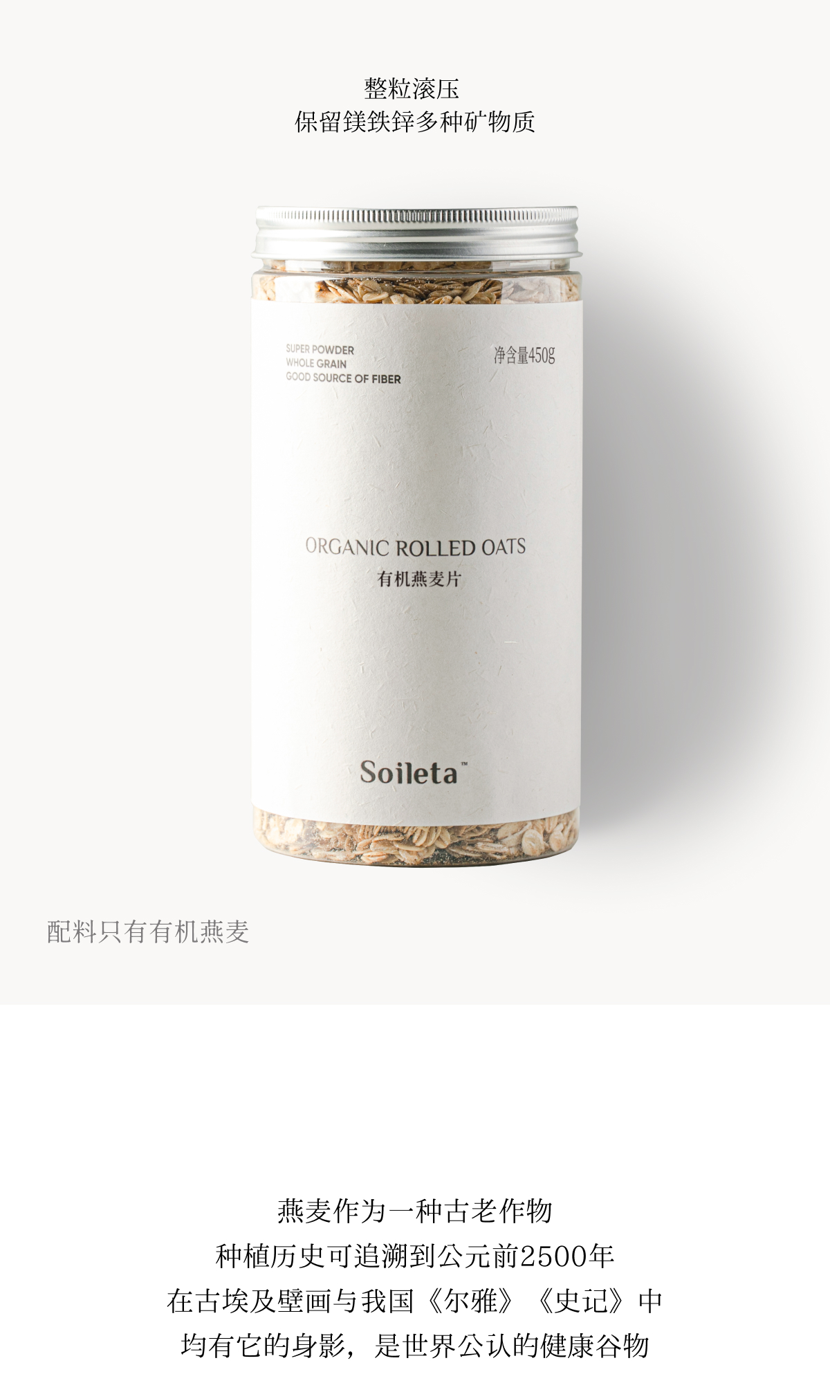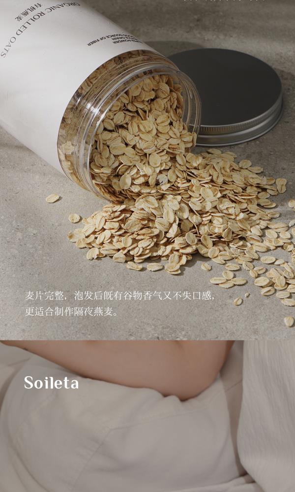 【ROMI专属】Soileta有机燕麦片450克全粒燕麦无添加早餐即食冲饮