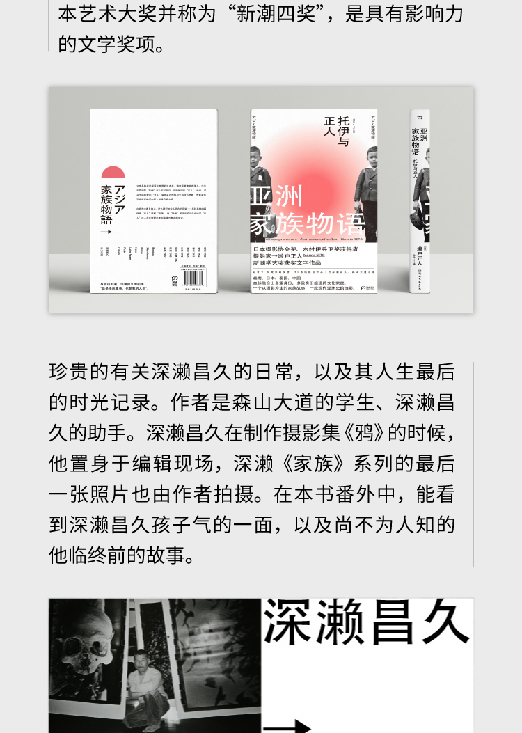 《亚洲家族物语》是日本摄影协会奖、木村伊兵卫奖获得者,日本摄影家濑户正人的自传性质图文随笔,也是其家族的变迁史。