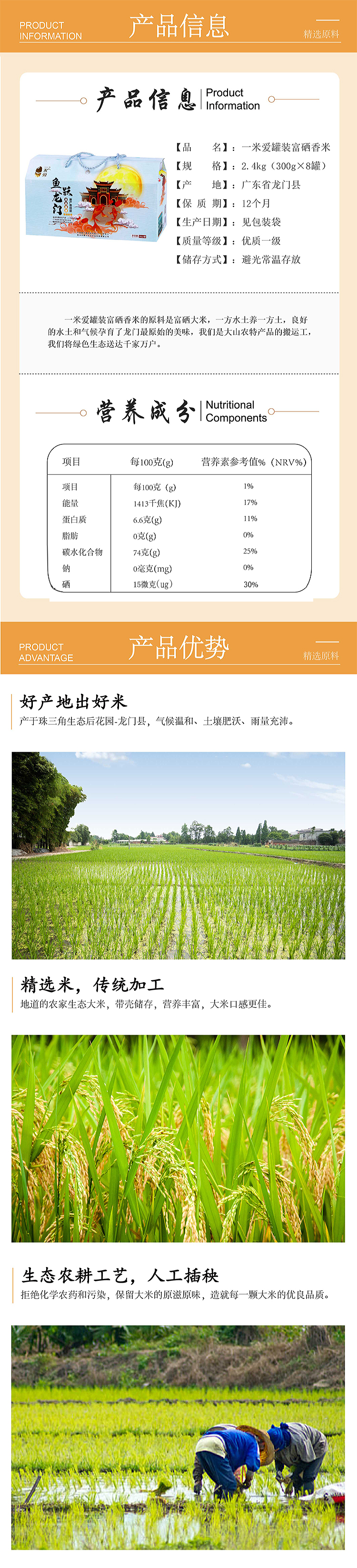 【顺丰包邮】广东惠州龙门一米爱龙门富硒香米(罐装)300g*8罐/盒