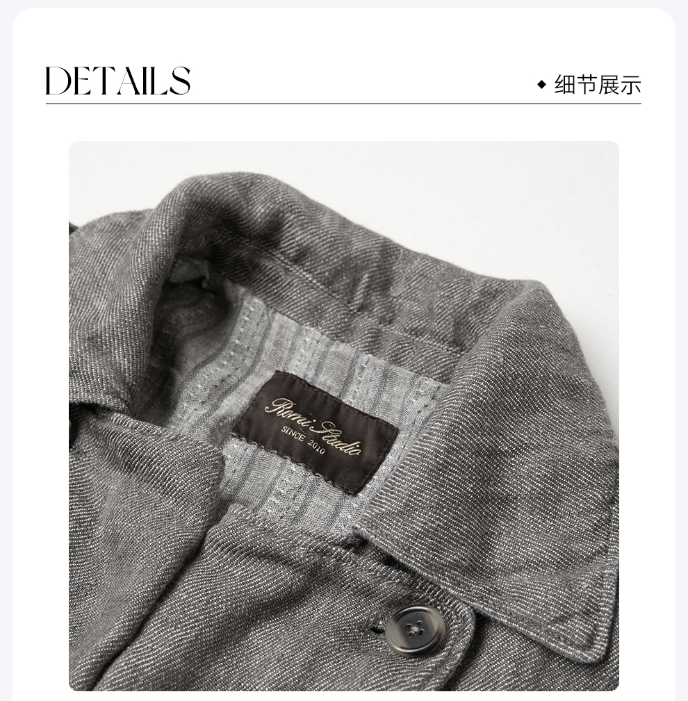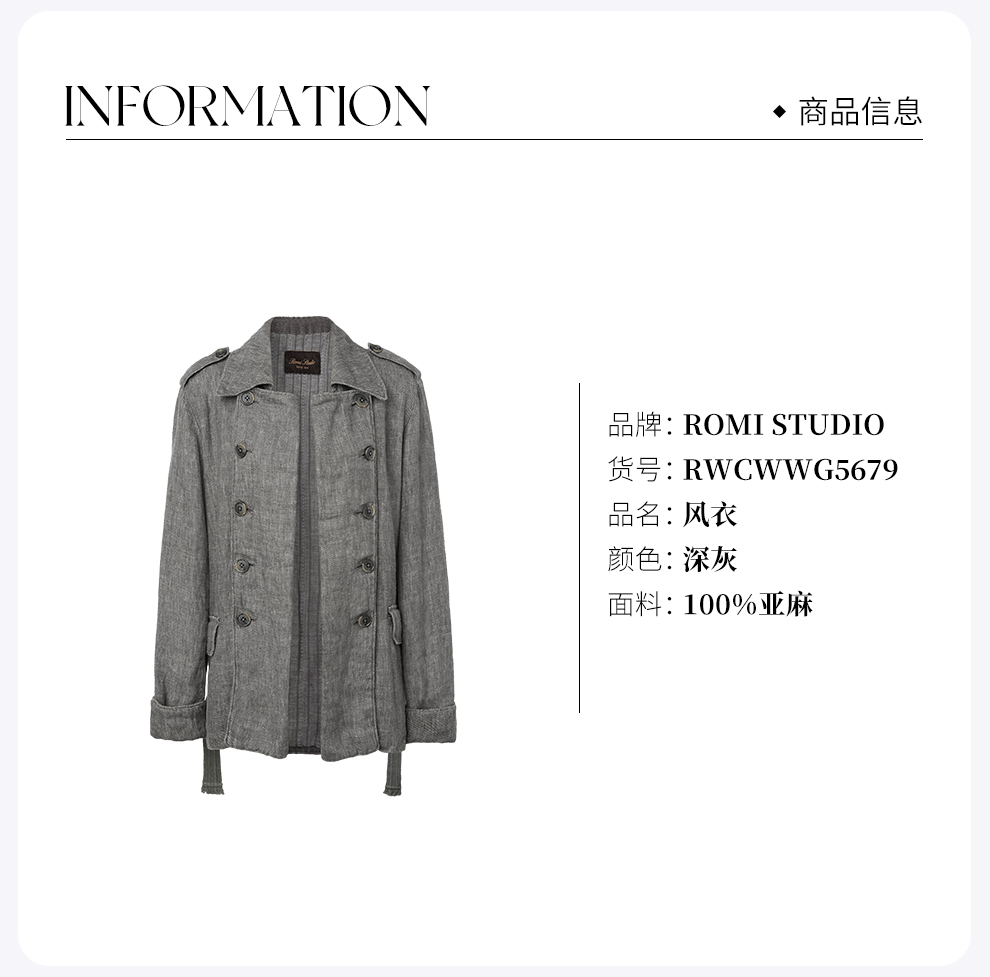 ROMI STUDIO“中古韵味”定织亚麻重洗水翻领双排扣风衣 RWCWWG5679