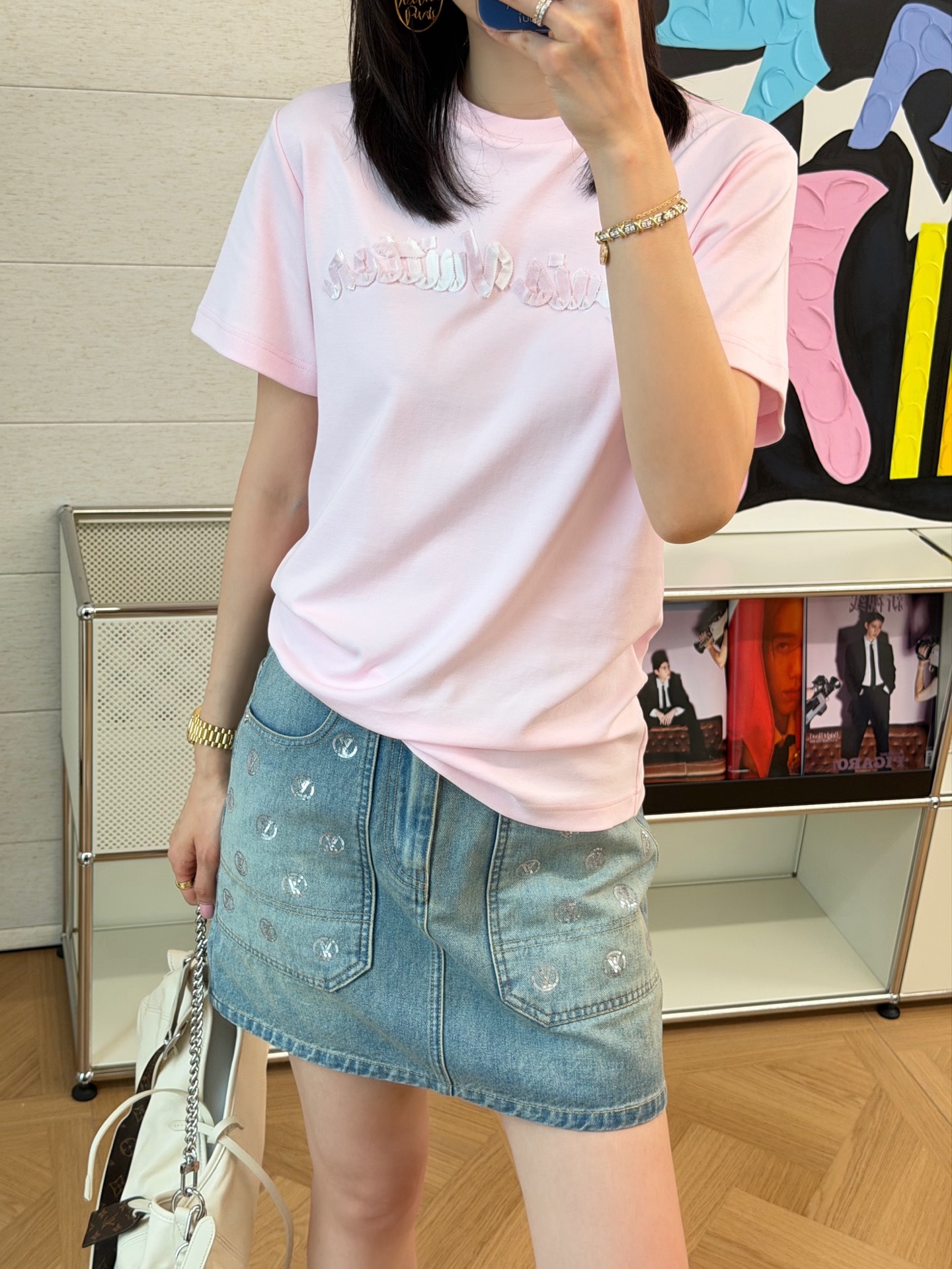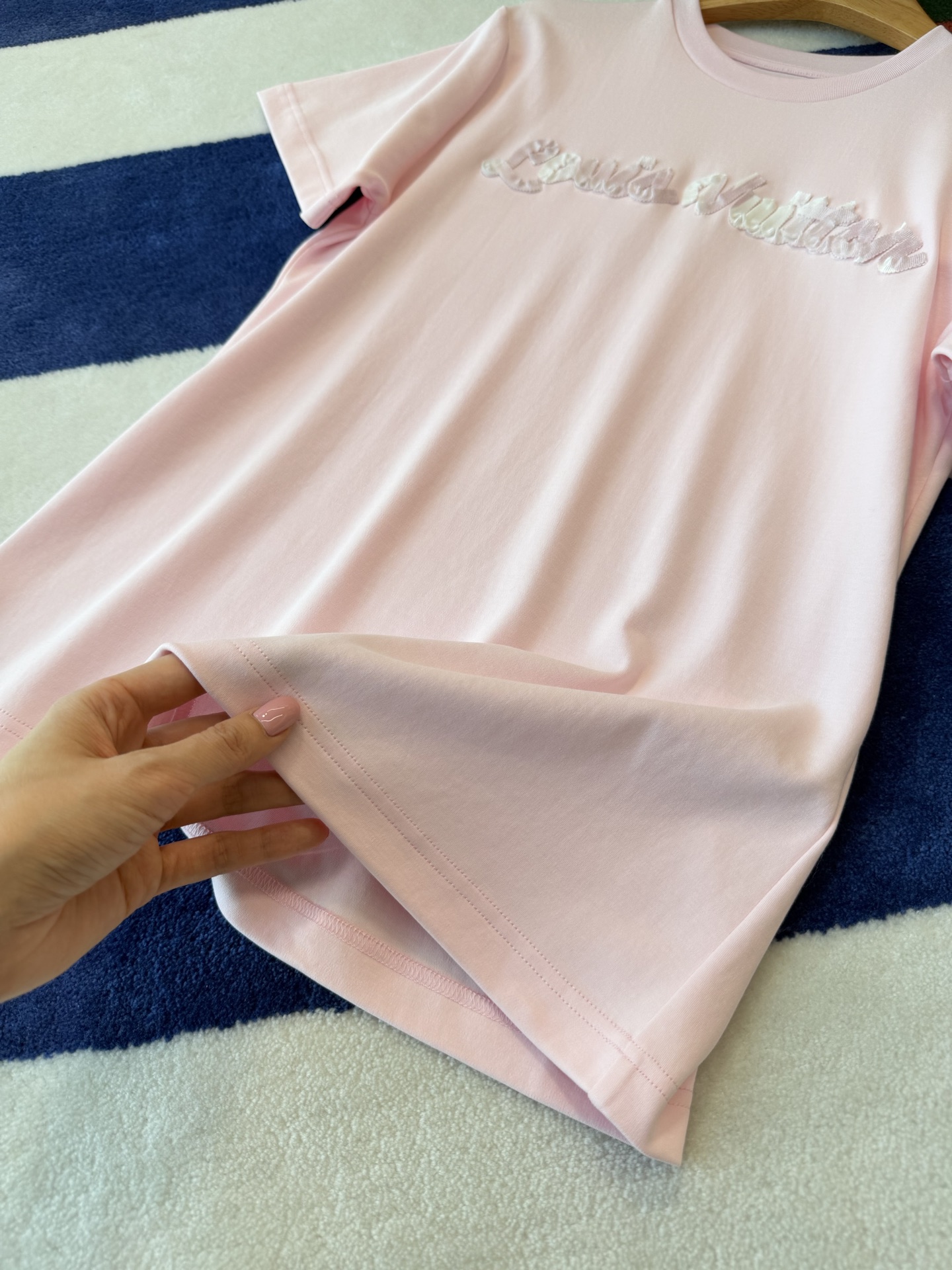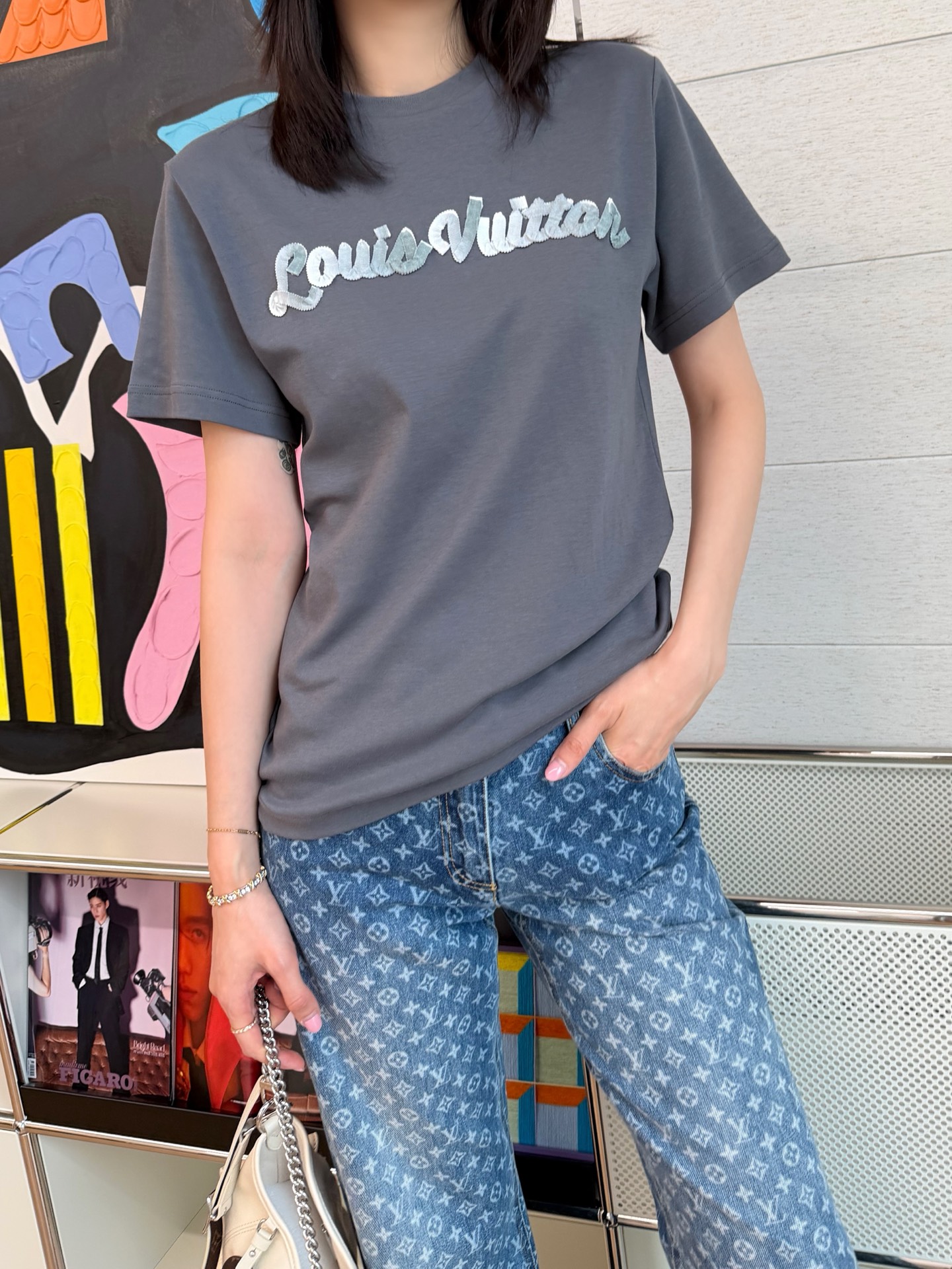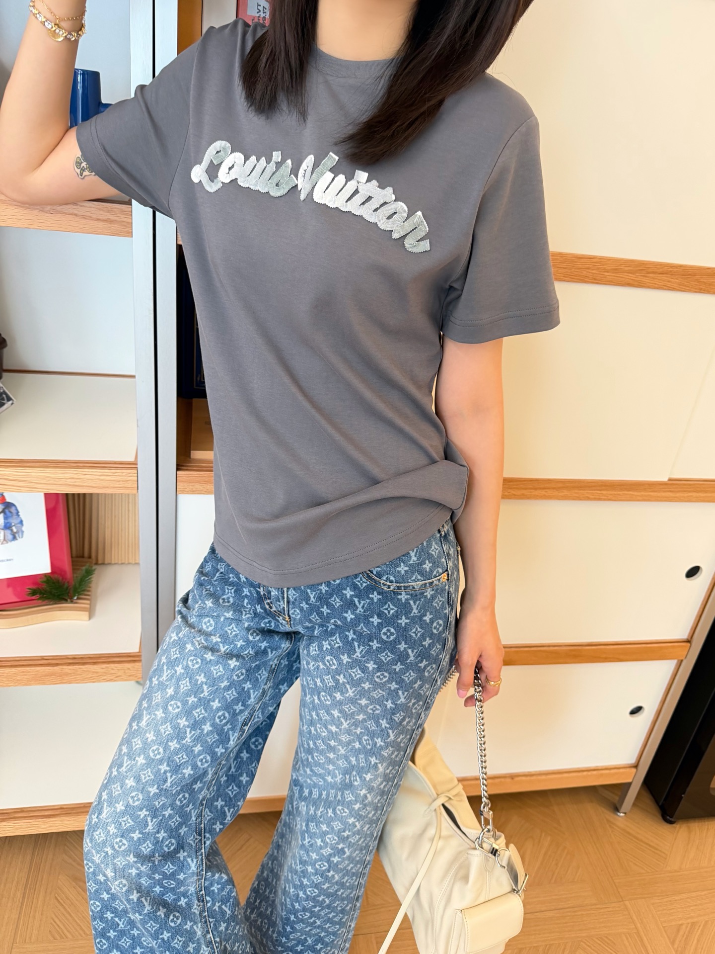 【新款现货发售】新品🆕爆款立体字母T恤🔥以其优质的面料、舒适的触感、精致的工艺和百搭的设计,成为了衣柜中不可或缺的一款单品☑️胸前采用贴布绣立体字母工艺,层次丰富更显精致🔝基础修身的版型🤩适合各种体型的人群穿着🎉无论是喜欢温柔甜酷风格的你,还是追求简约高级感的你,都能在这款T恤中找到属于你的那份风格💗日常通勤、休闲出街都适配✨灰/粉两个色,
