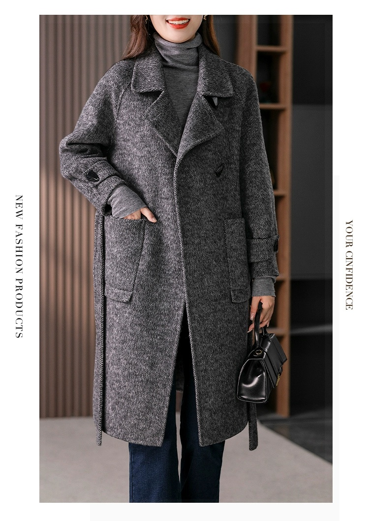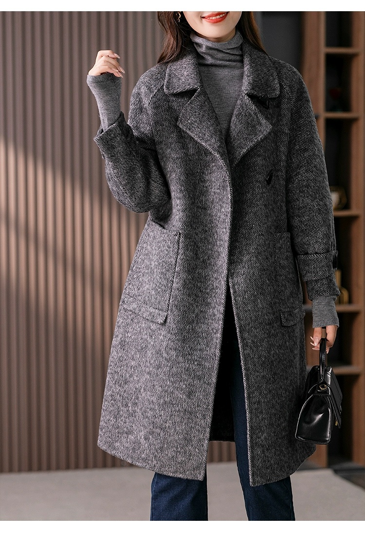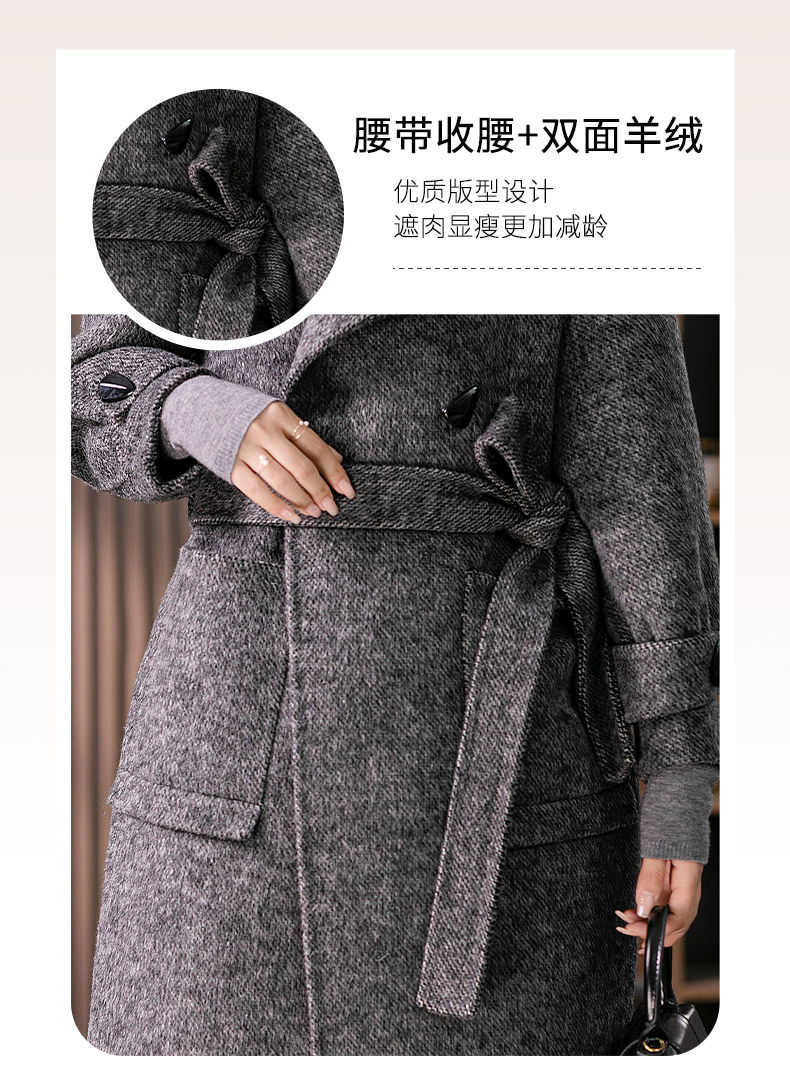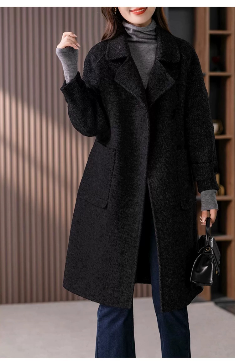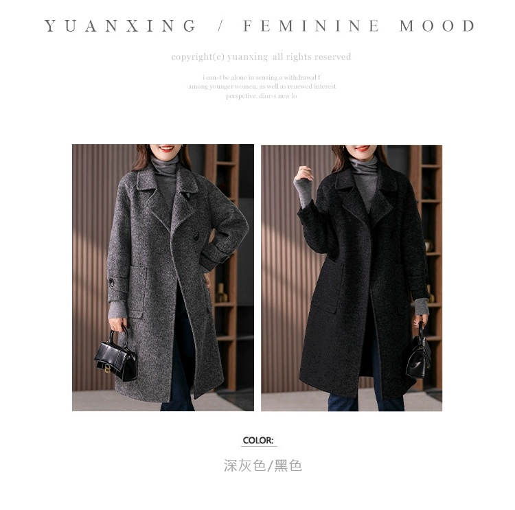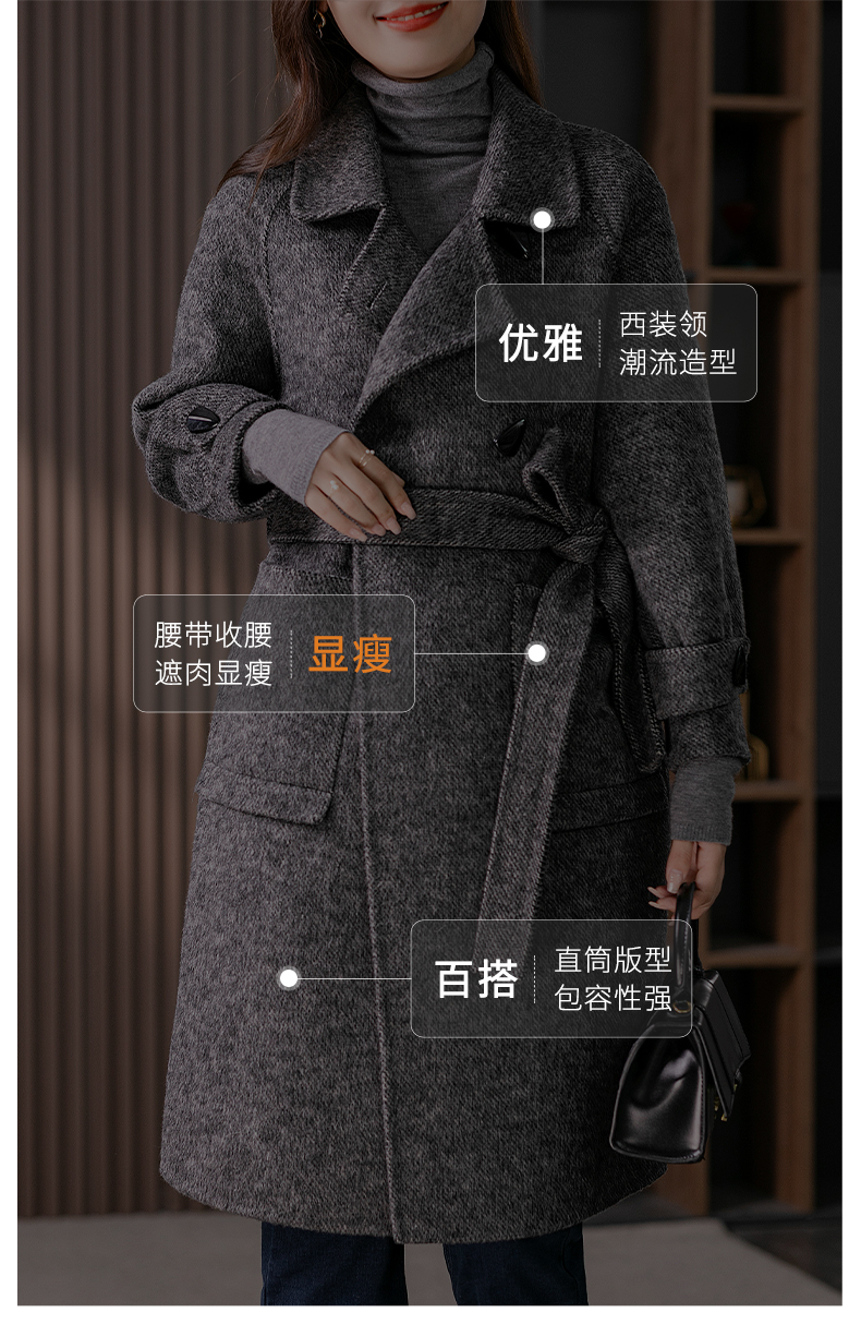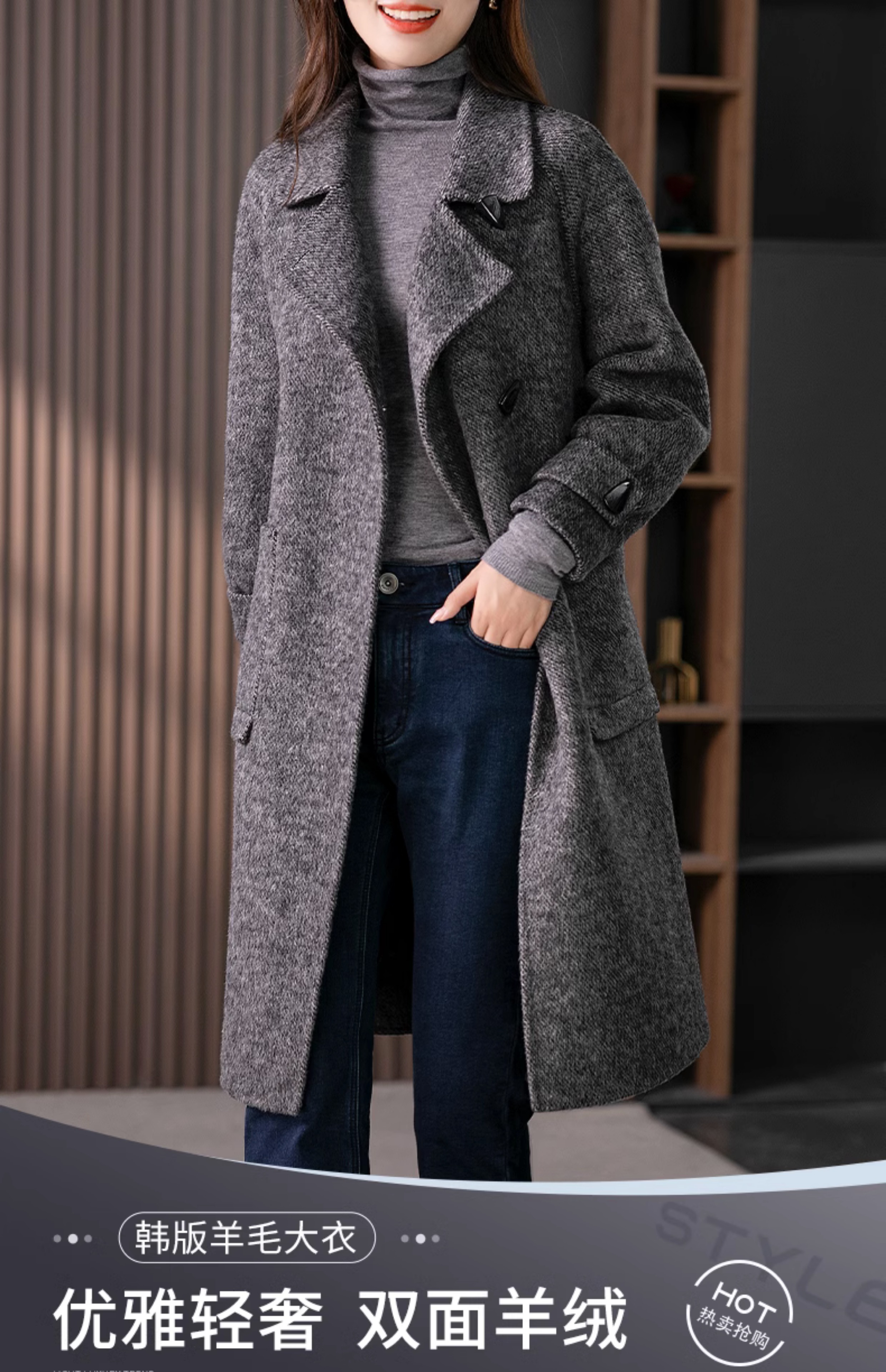 轻奢高级感双面羊驼大衣女2023秋冬新款西装领中长款毛呢外套