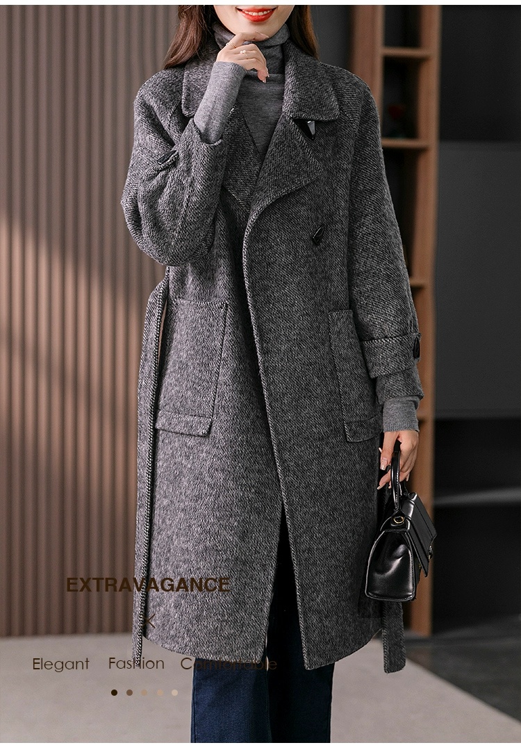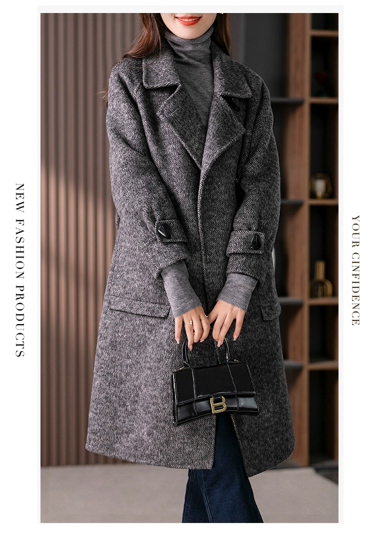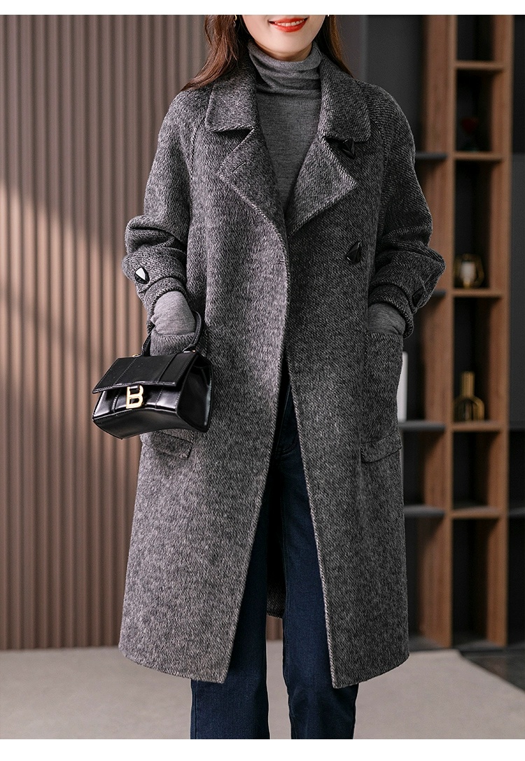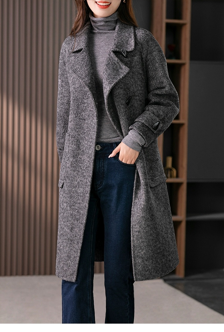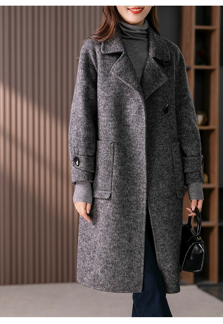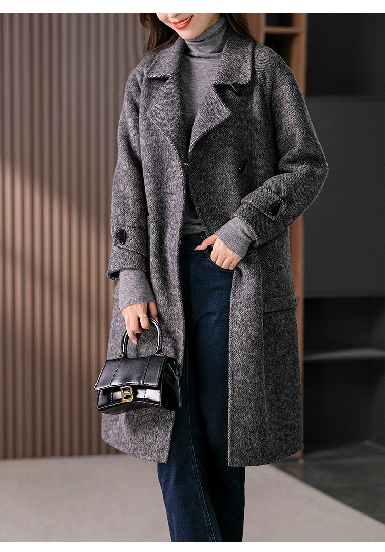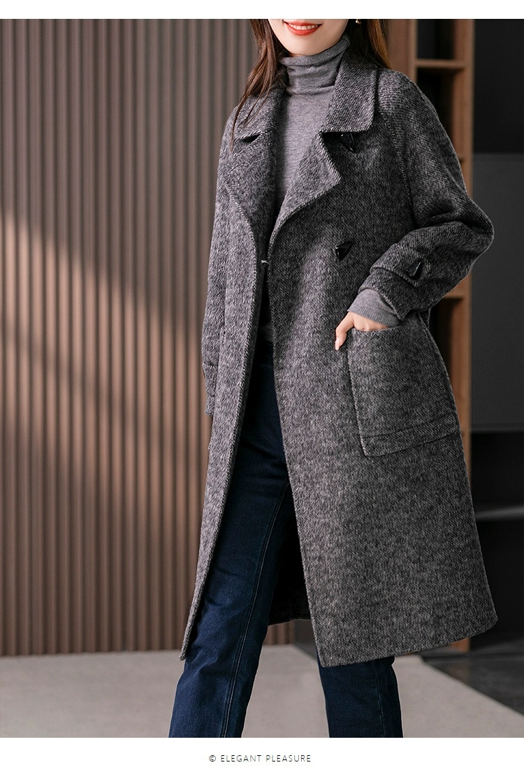 轻奢高级感双面羊驼大衣女2023秋冬新款西装领中长款毛呢外套