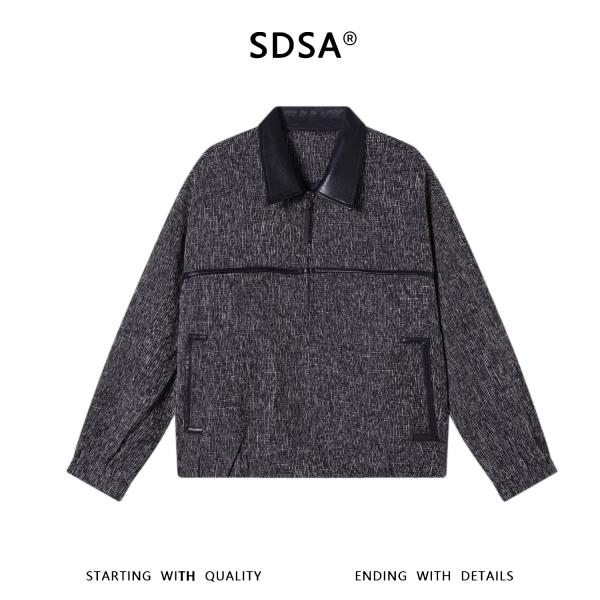 SDSA男装2026新款高贵轻奢美式肌理拼接翻领拉链夹克外套百搭时尚
