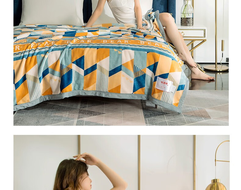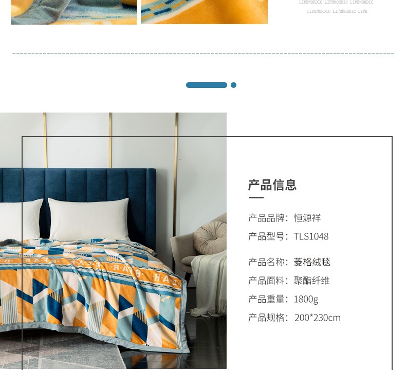 恒源祥(HYX) 恒源祥礼业TLS1048双面毯子法兰绒珊瑚绒毛毯菱格绒毯 菱格 200*230