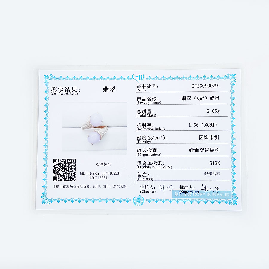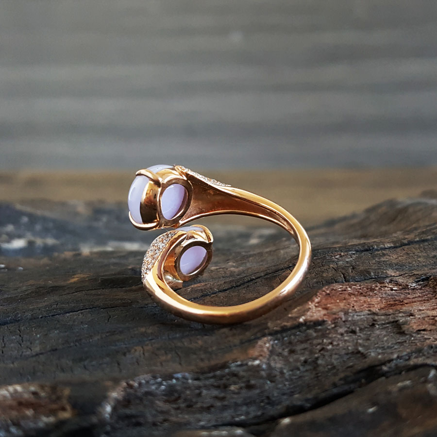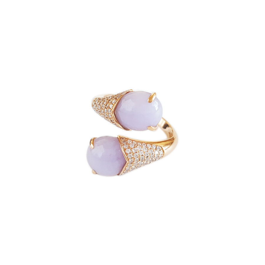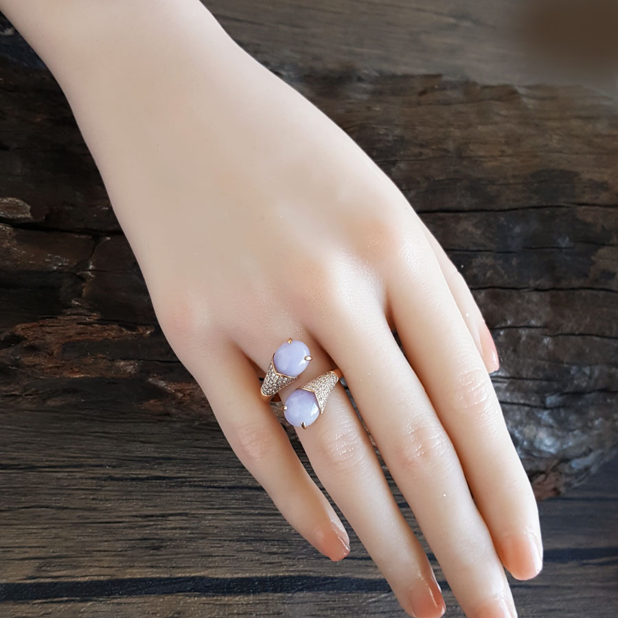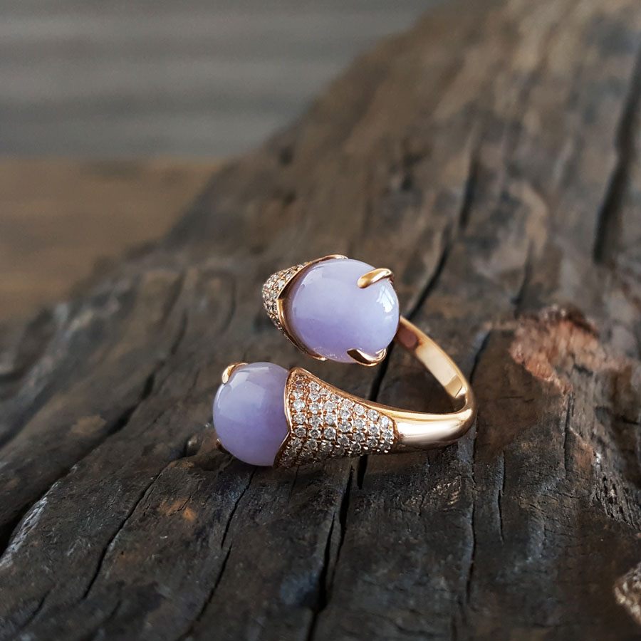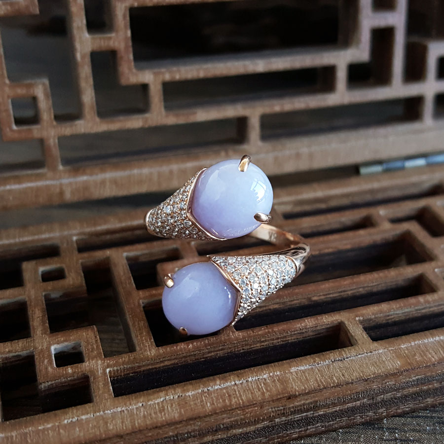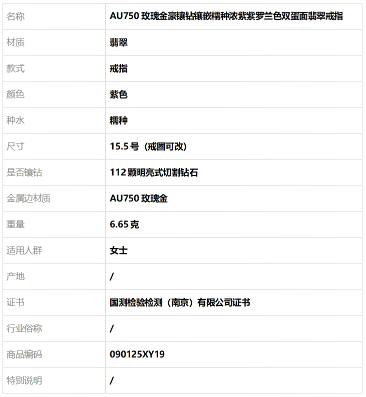 【天然正品】AU750玫瑰金豪镶钻镶嵌糯种浓紫紫罗兰色双蛋面翡翠戒指090125XY19 现售价:6880