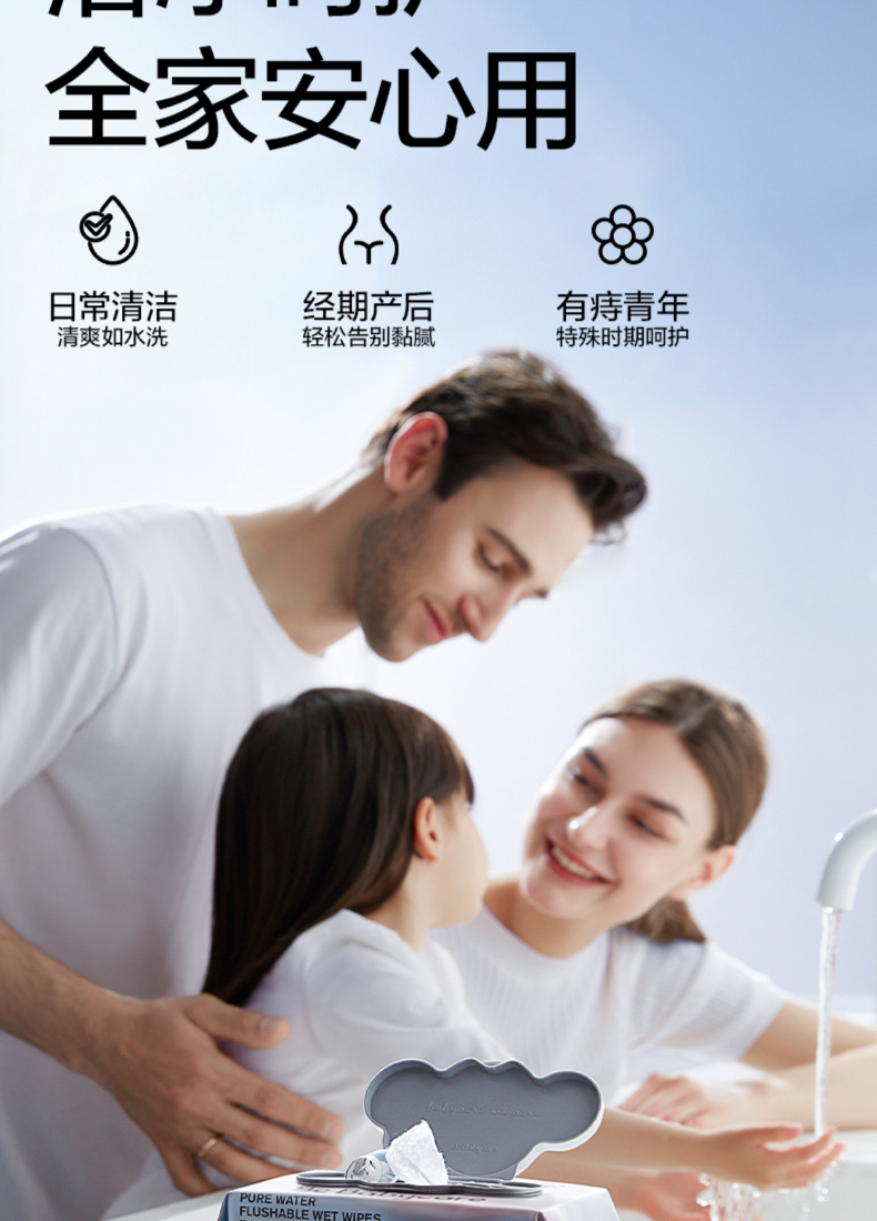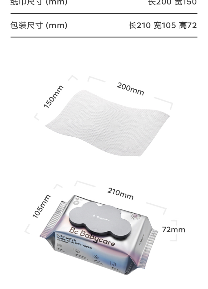 babycare纯水湿厕纸巾家庭实惠装男女洁厕所擦屁股套装80抽