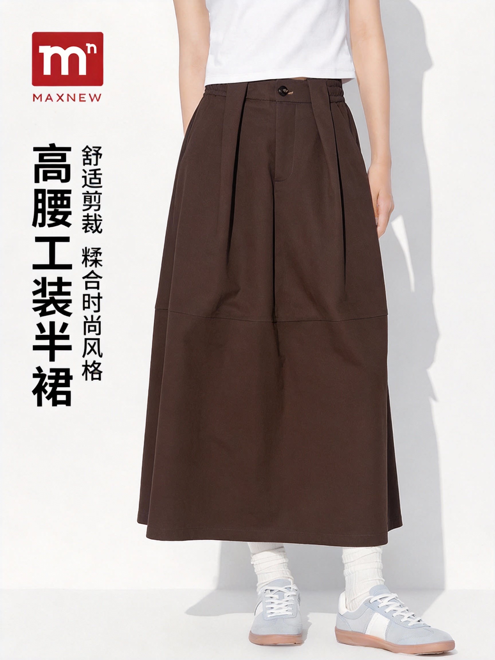 【门店同款】高腰A字半身裙女中长款宽松工装半裙咖啡色松弛感