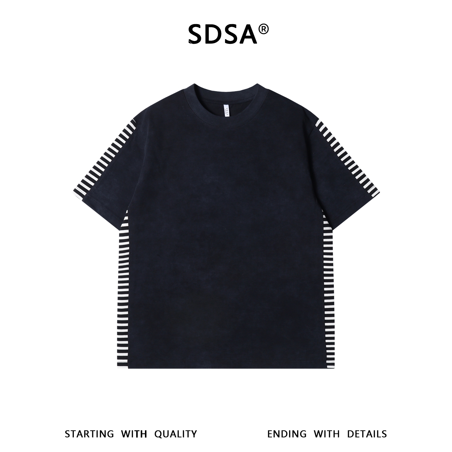 SDSA男装2026新款高贵轻奢美式复古侧边拼接圆领短袖T恤百搭时尚