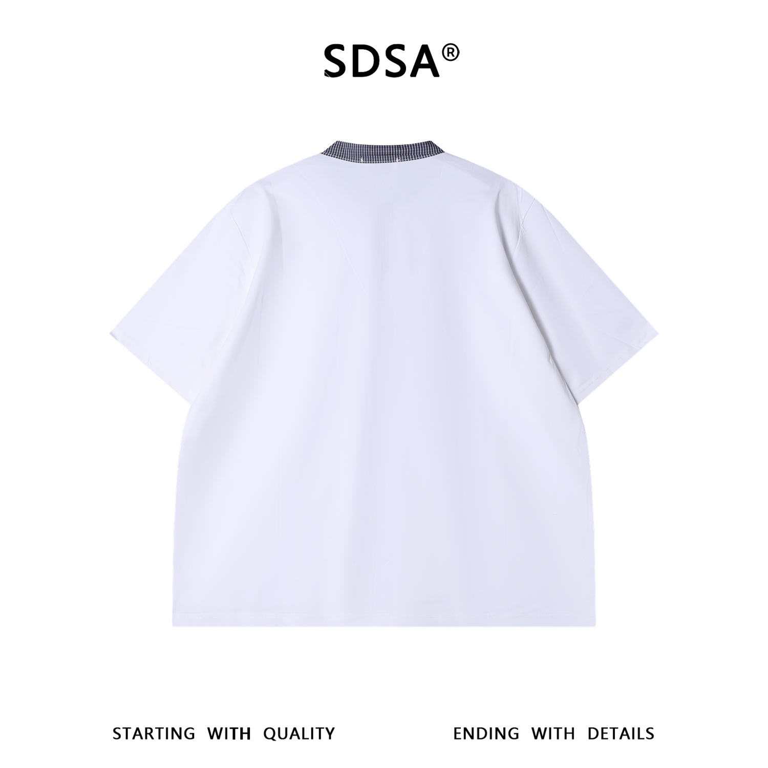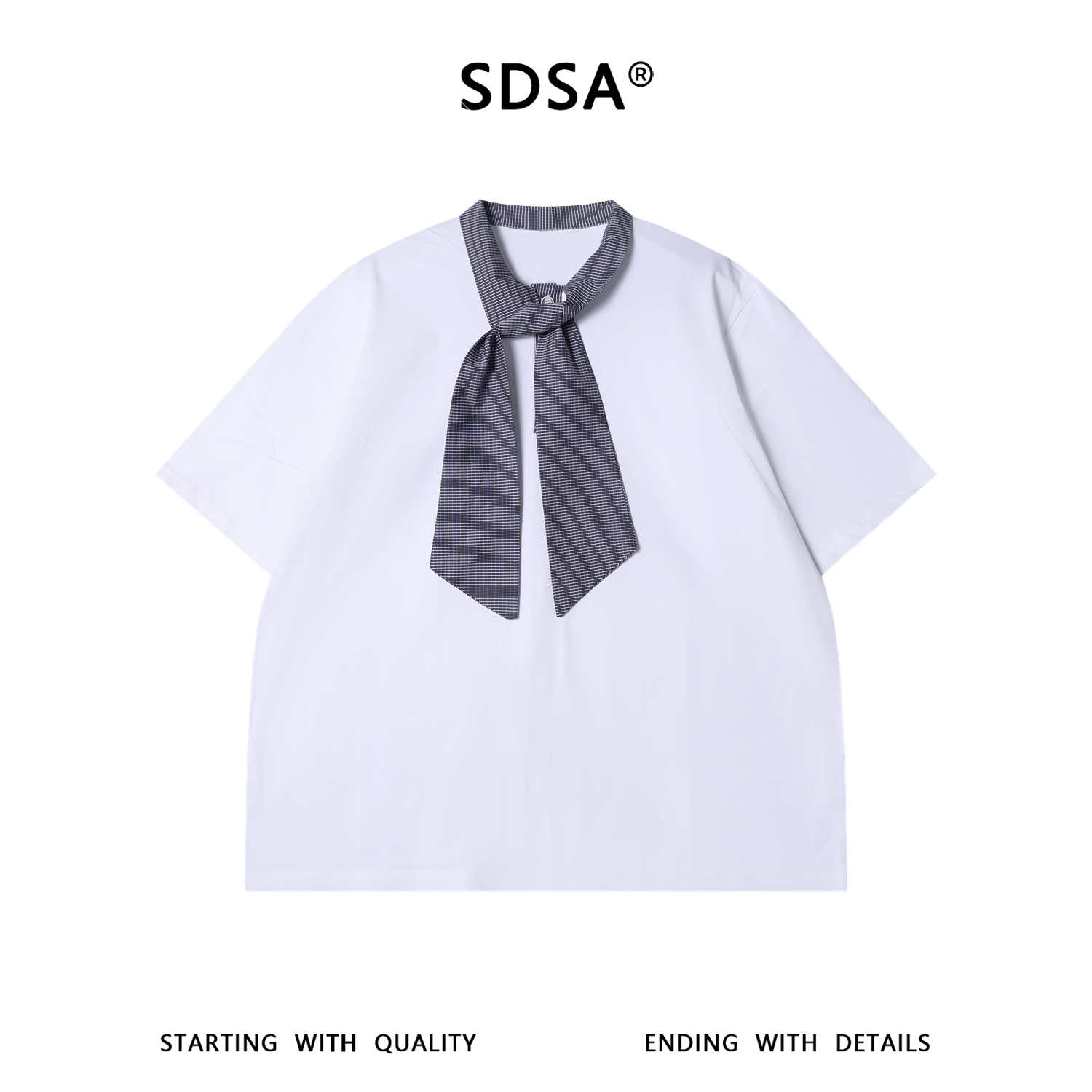 SDSA男装2026新款高贵轻奢美式简约格纹领结飘带短袖T恤百搭休闲