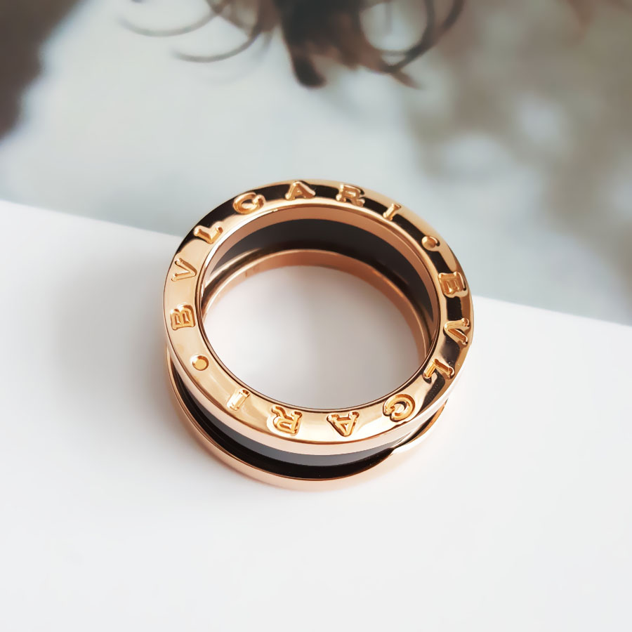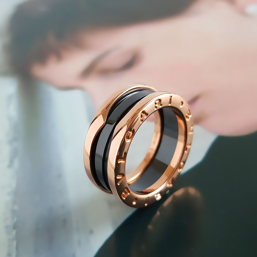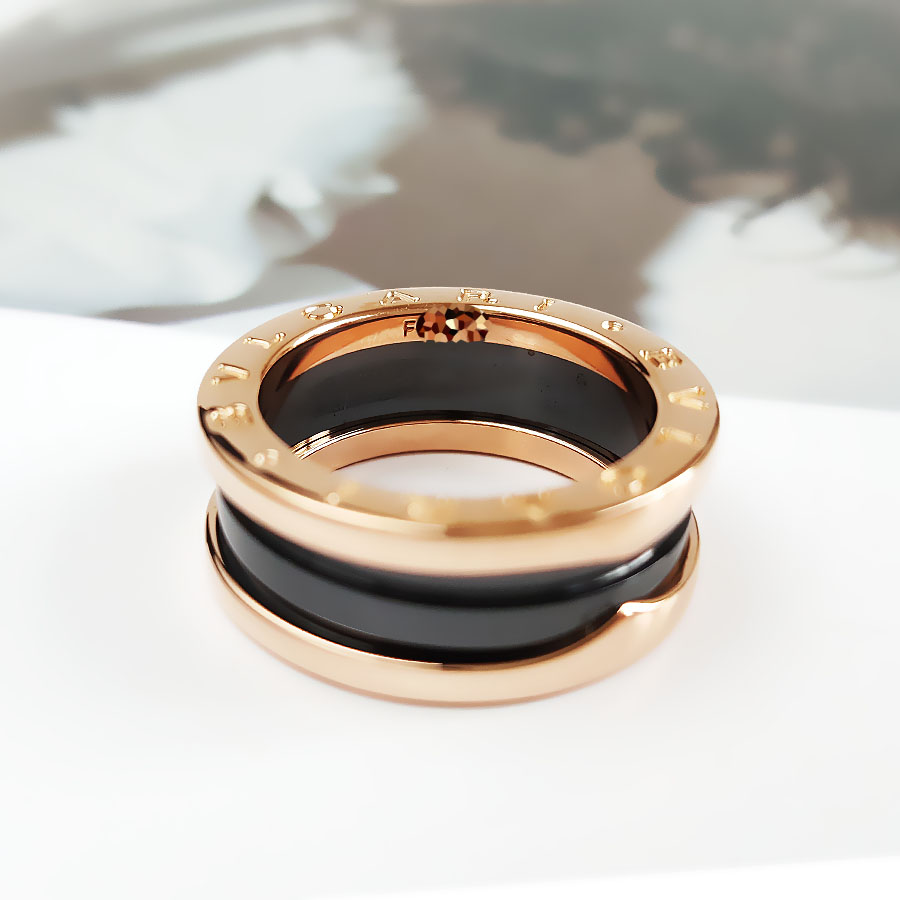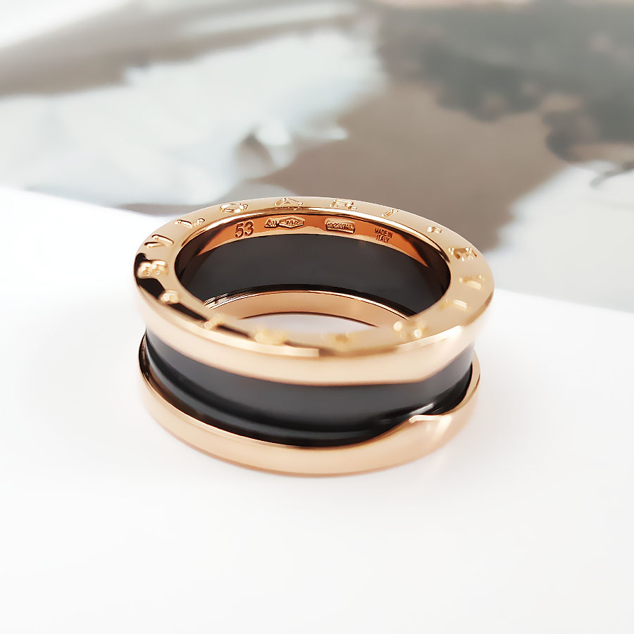 【95新】BVLGARI宝格丽B.zero1系列AN855962玫瑰金黑陶瓷三环弹簧戒指53号中性款300126NJS55