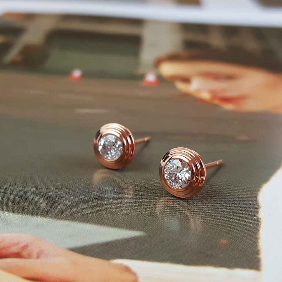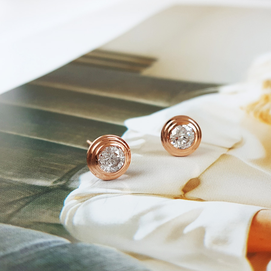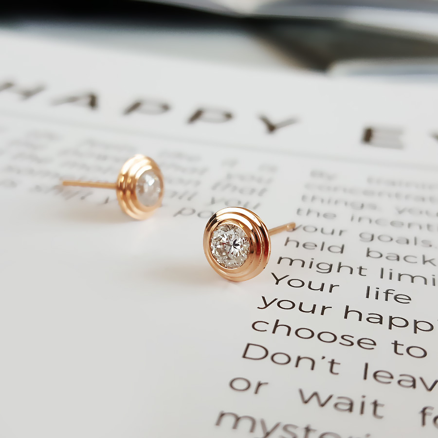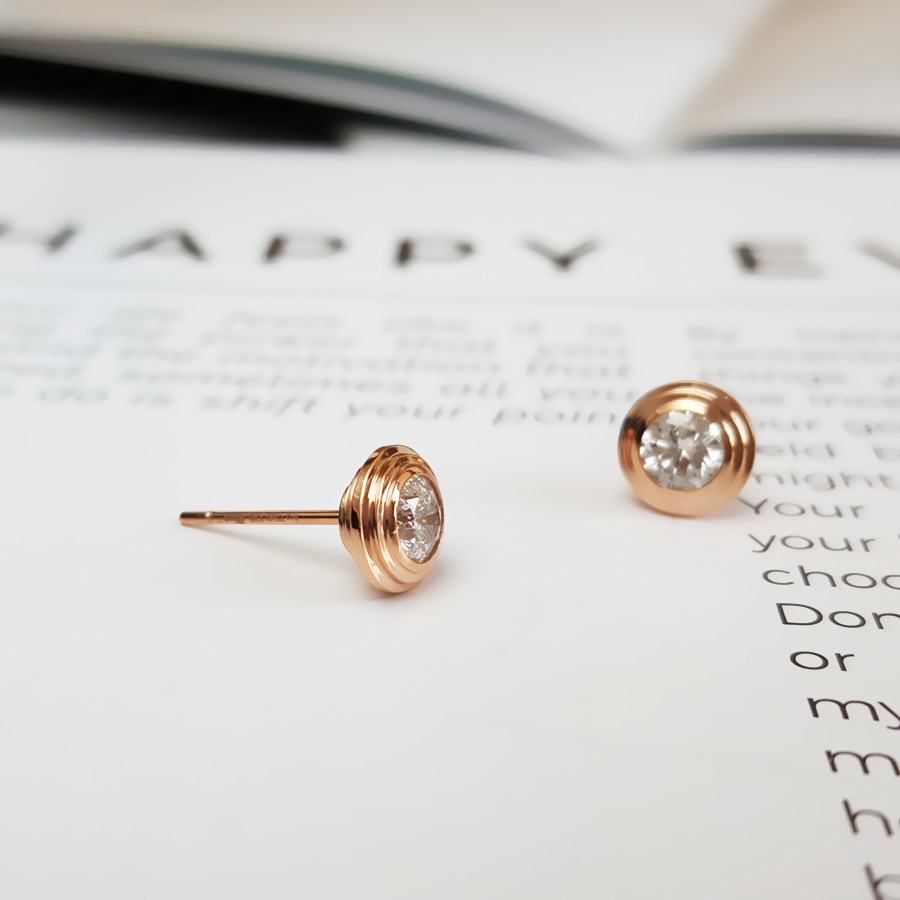 款式 | AU750玫瑰金时尚经典款飞碟造型共0.80克拉钻石耳钉 |