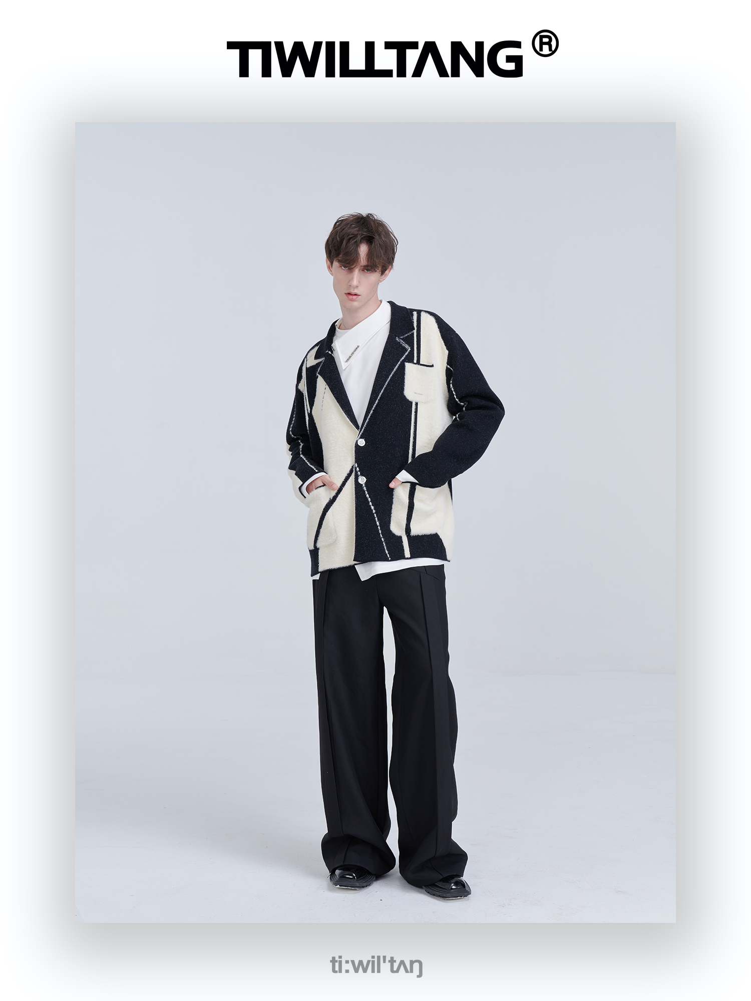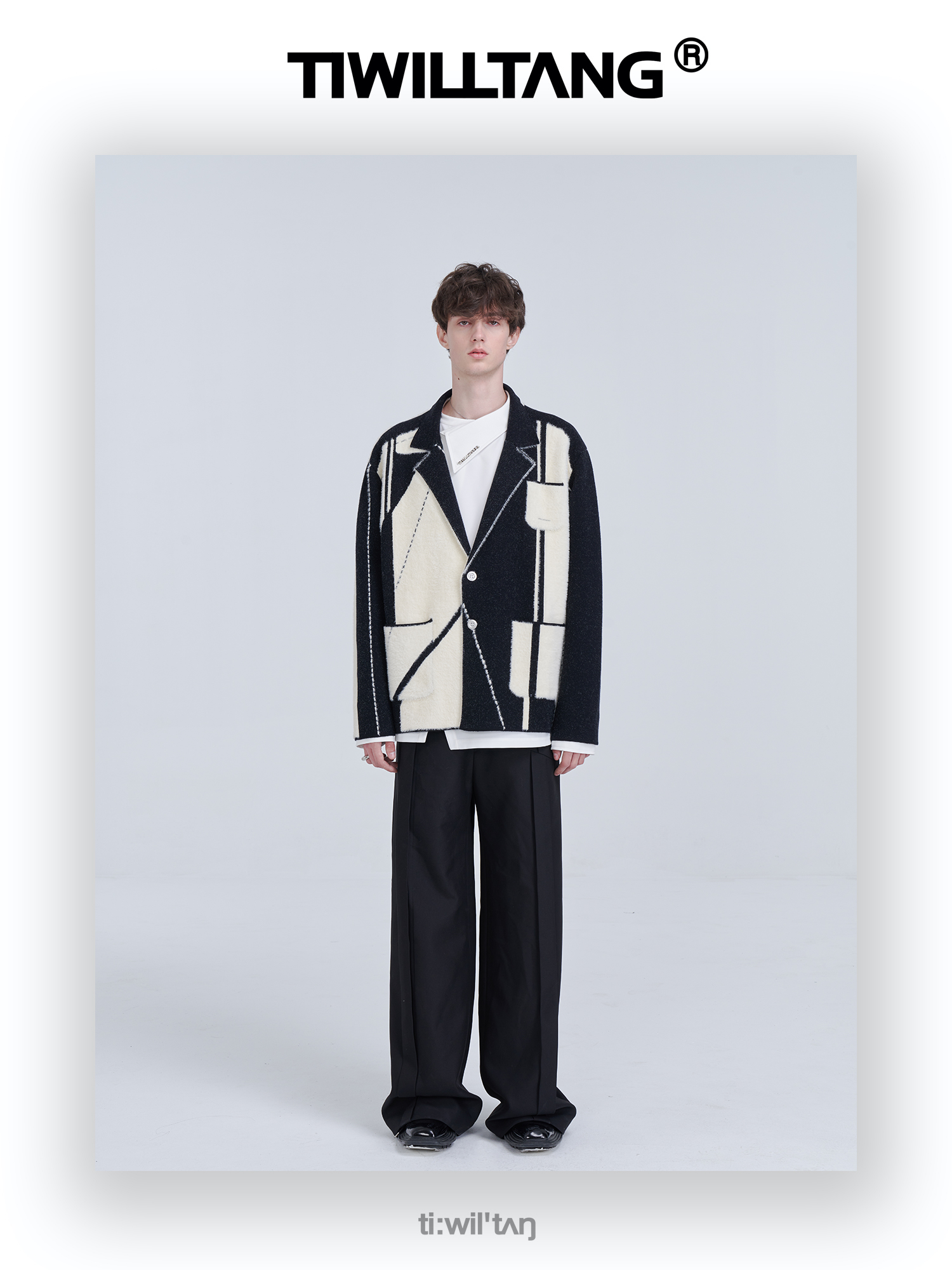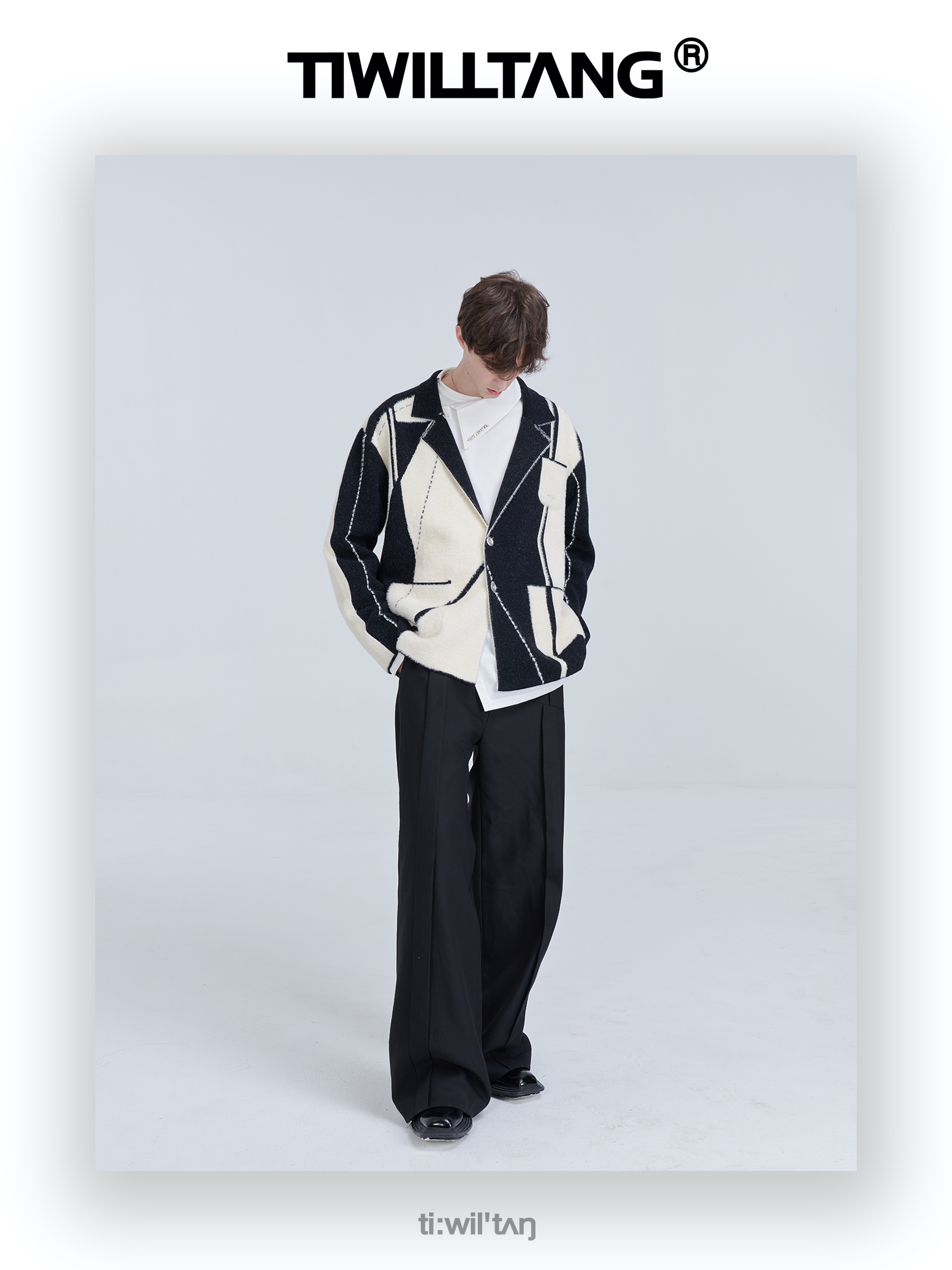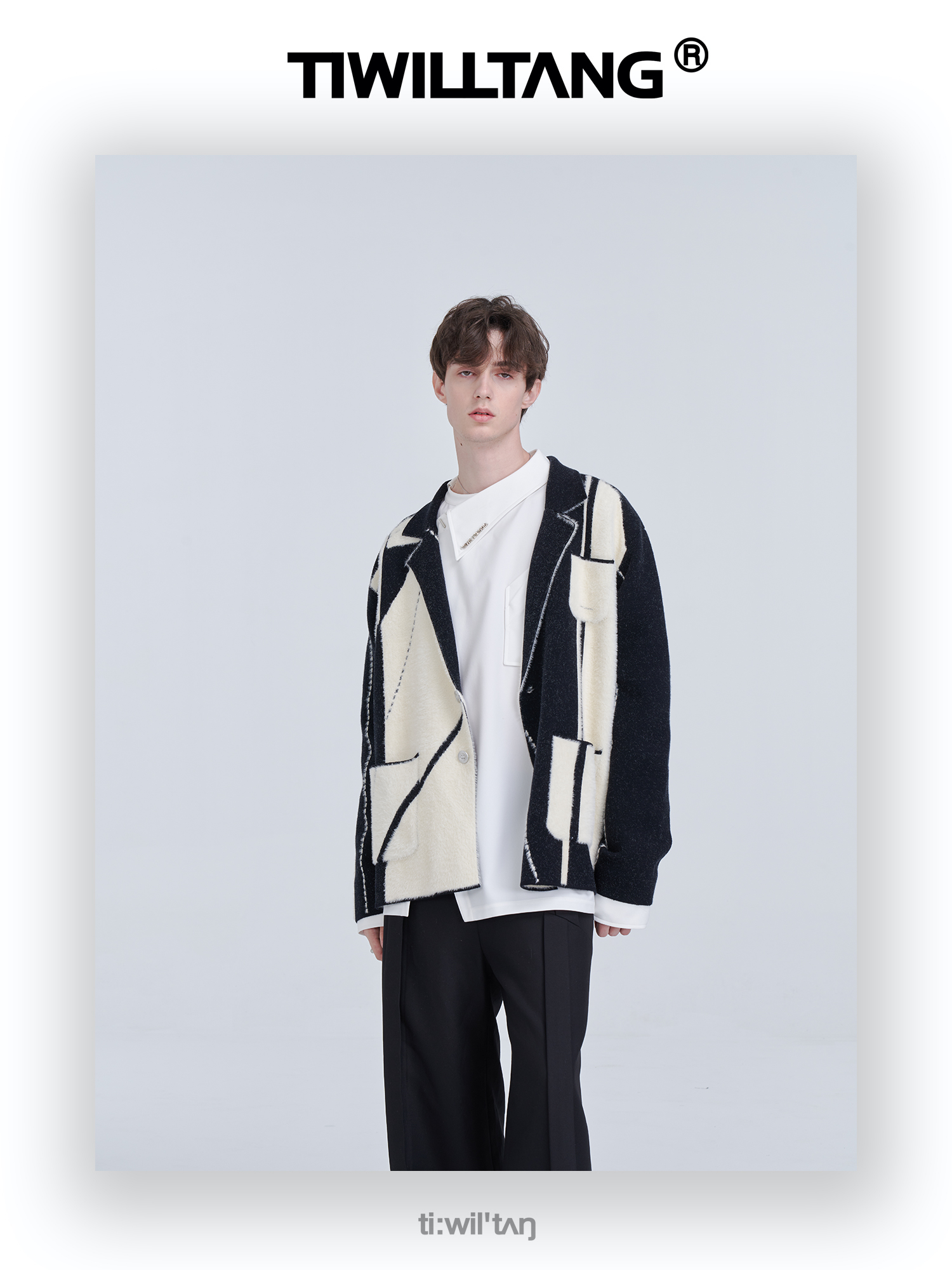 TIWILLTANG启世录"星罗"黑白拼接层次针织西装休闲开衫外套男薄款