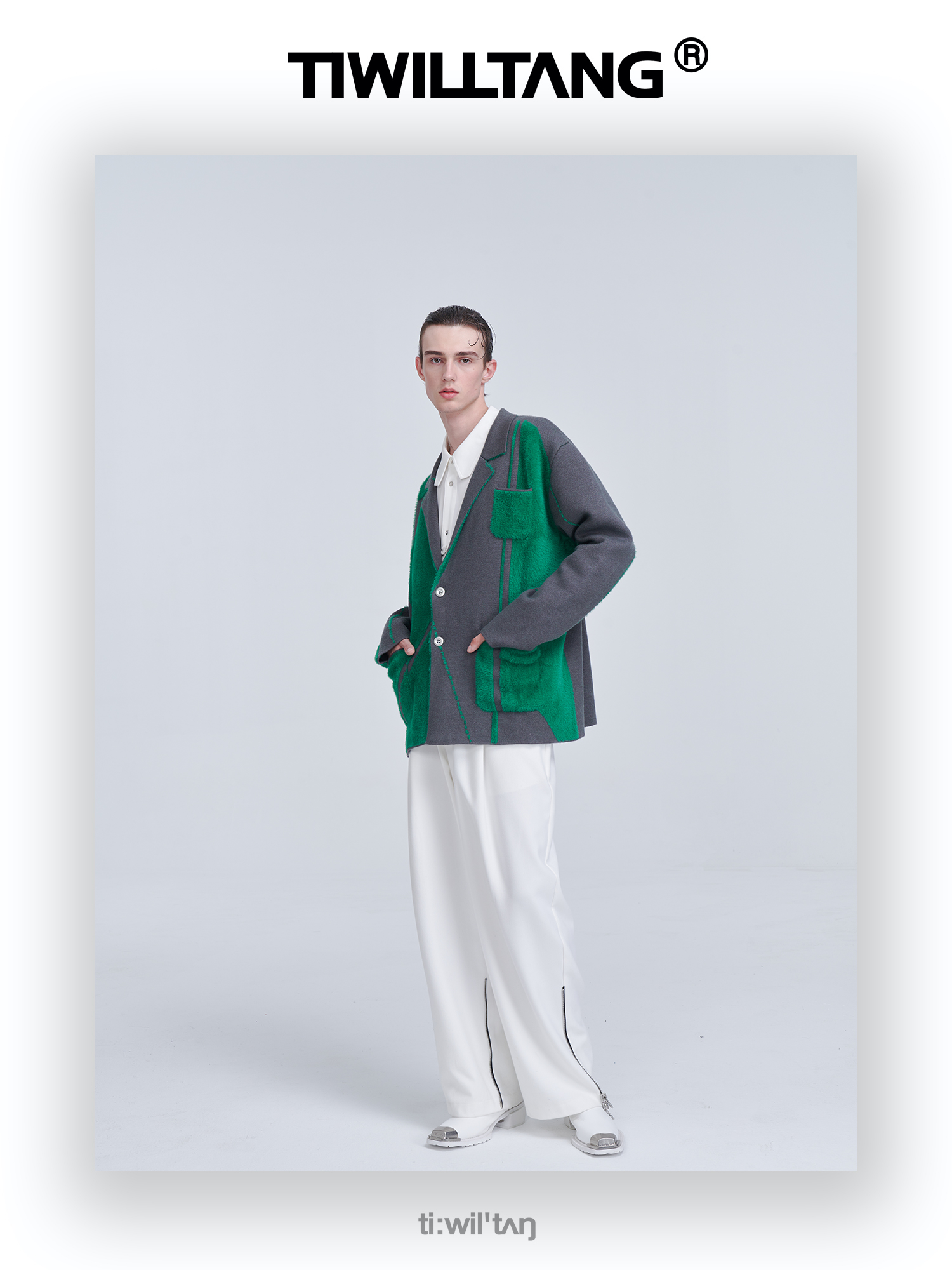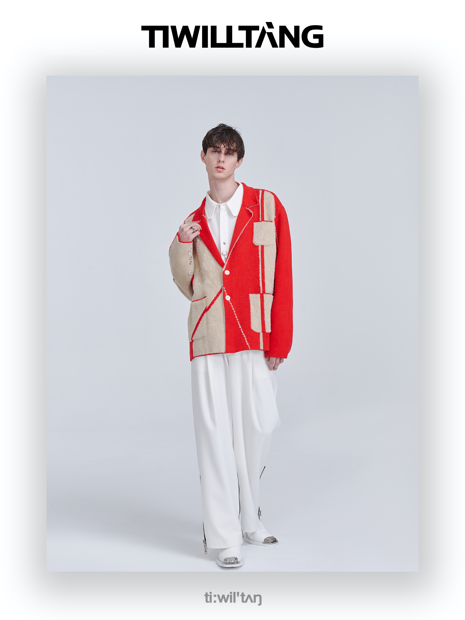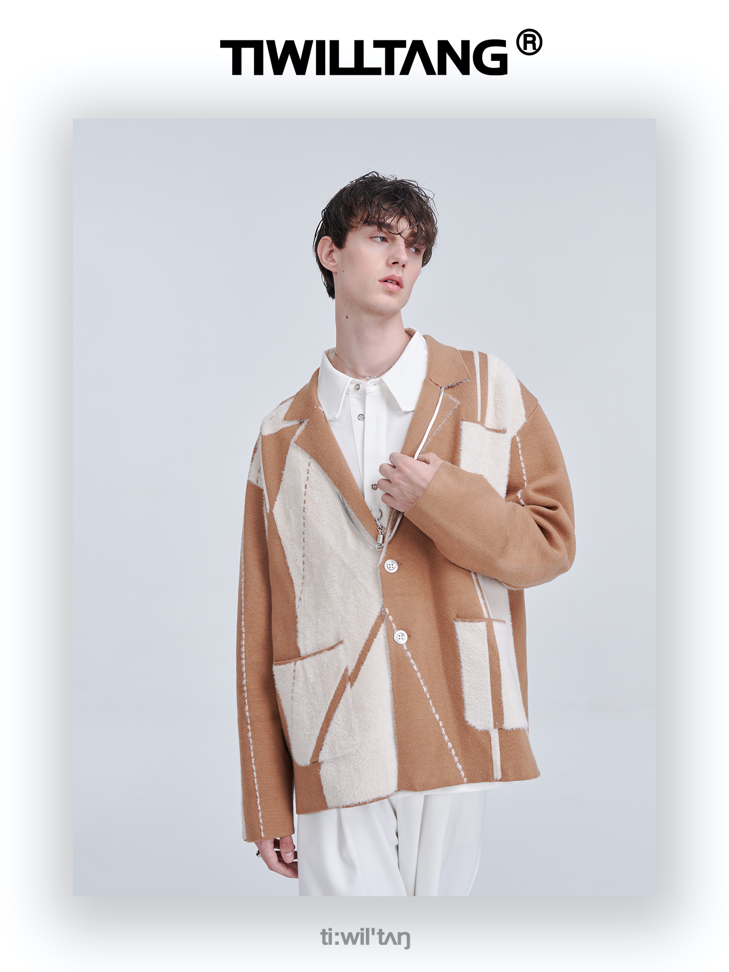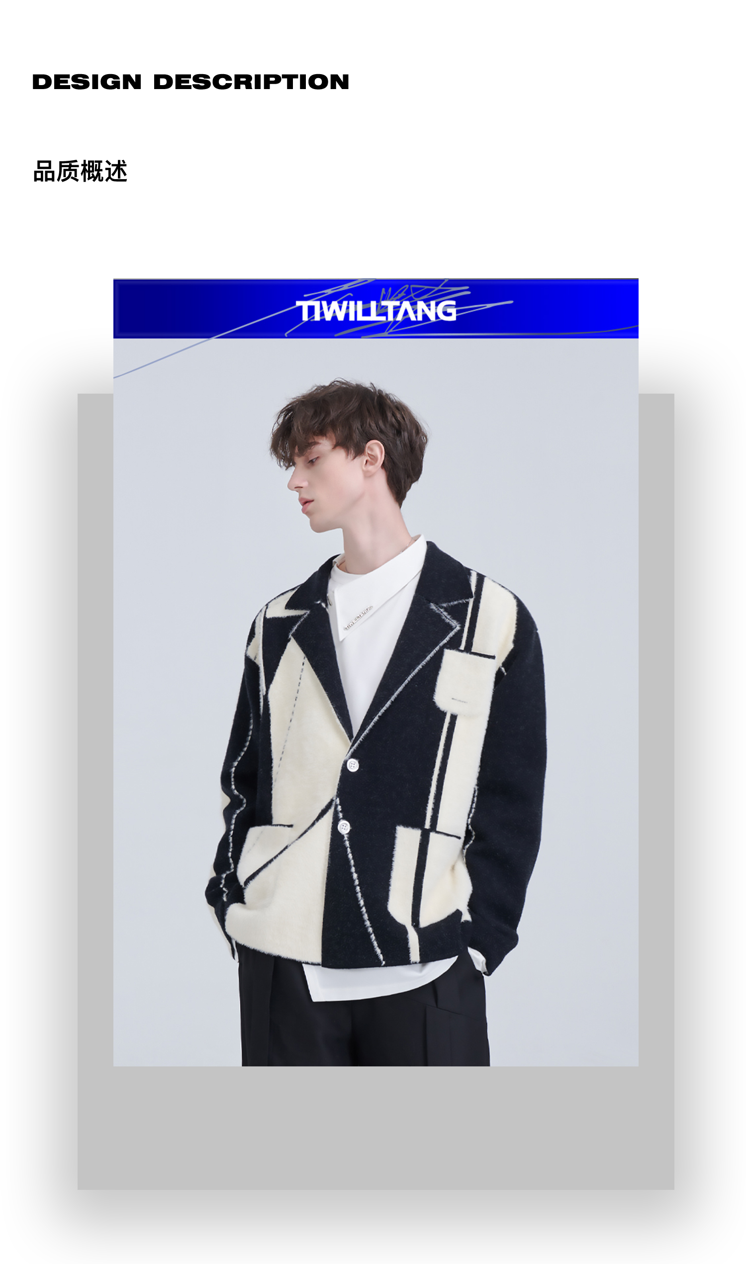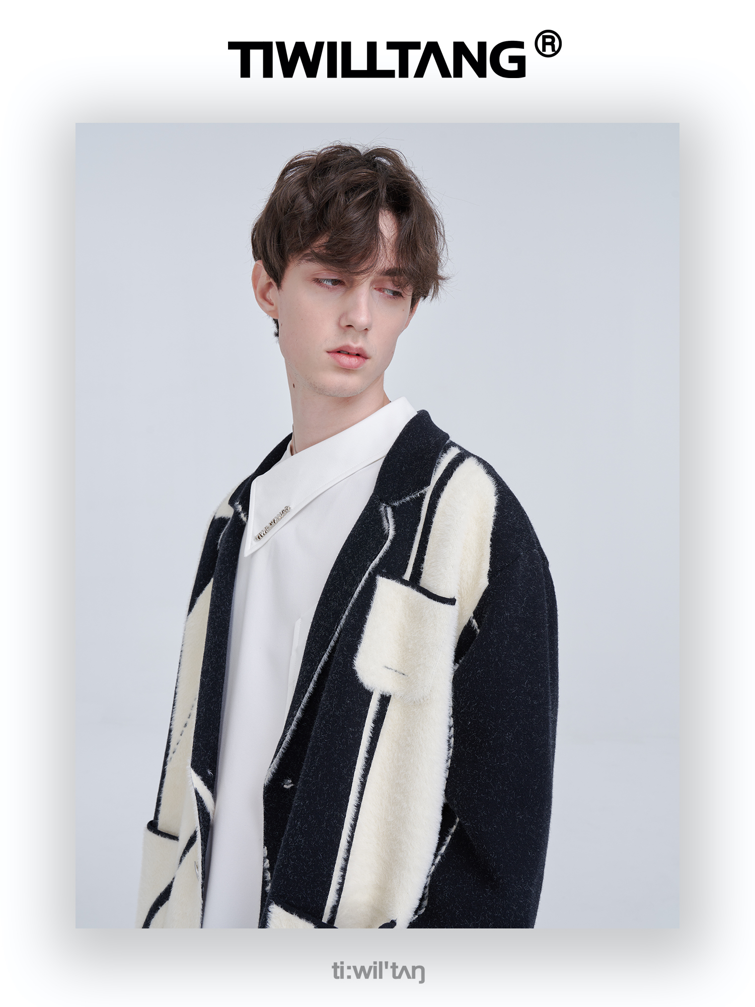 TIWILLTANG启世录"星罗"黑白拼接层次针织西装休闲开衫外套男薄款