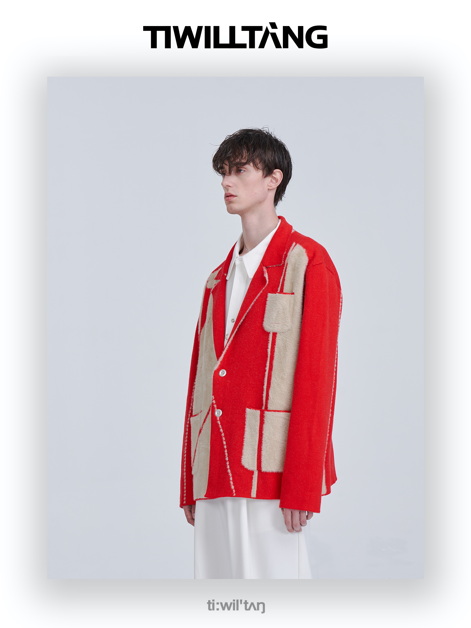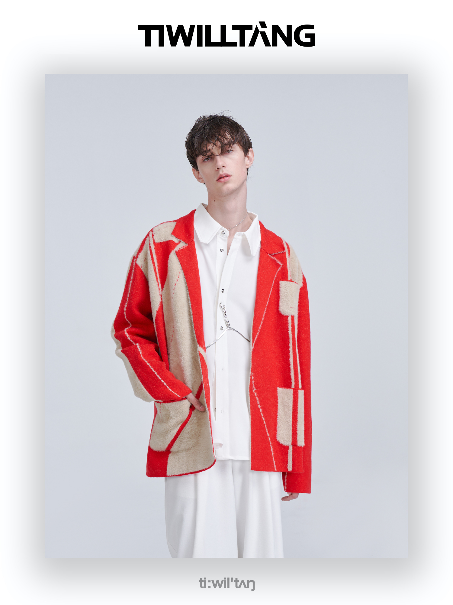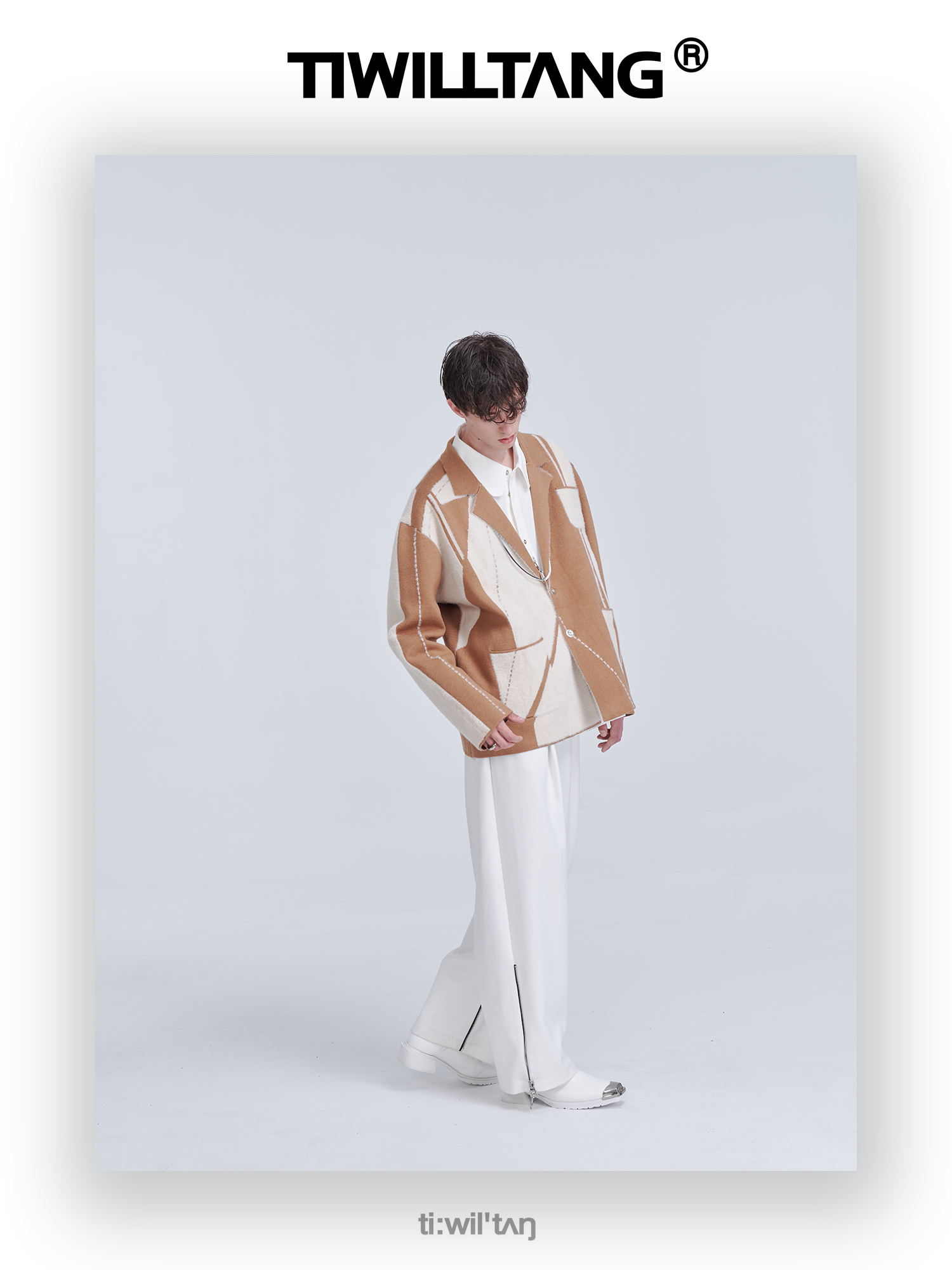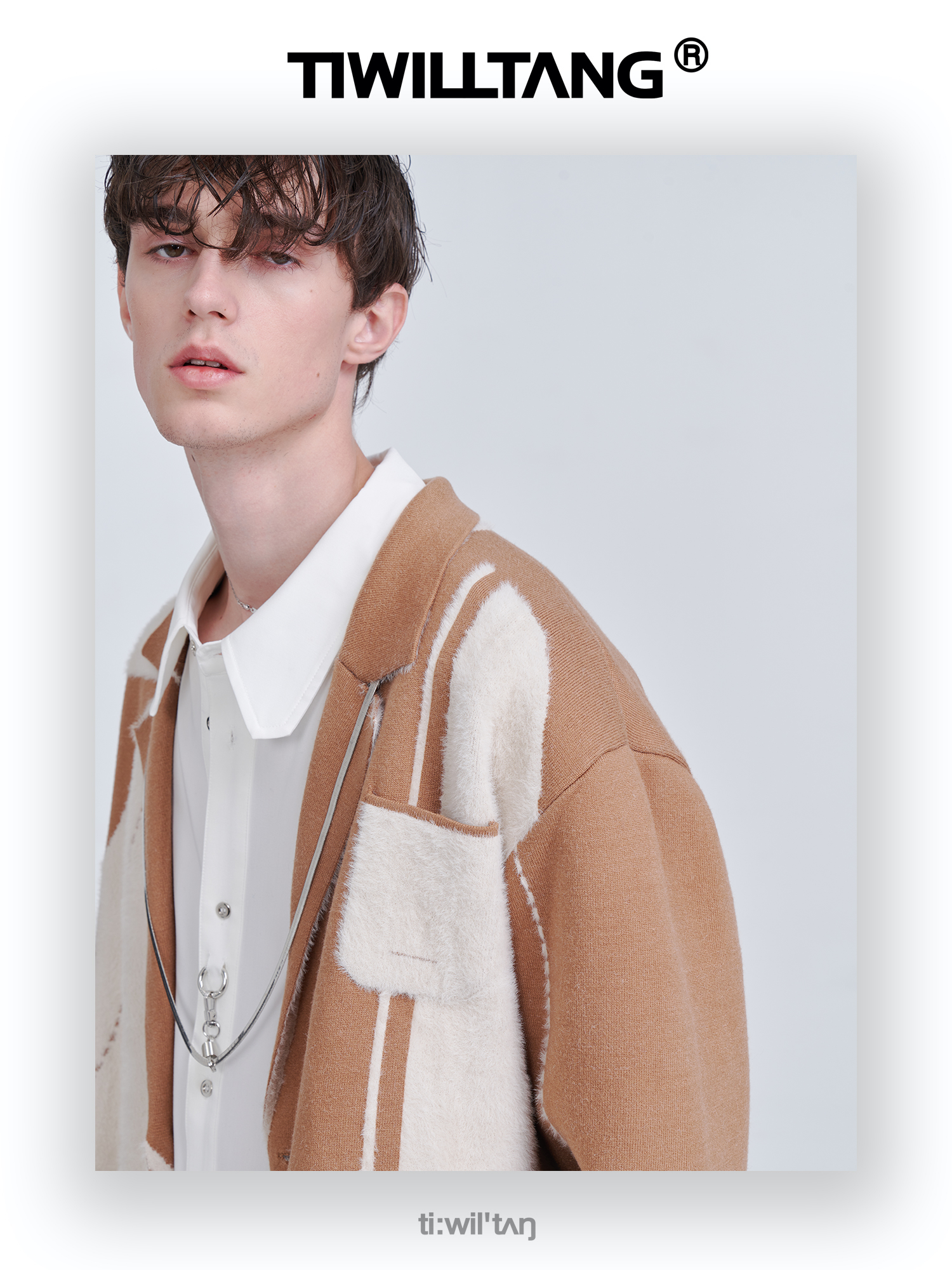 TIWILLTANG启世录"星罗"黑白拼接层次针织西装休闲开衫外套男薄款