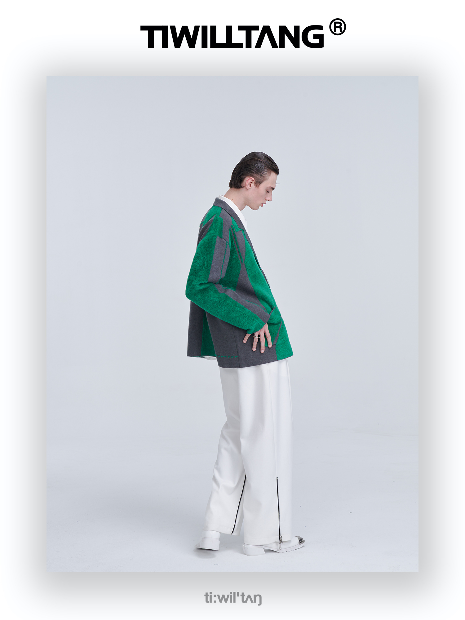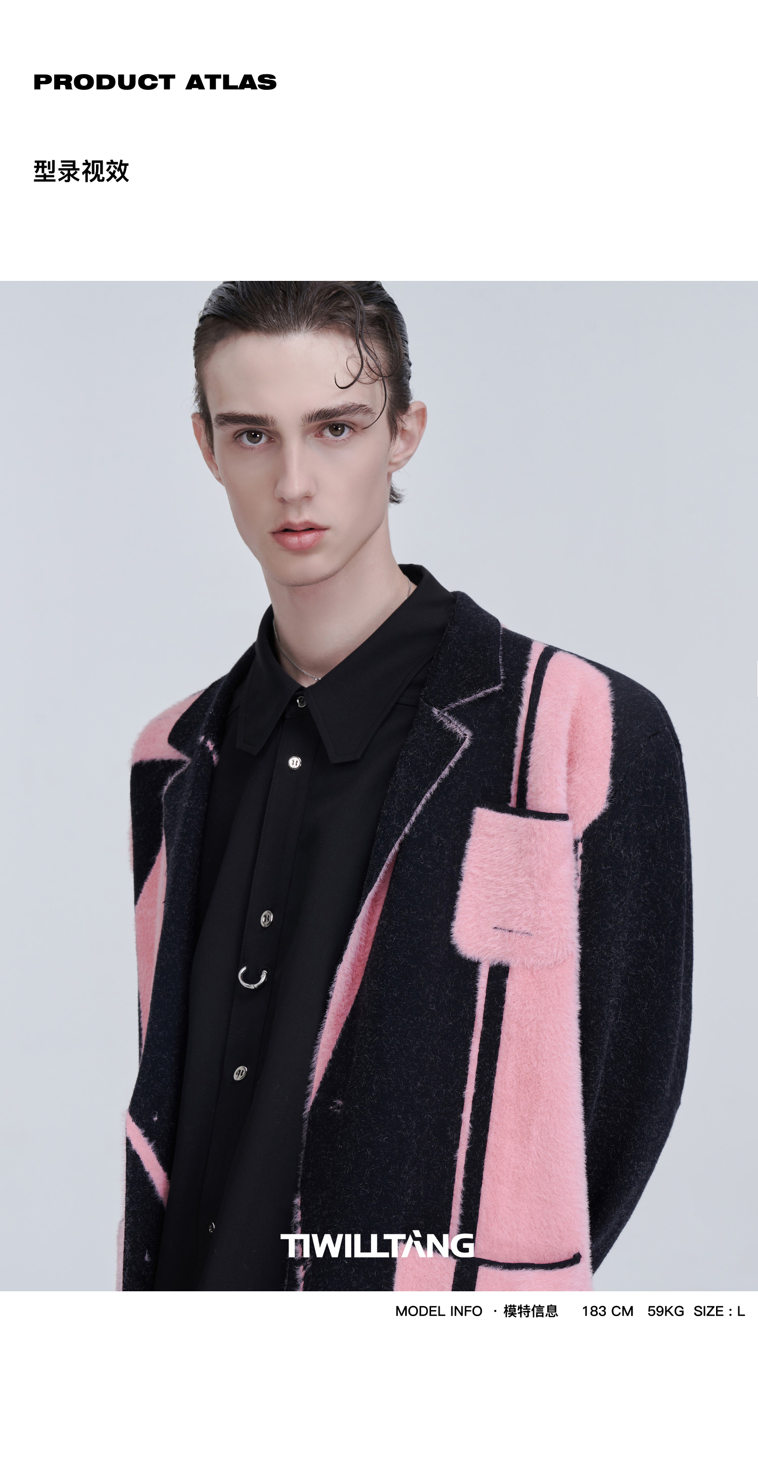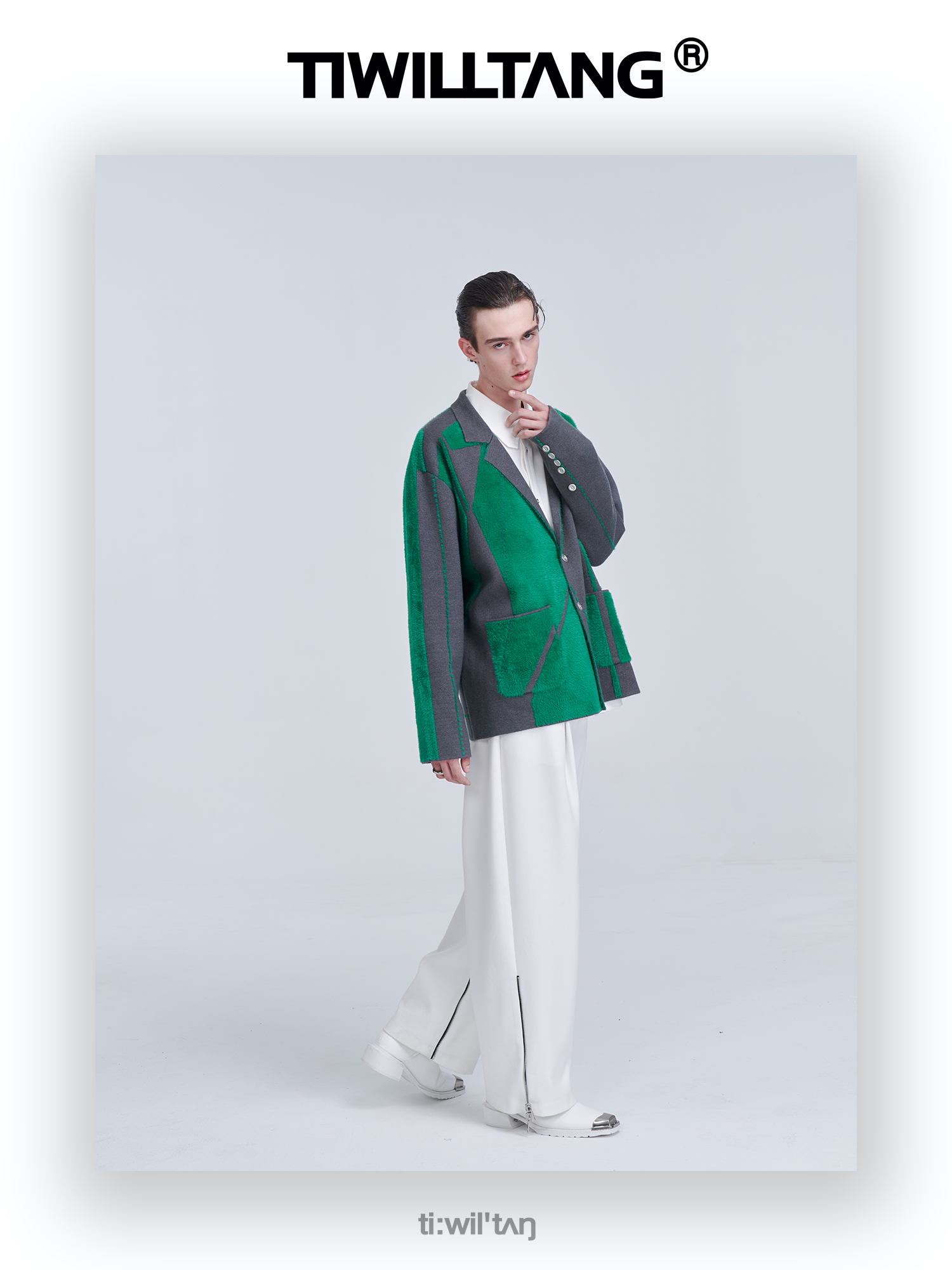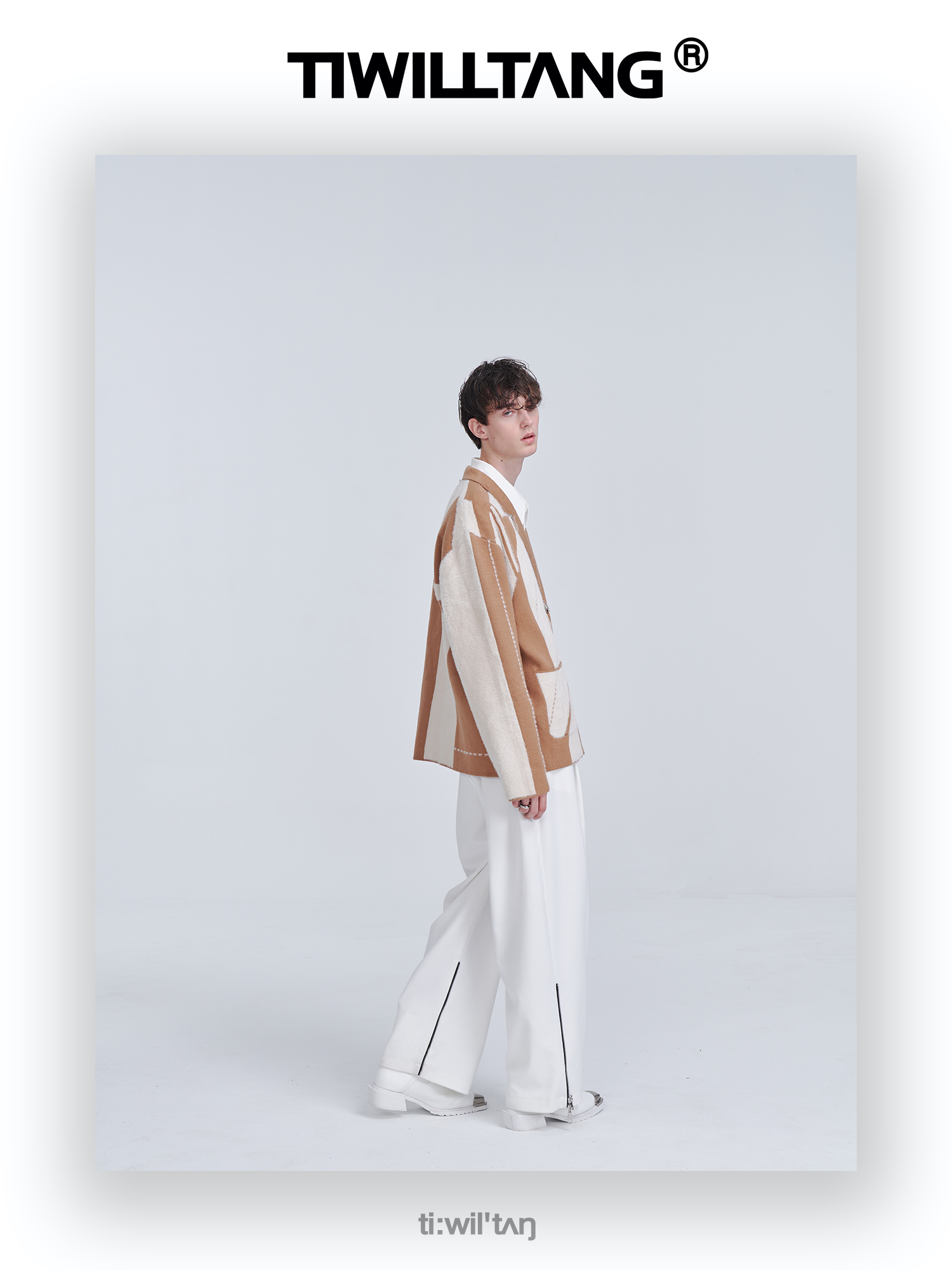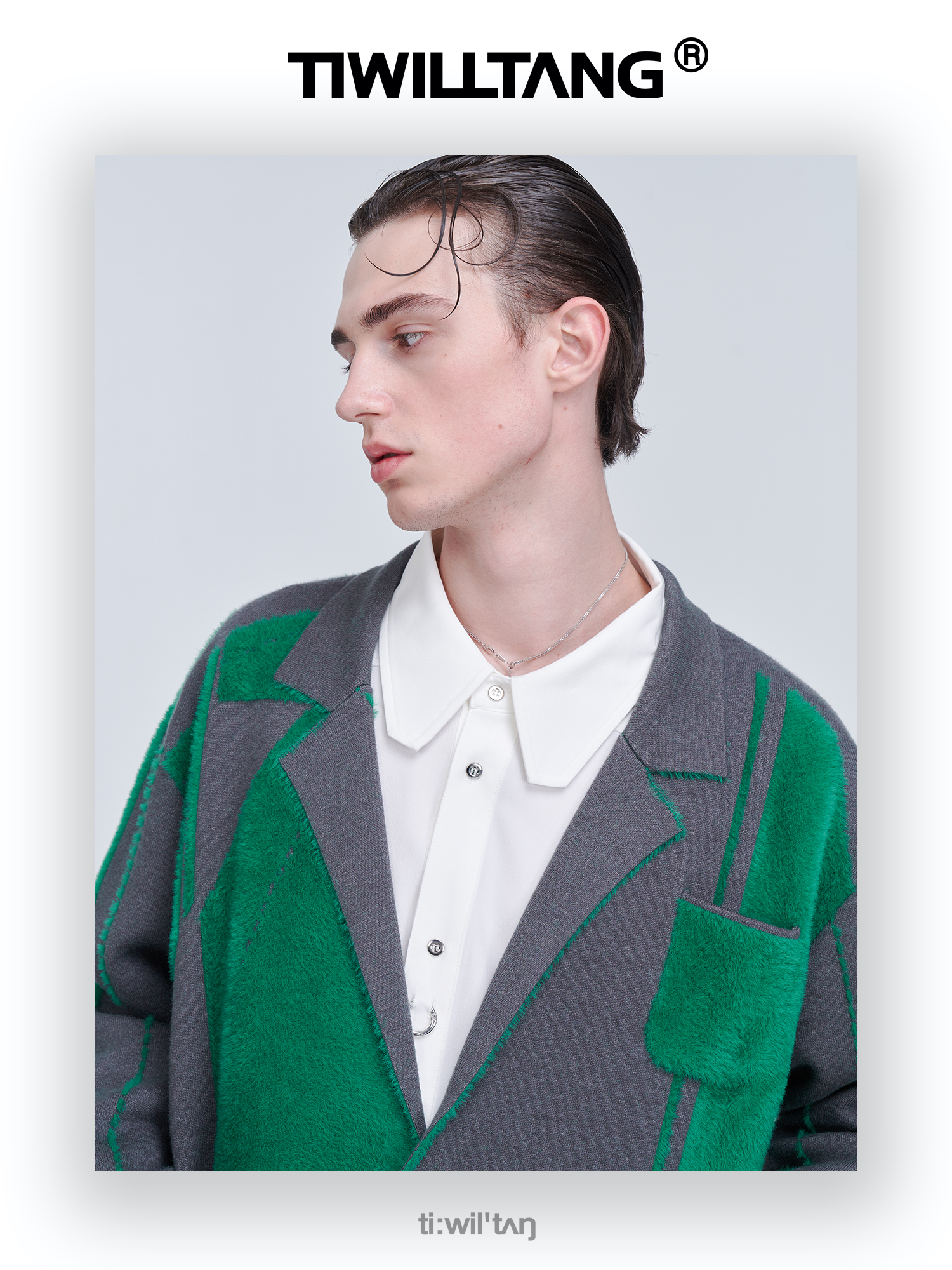 TIWILLTANG启世录"星罗"黑白拼接层次针织西装休闲开衫外套男薄款