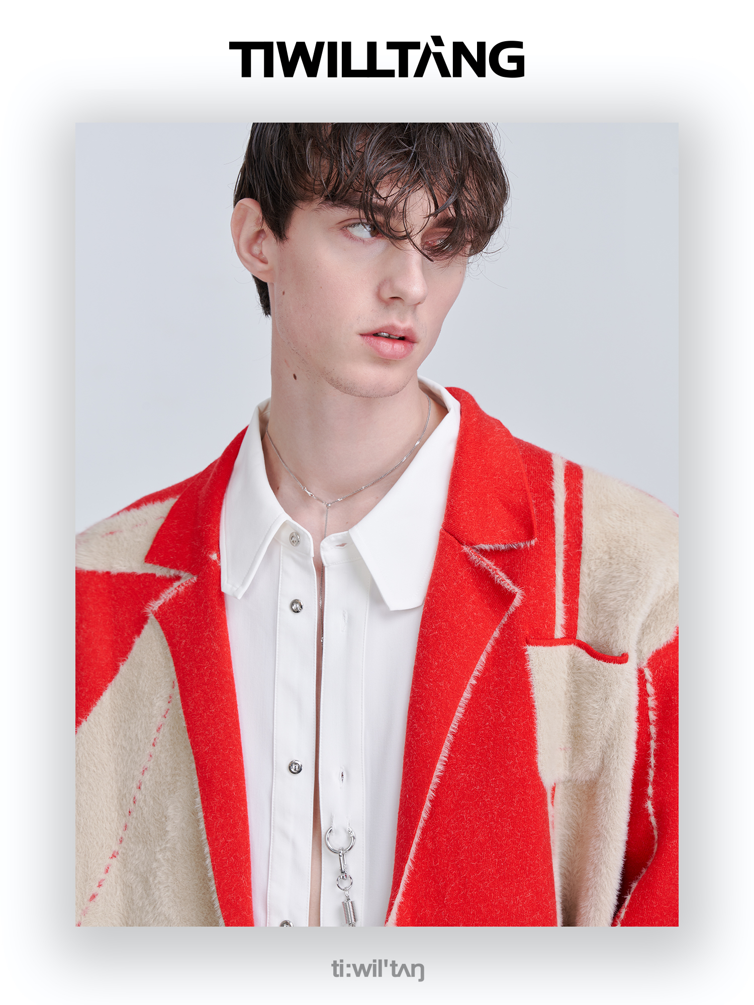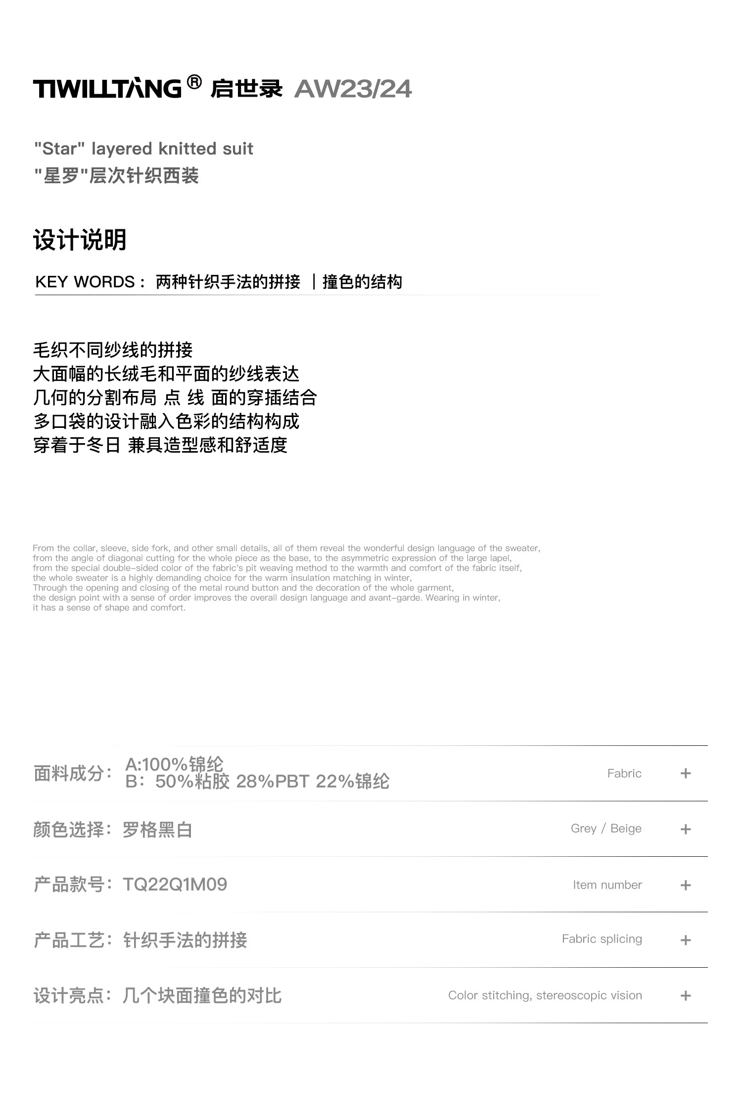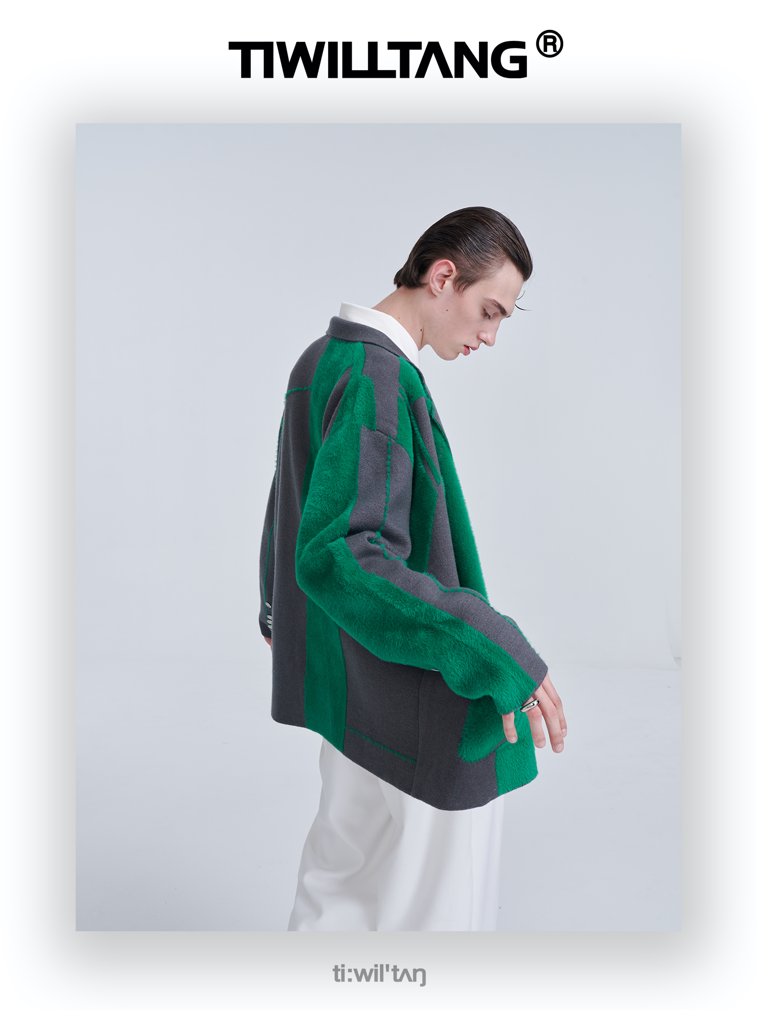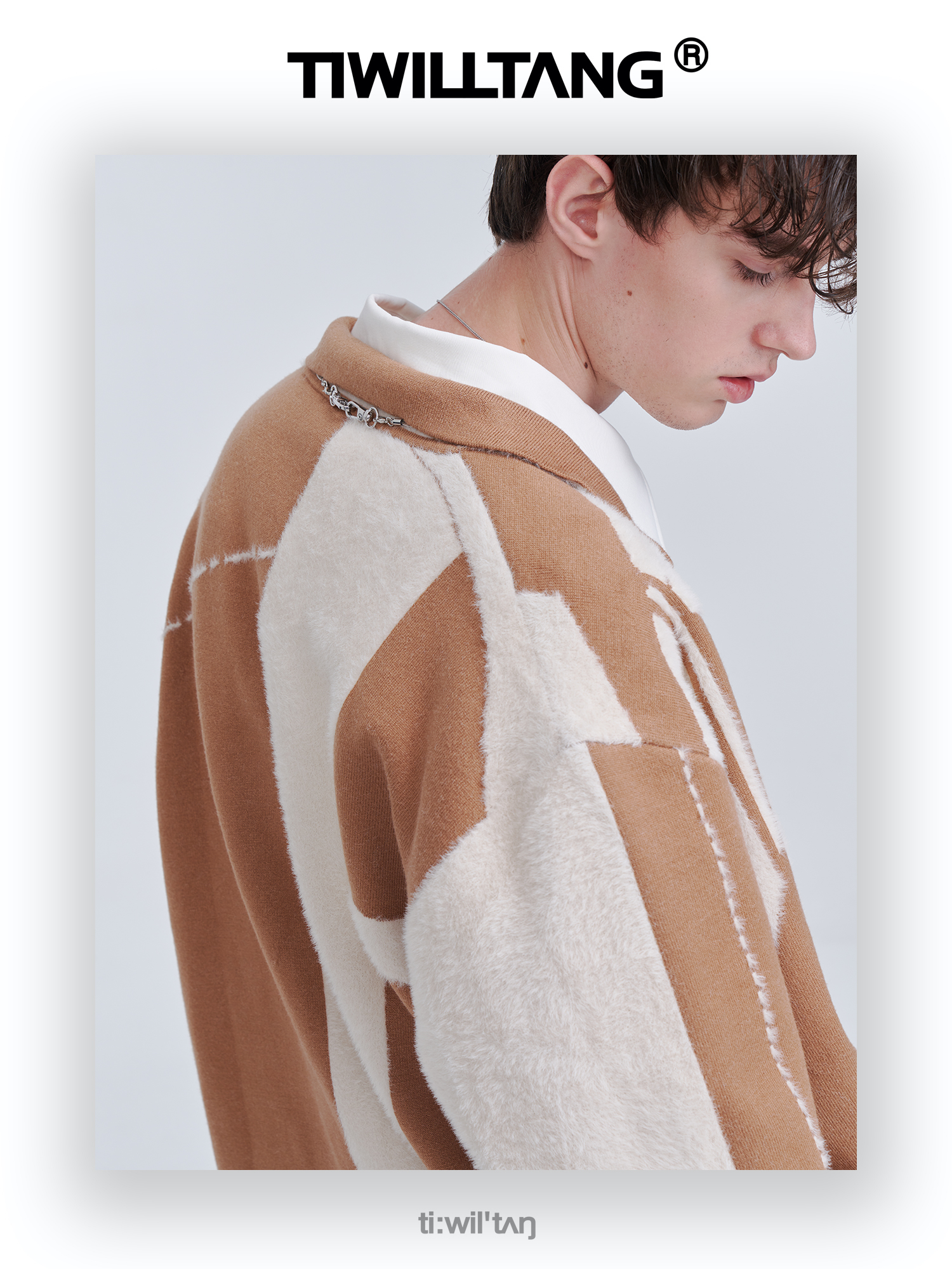 TIWILLTANG启世录"星罗"黑白拼接层次针织西装休闲开衫外套男薄款