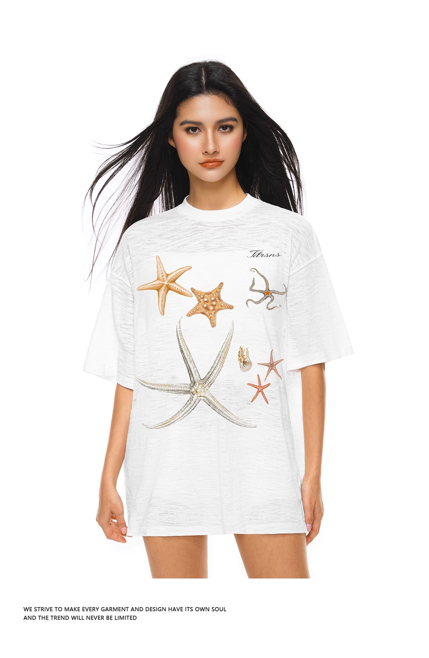 FDR官方店 沙滩海星印花短袖T恤男女夏季宽松休闲情侣装体恤上衣