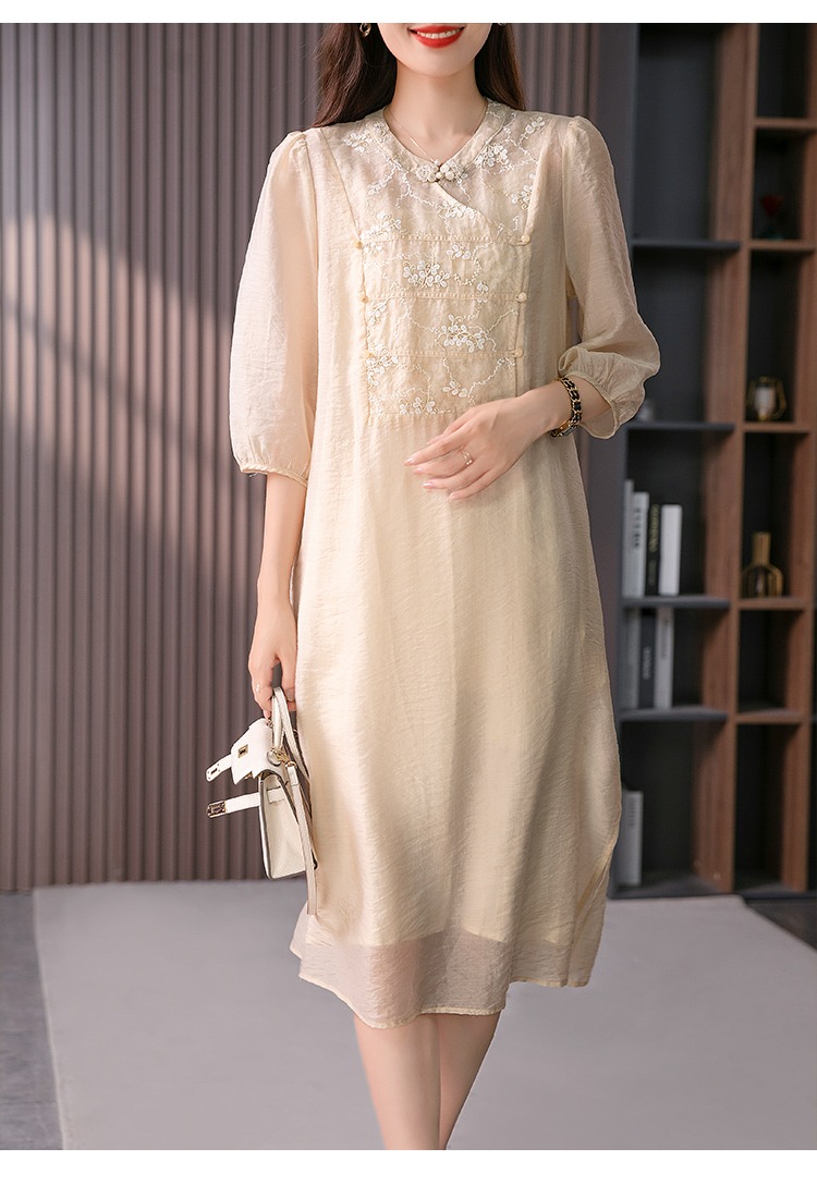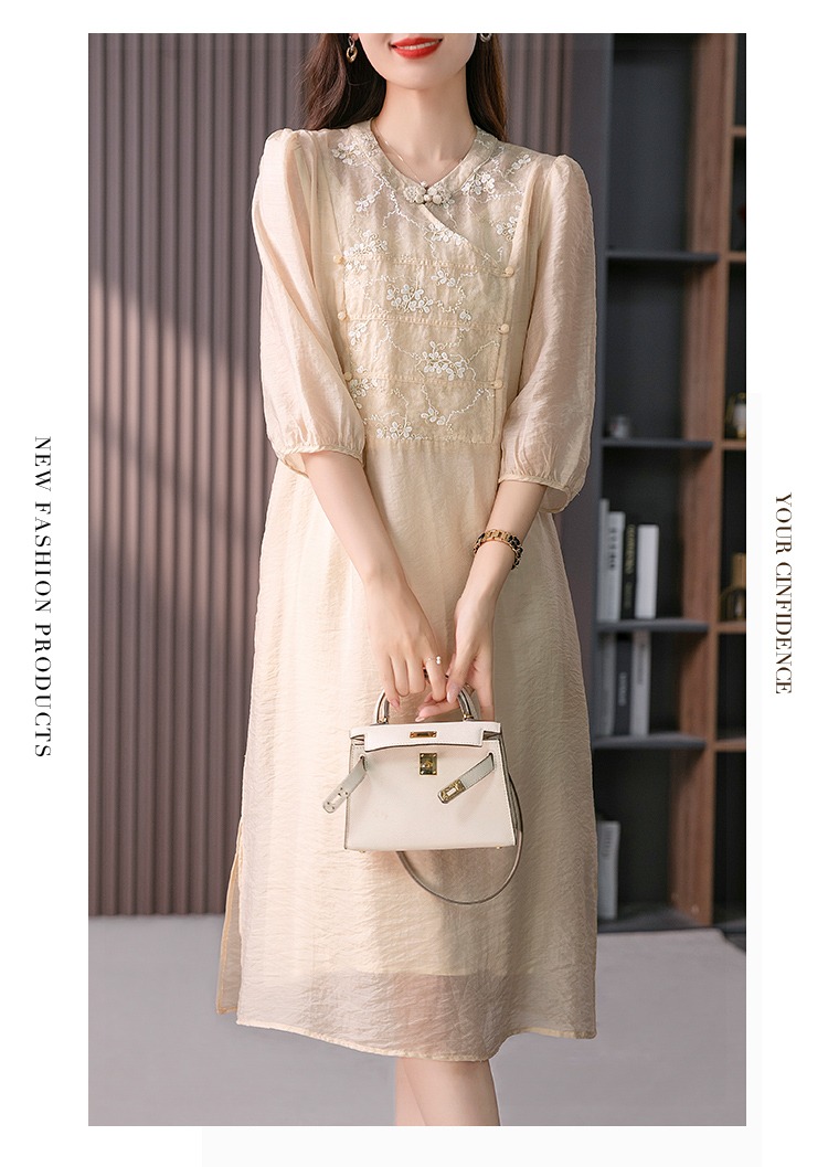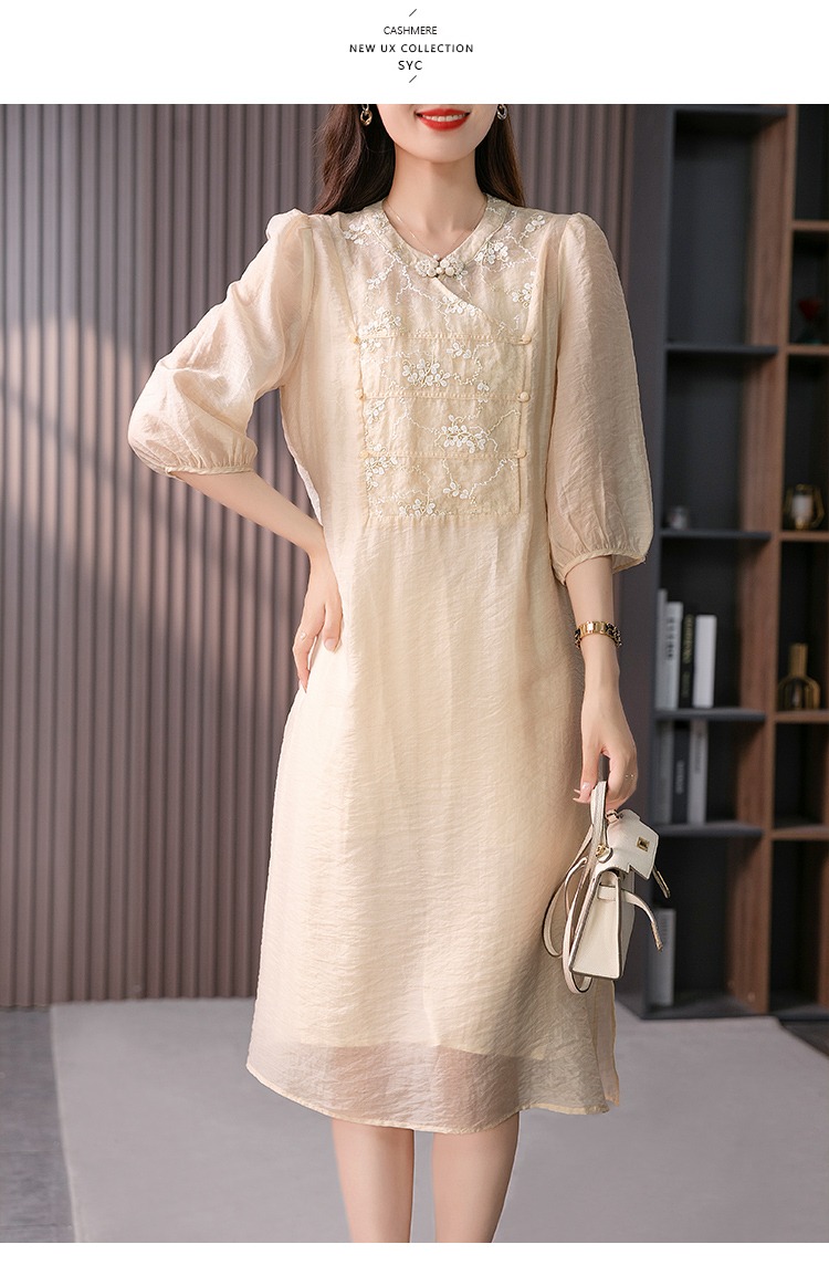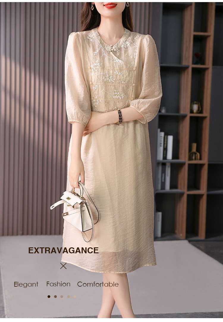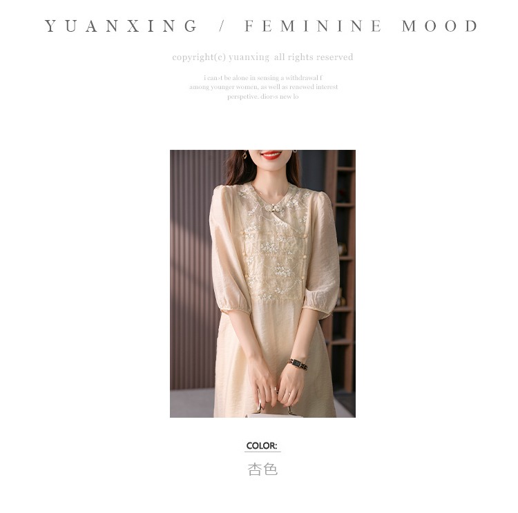 YX【定制25天】国风改良旗袍裙绣花天丝连衣裙 【7.5新款】