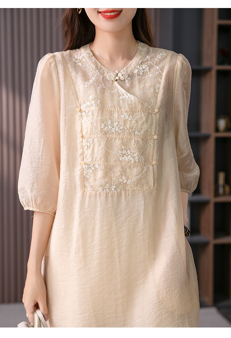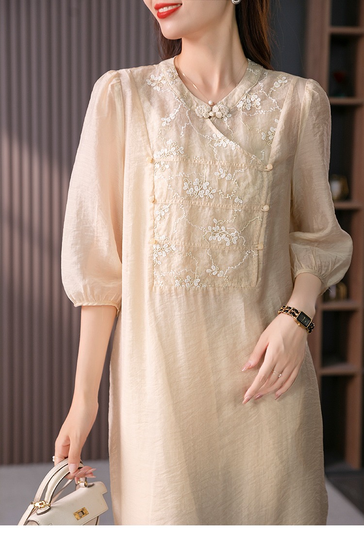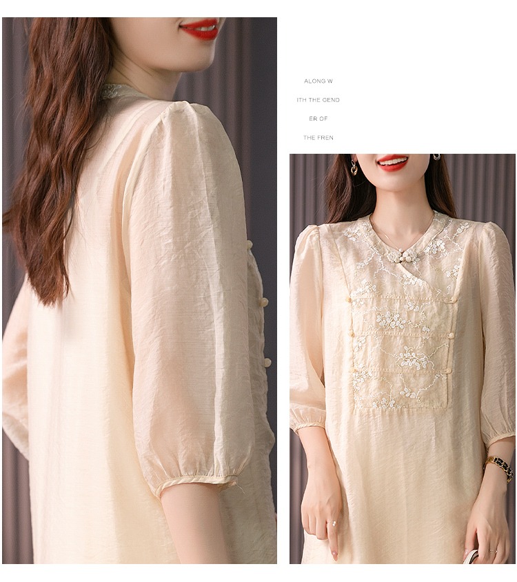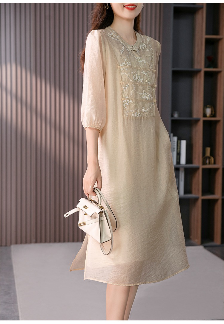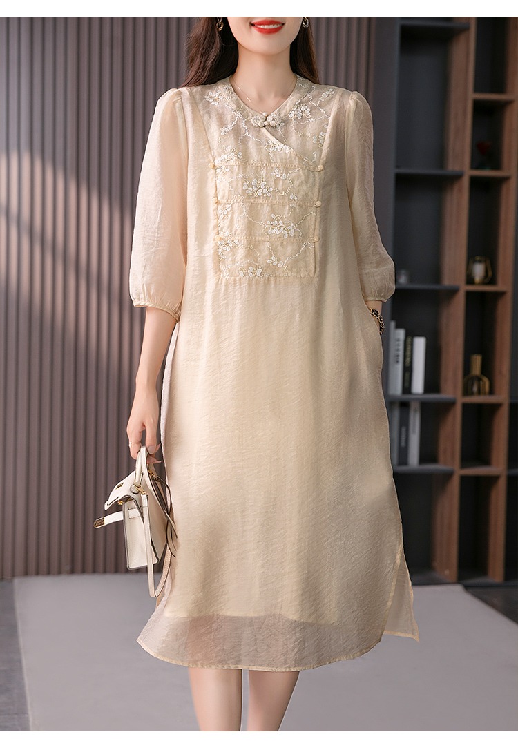 YX【定制25天】国风改良旗袍裙绣花天丝连衣裙 【7.5新款】