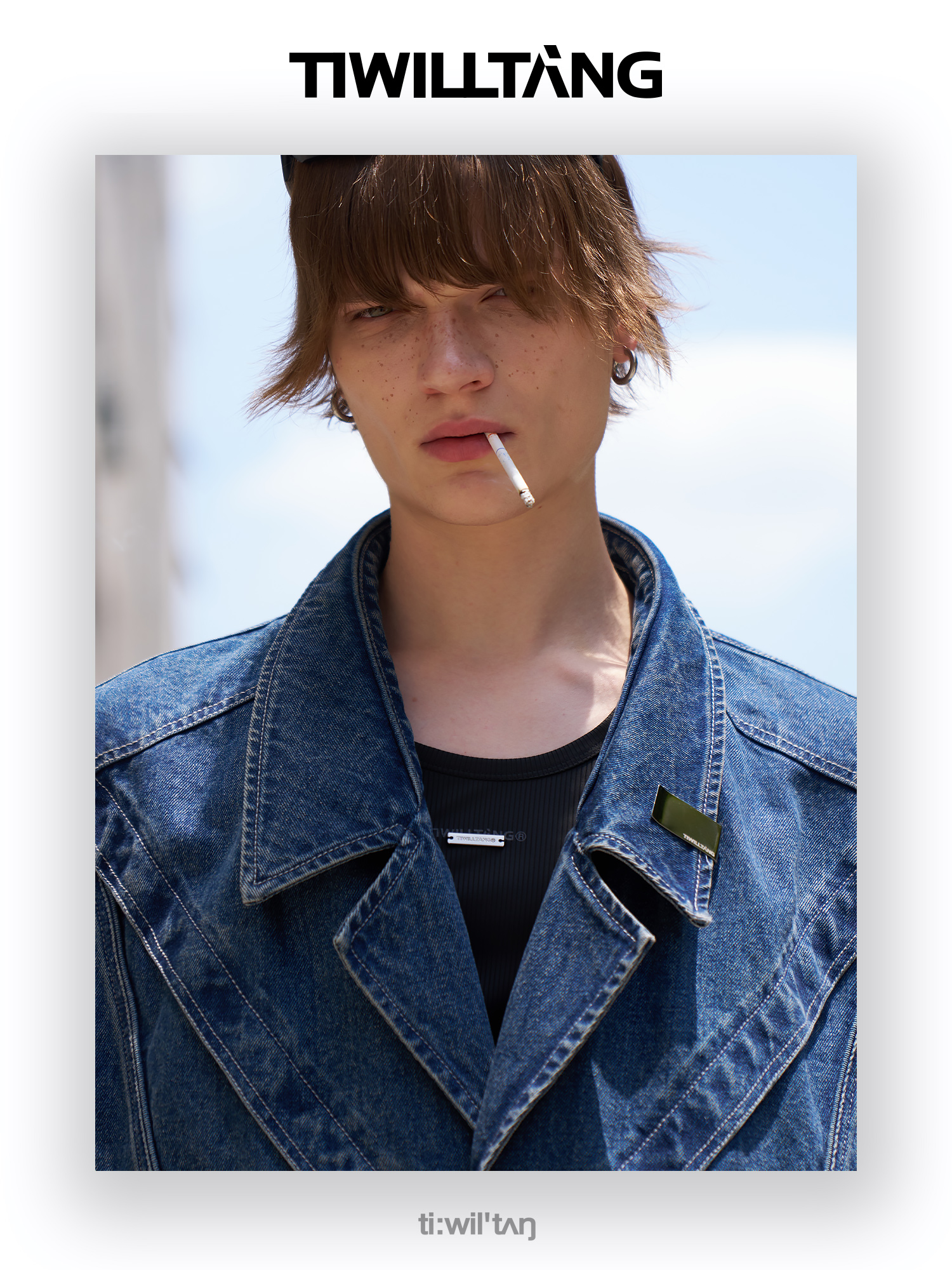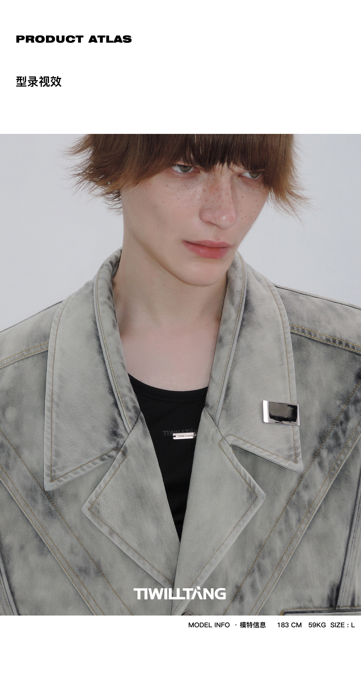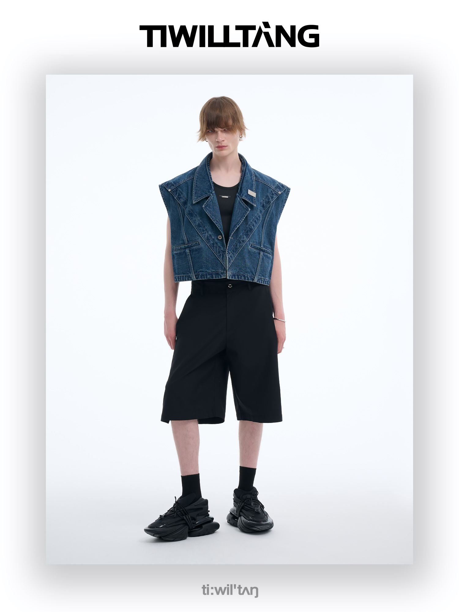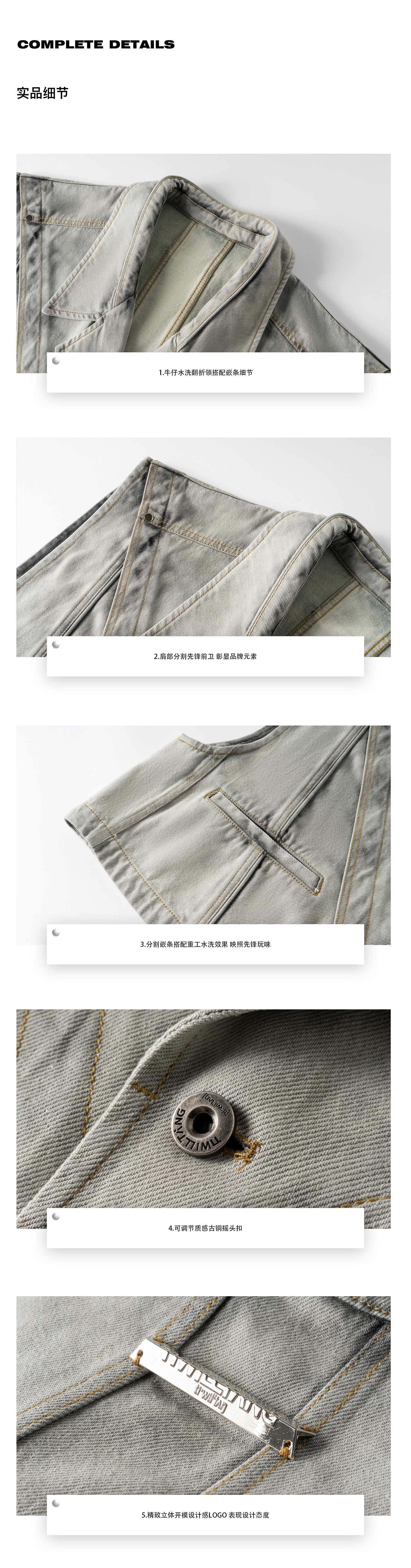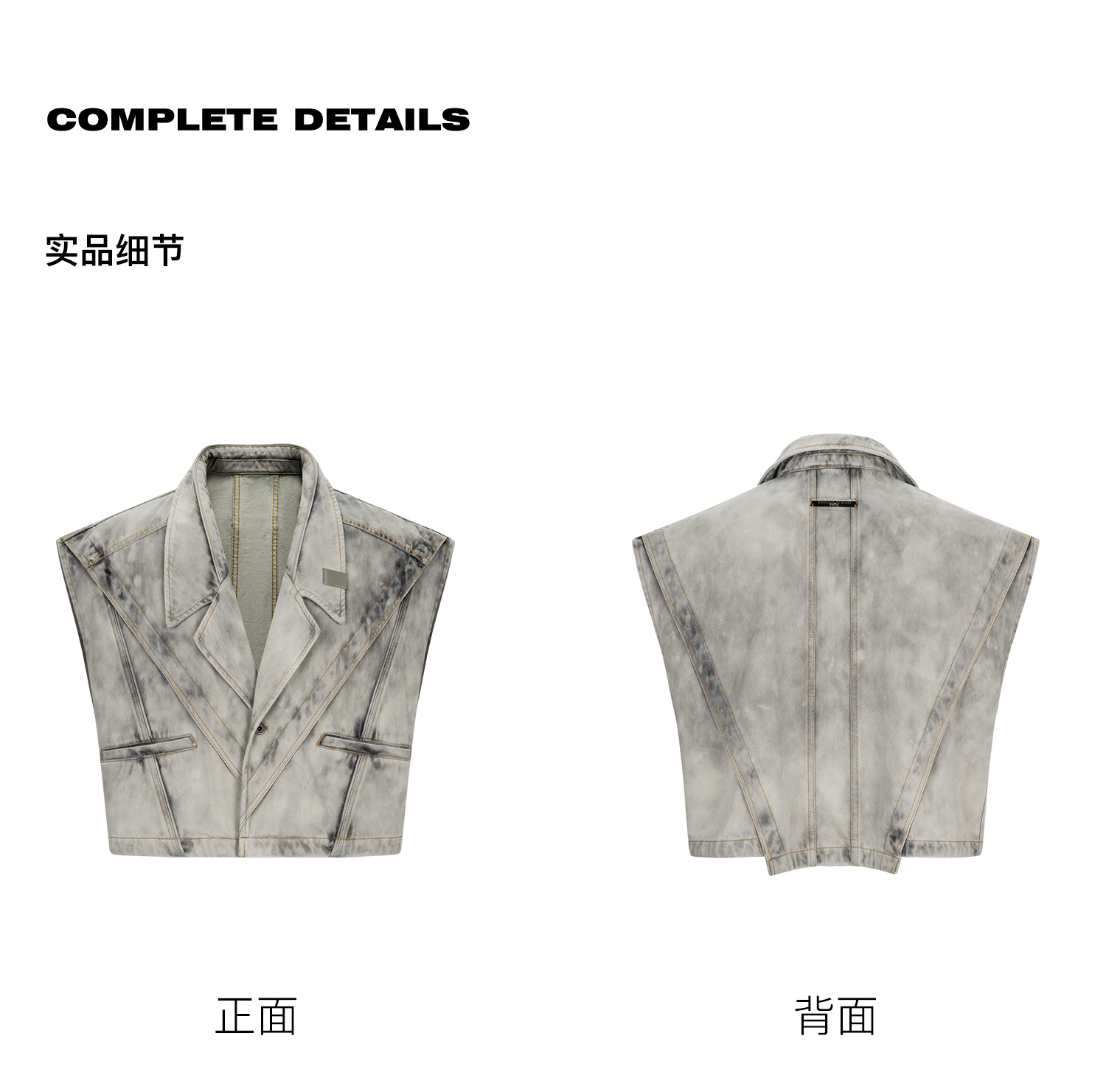 TIWILLTANG 启世录“锛淳”翻领水洗复古牛仔马甲上衣短款宽松男