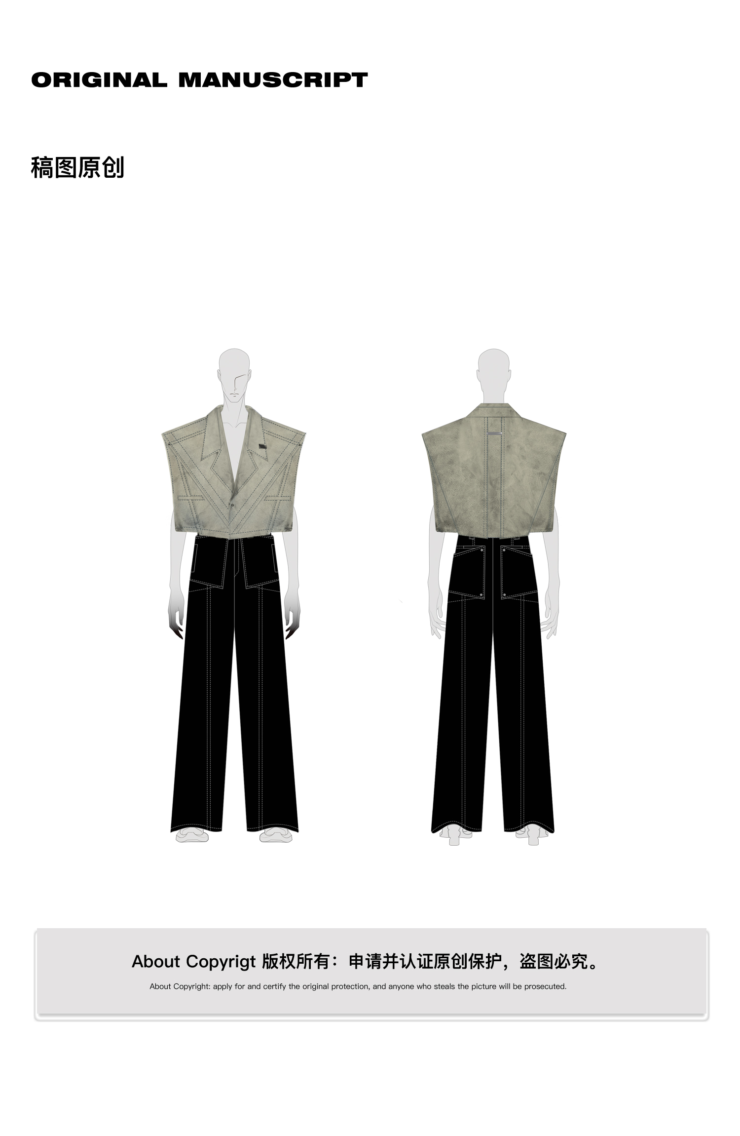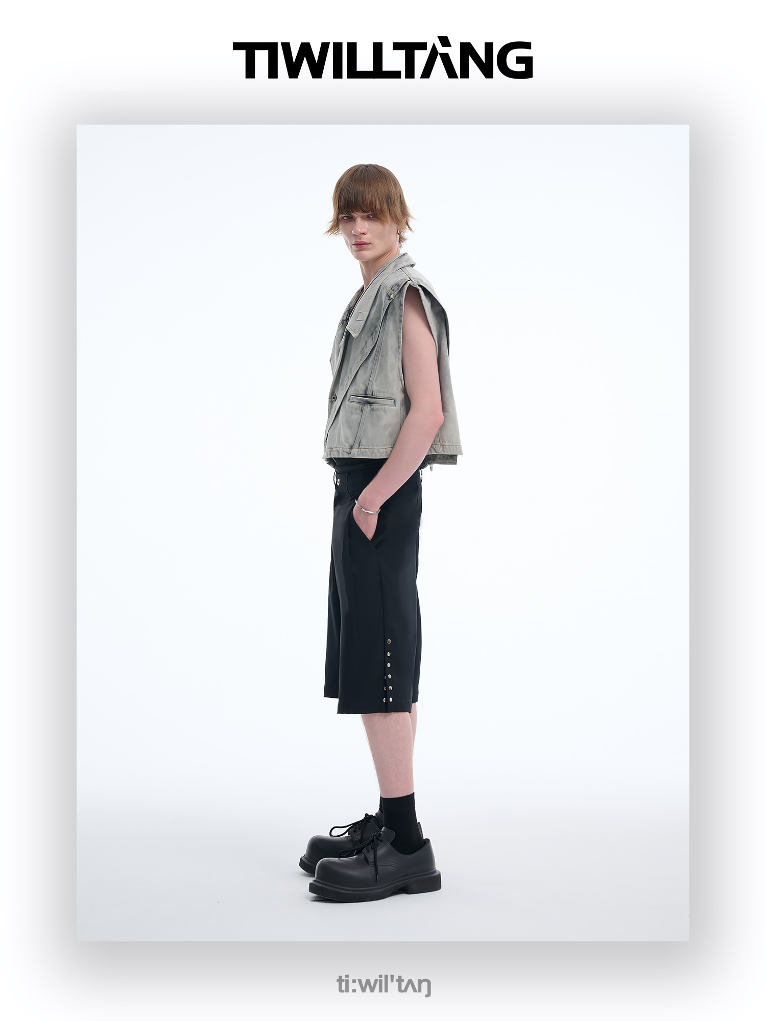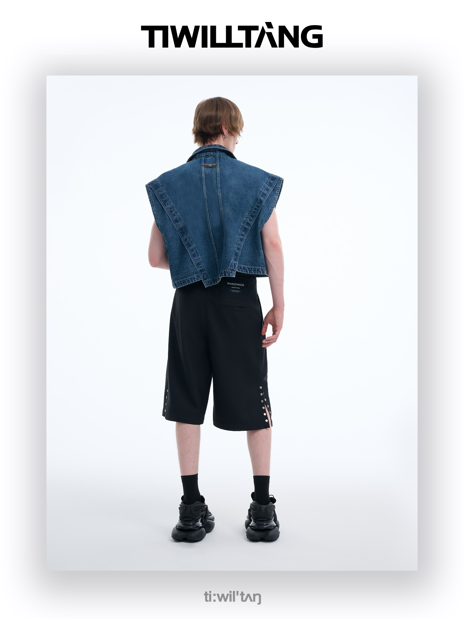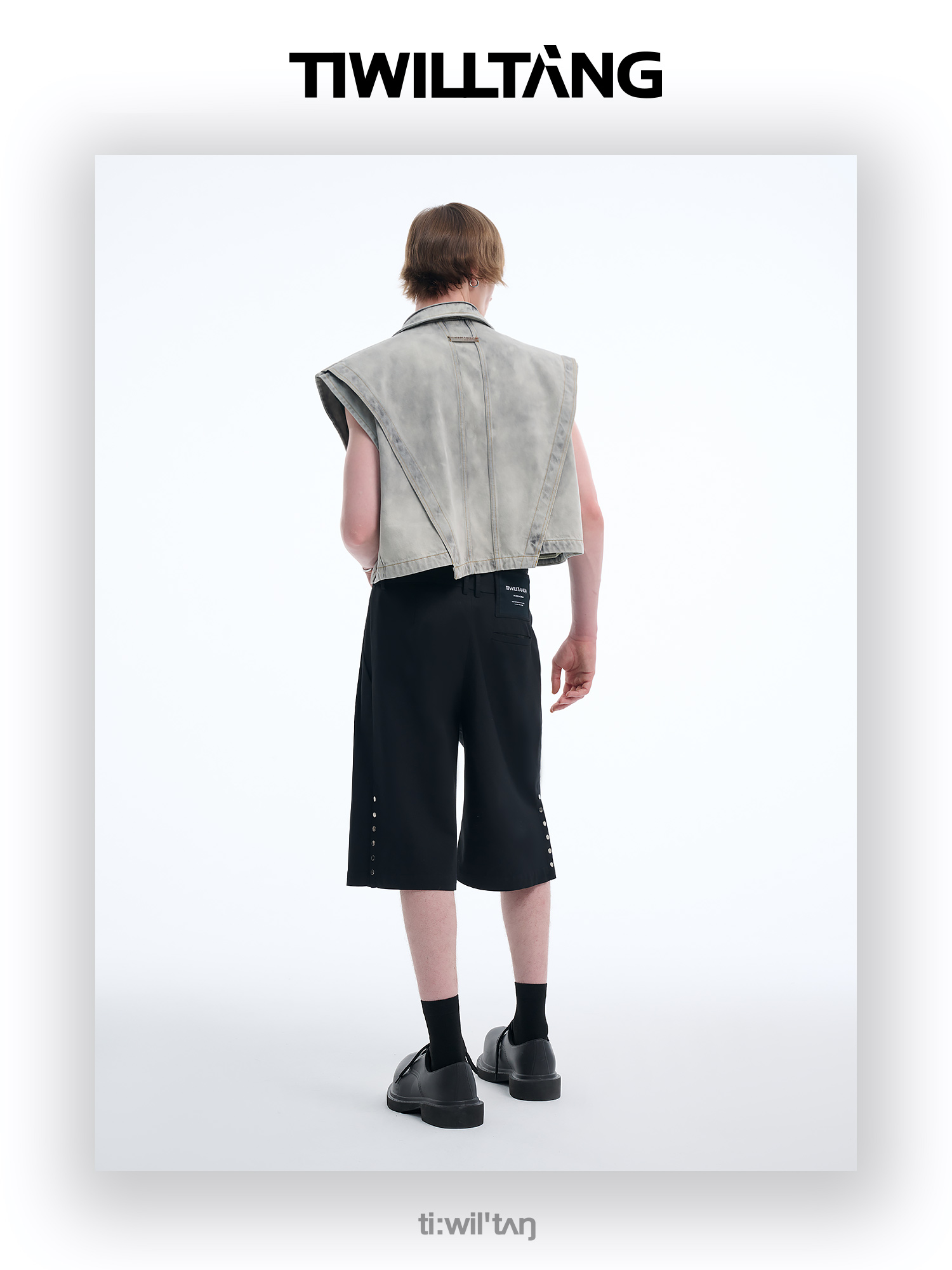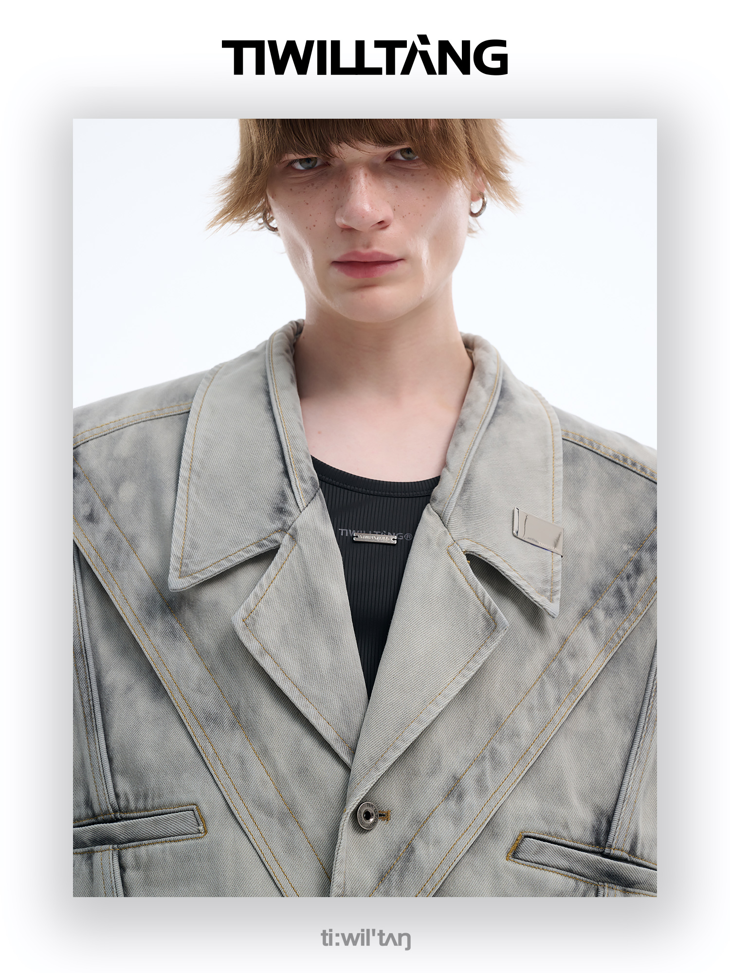 TIWILLTANG 启世录“锛淳”翻领水洗复古牛仔马甲上衣短款宽松男