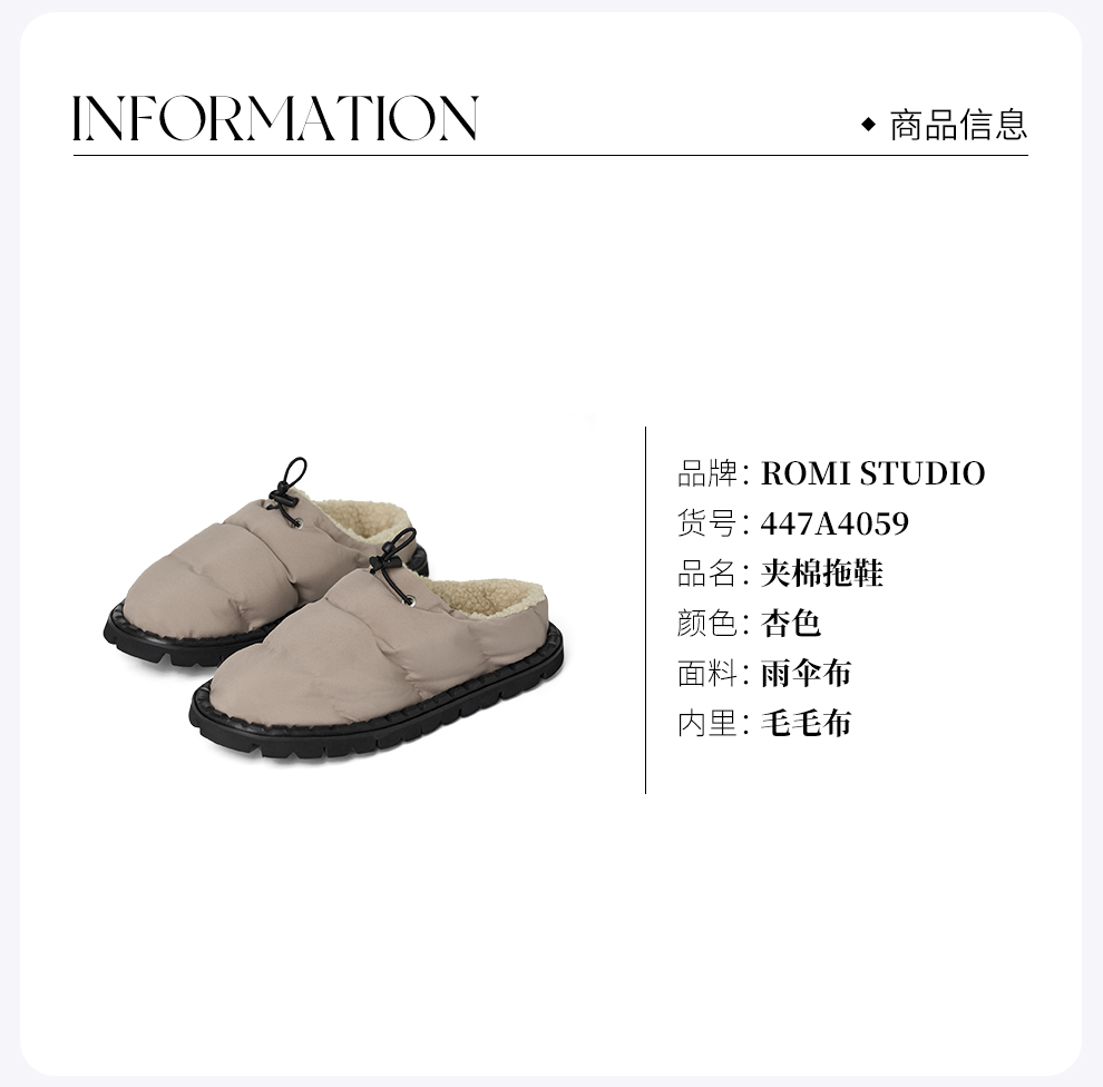 ROMI STUDIO“温暖过冬”加绒抽绳厚款耐磨防滑包头棉拖鞋 447A4059