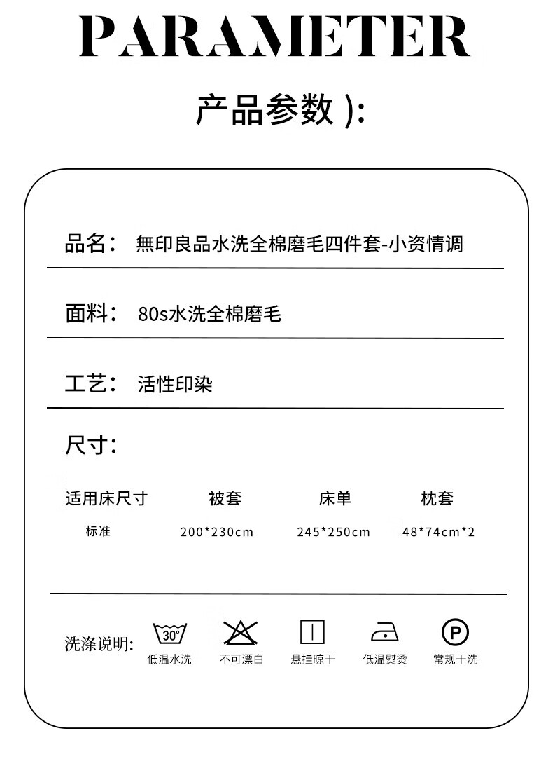 無印水洗全棉磨毛四件套 小资情调 MUJI-TJ23-85
