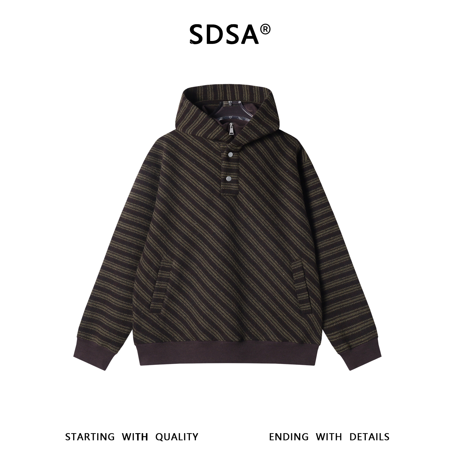 SDSA男士秋冬新款痞帅男装高街撞色斜纹按扣立领连帽卫衣百搭时尚
