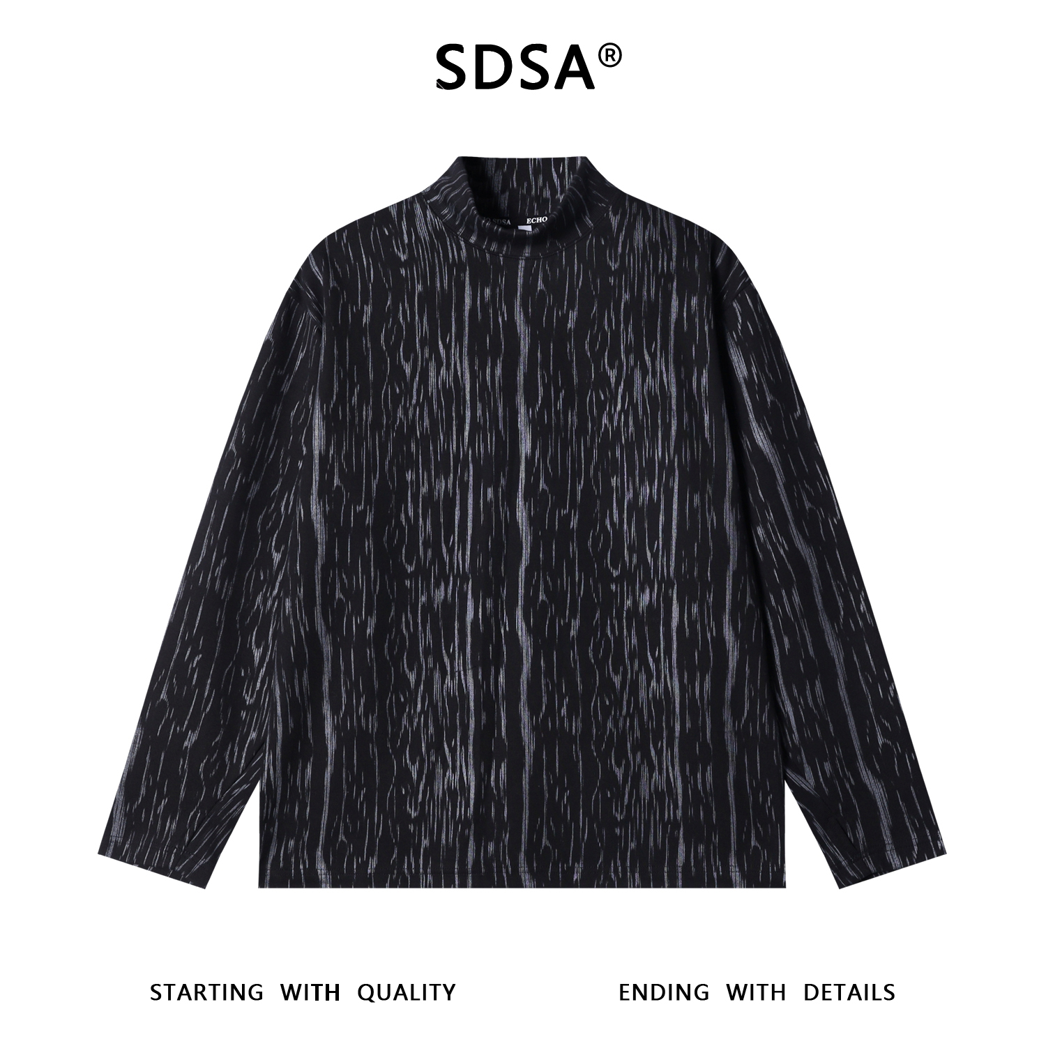 T4956SDSA男士秋冬新款痞帅男装潮牌绒面洒金十字半高领长袖T恤百搭