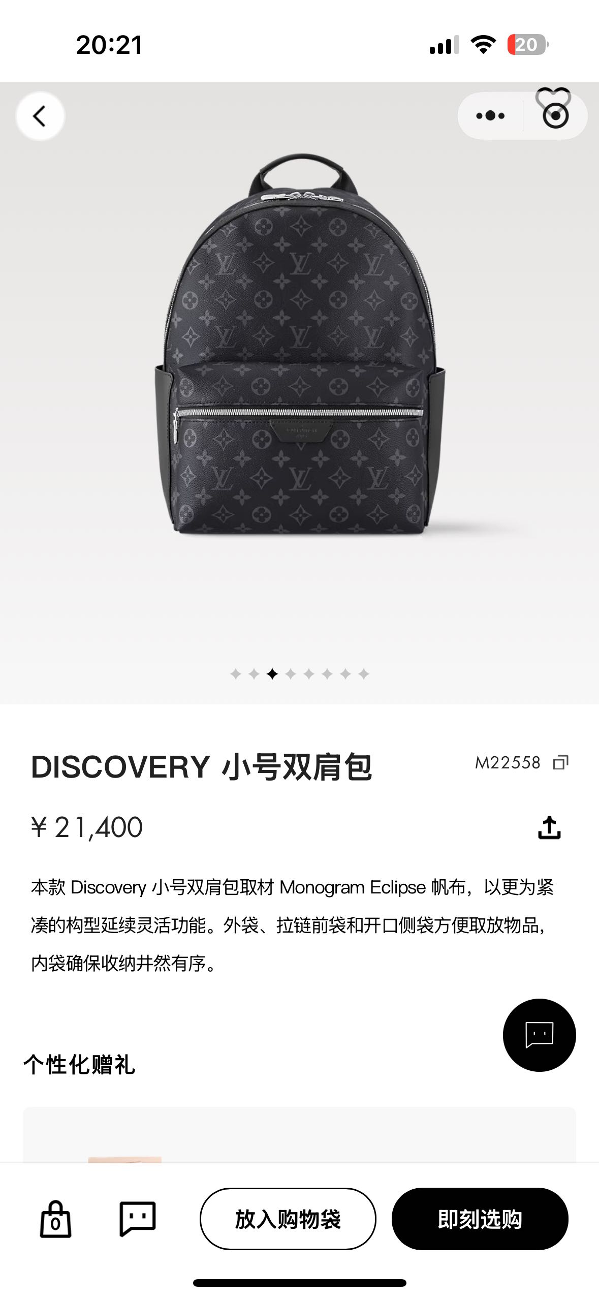 本款 Discovery 小号双肩包取材Monogram Eclipse帆布,以更为紧凑的构型延续灵活功能。外袋、拉链前袋和开口侧袋方便取放物品内袋确保收纳井然有序。