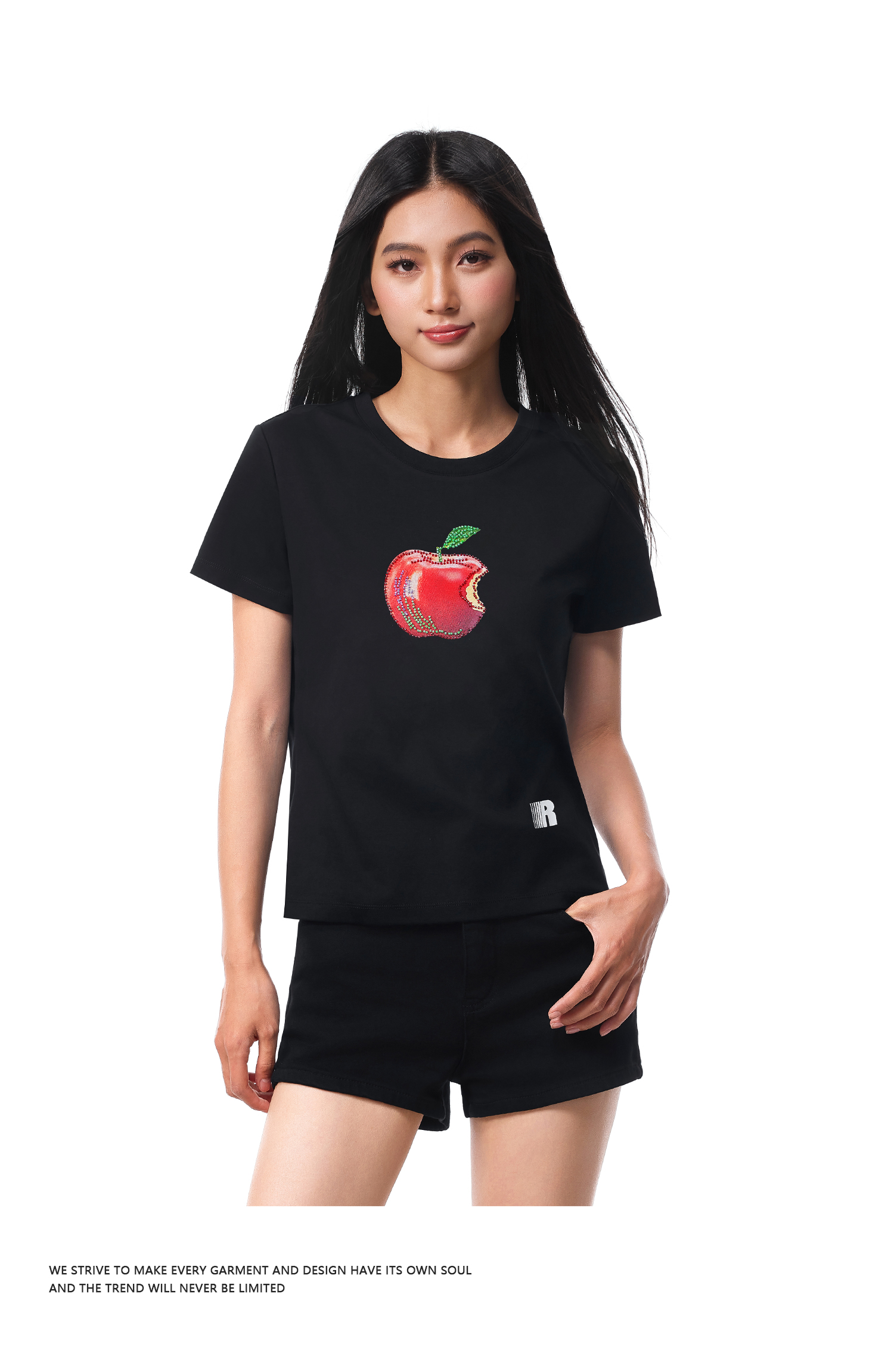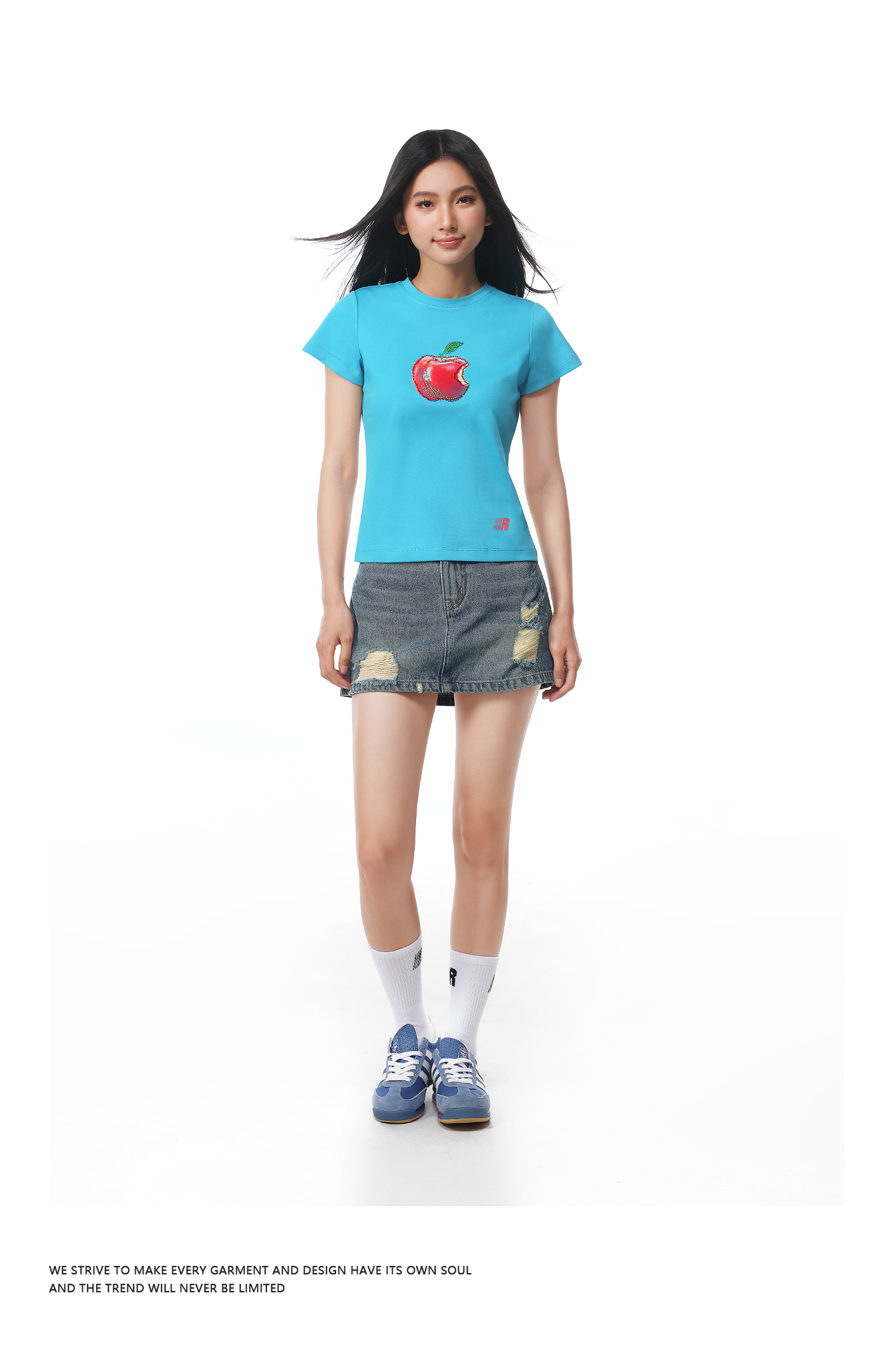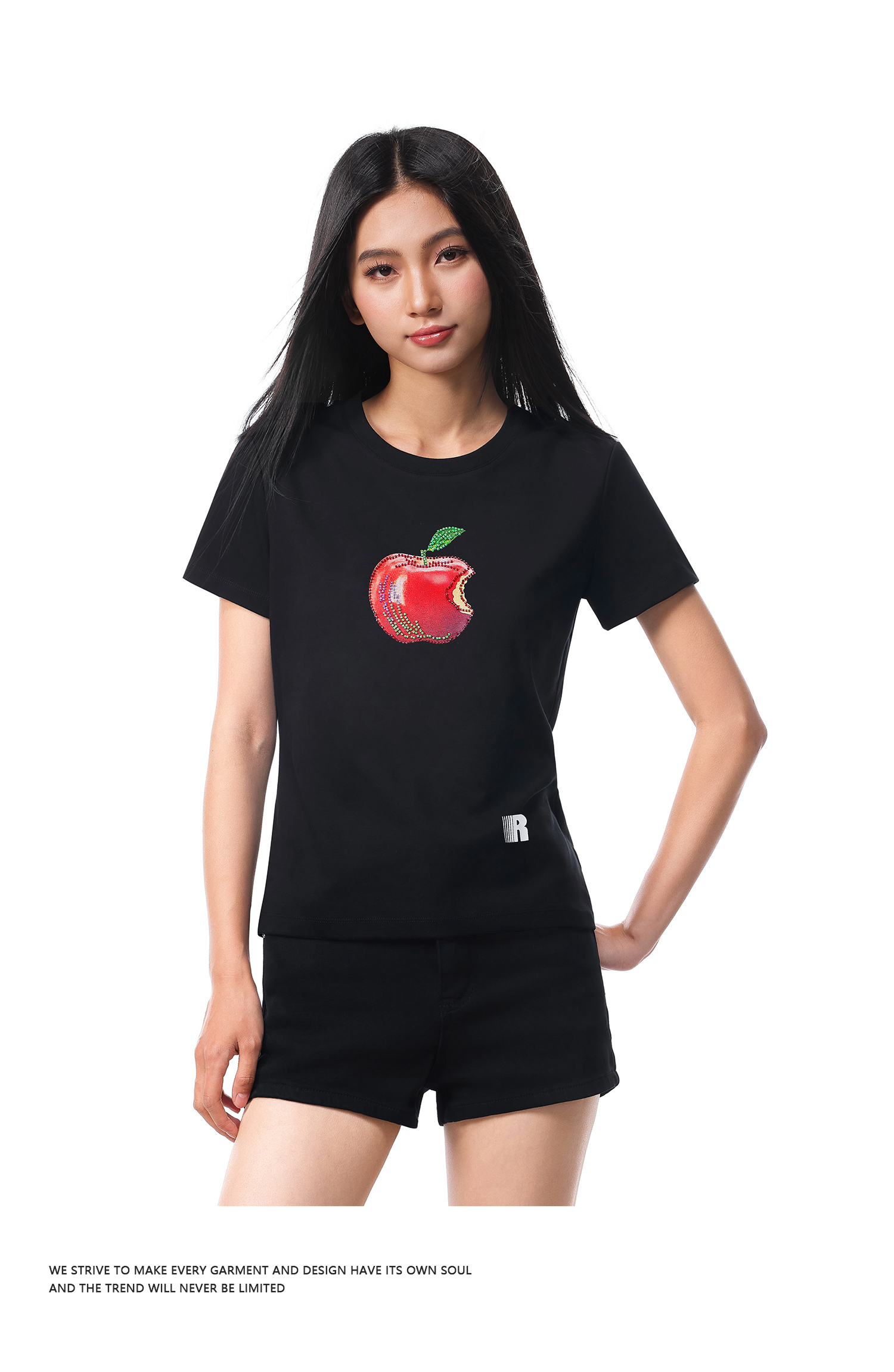 FDR官方店 趣味串珠苹果印花修身短袖t恤女夏季辣妹显瘦体恤上衣