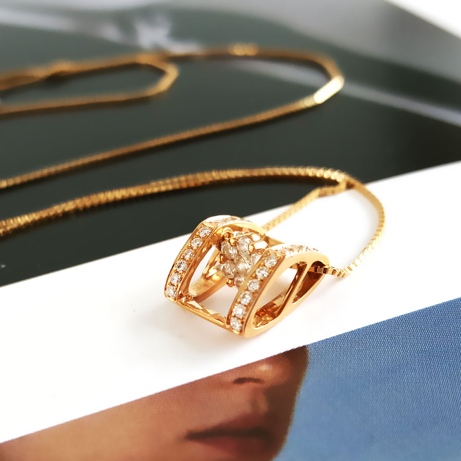款式 | AU750玫瑰金时尚设计款怦然心动系列0.207克拉钻石吊坠项链 |