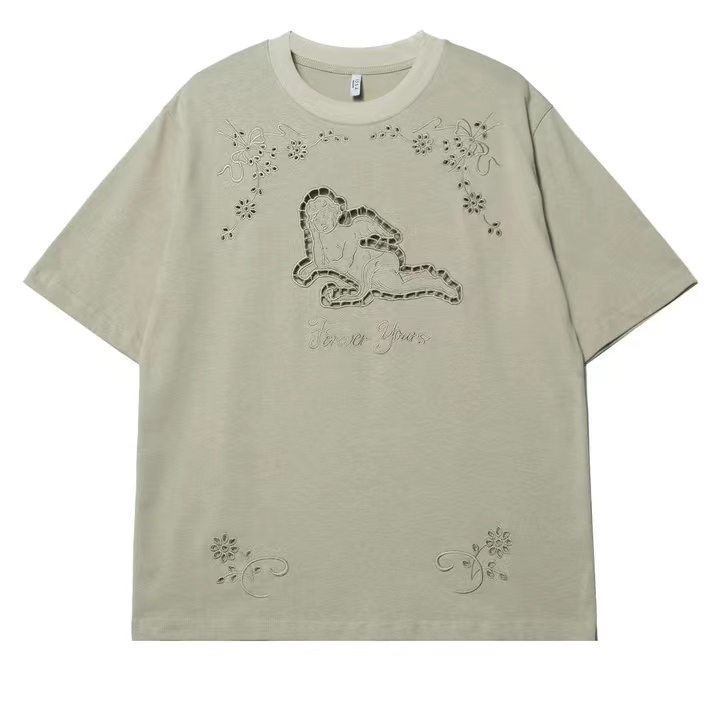 T226天使休闲情侣男士夏季宽松印花设计师圆领街头男女同款T恤