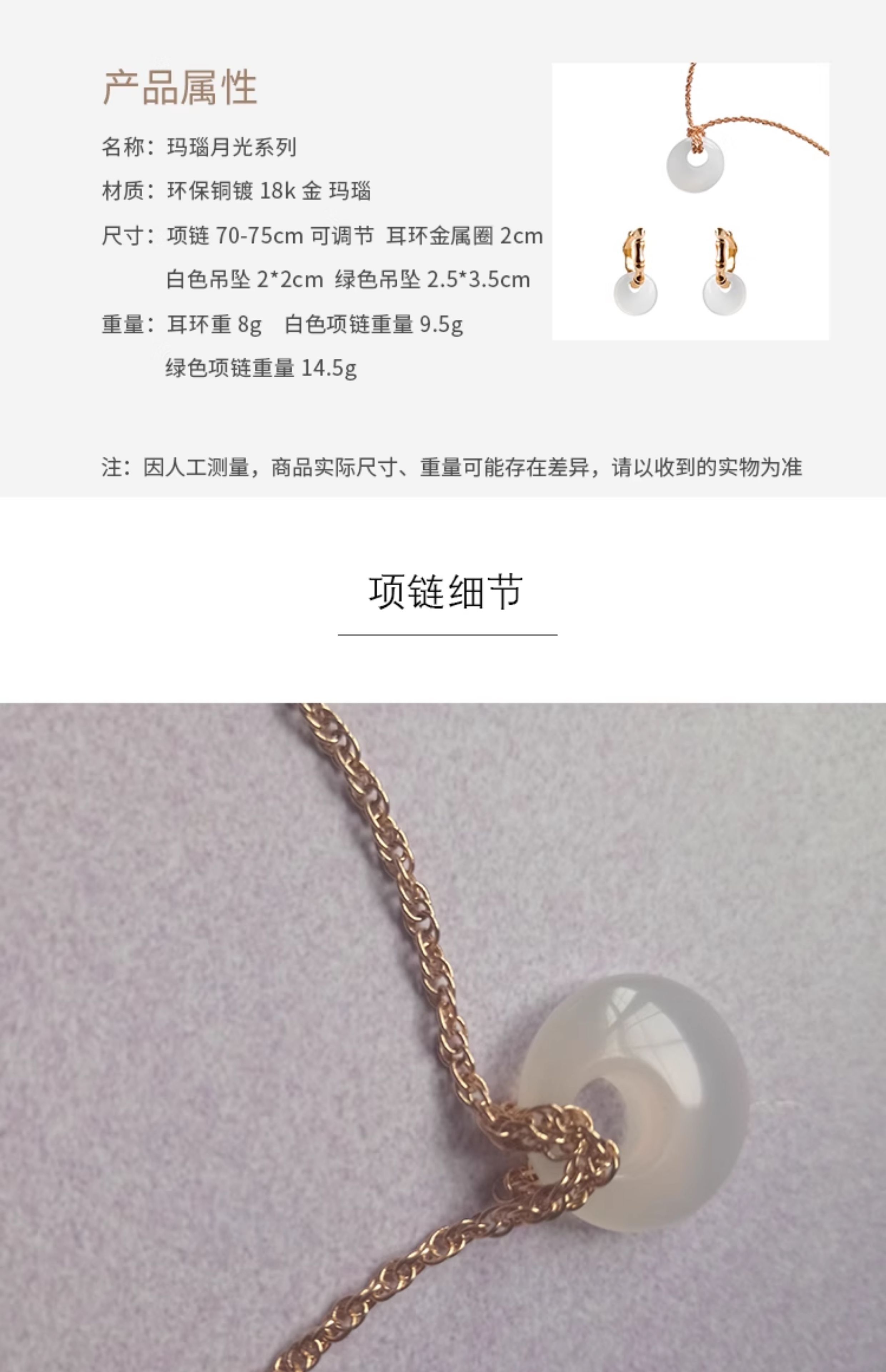 LHWINDSOR 原创设计新中式风白玛瑙月光系列项链耳环套装