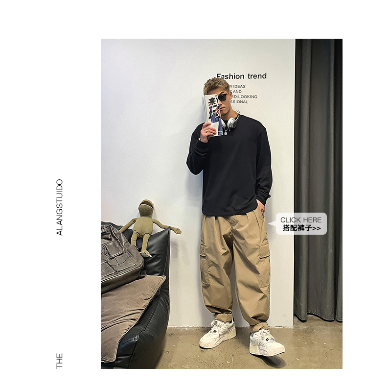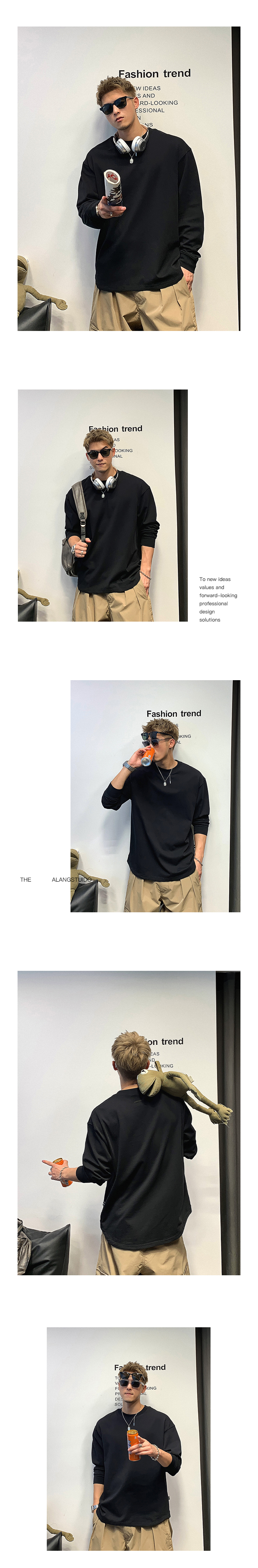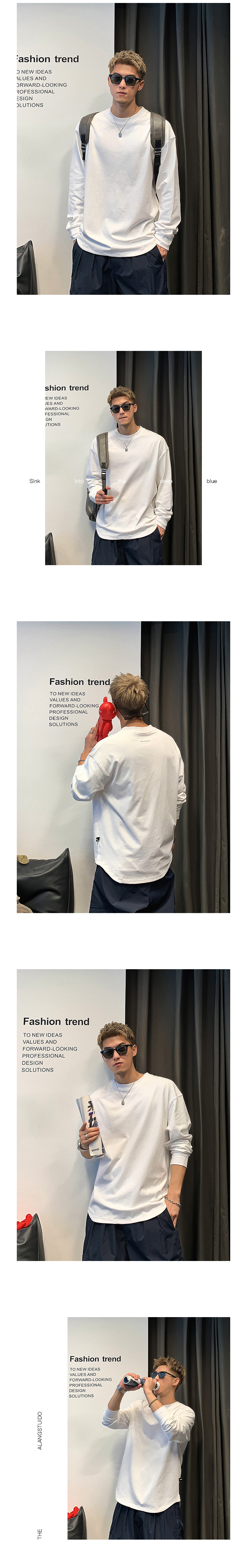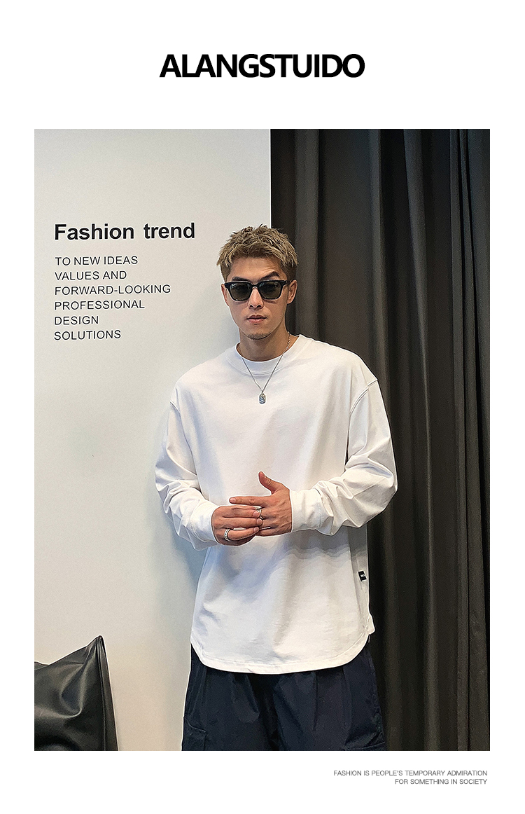徐太浪白色纯棉长袖t恤男春秋潮牌日系男装大码内搭打底衫上衣潮