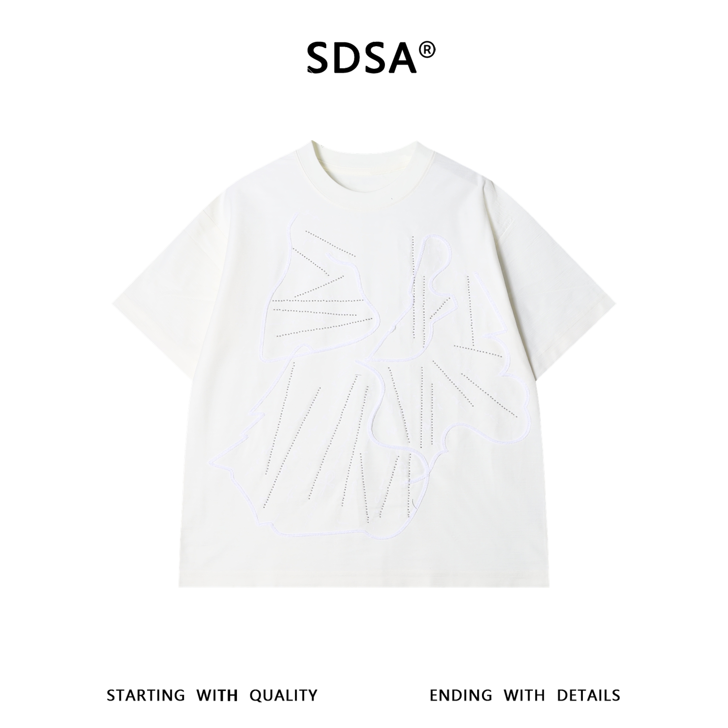 SDSA男装2026新款高贵轻奢潮牌抽象贴布烫钻圆领短袖T恤百搭痞帅