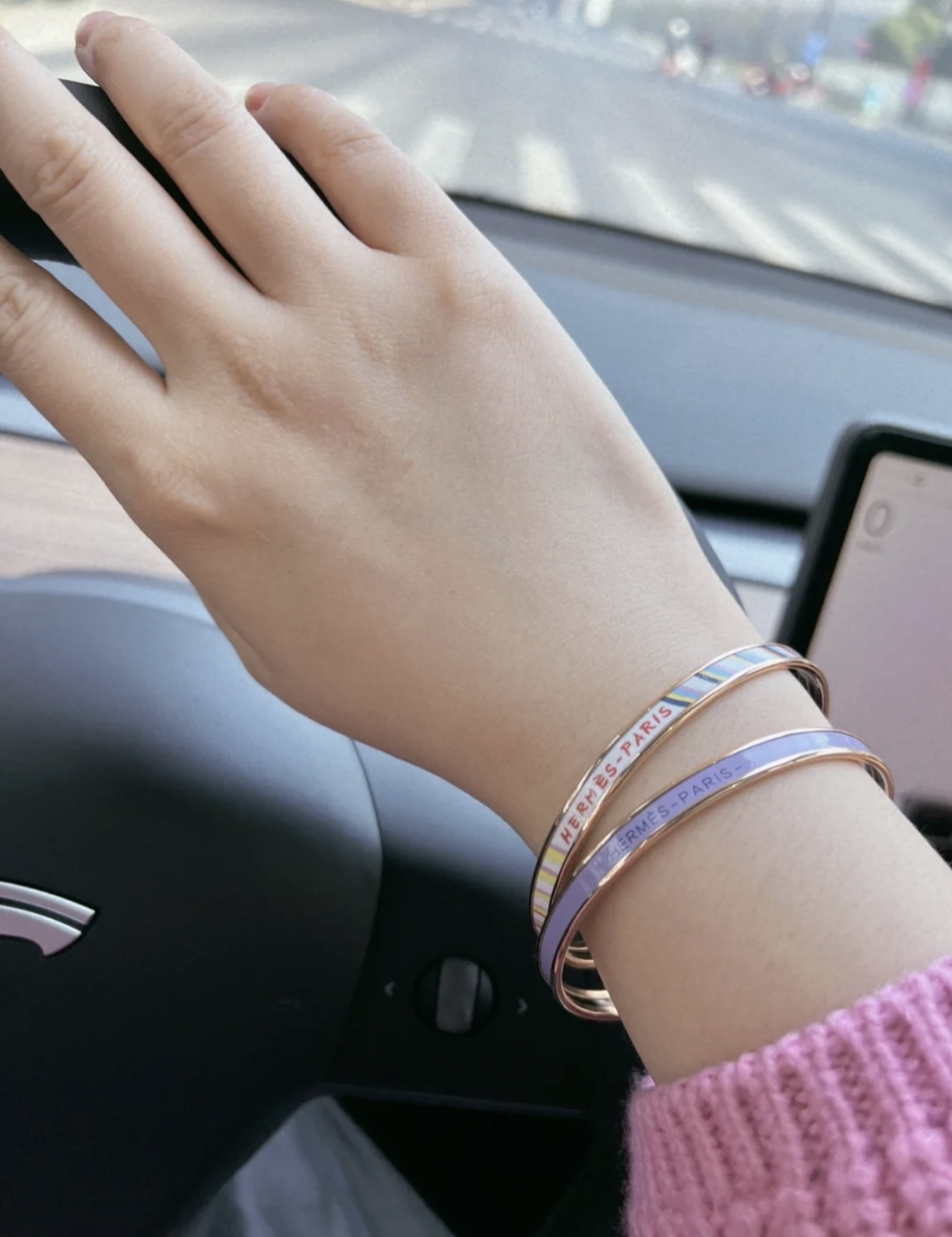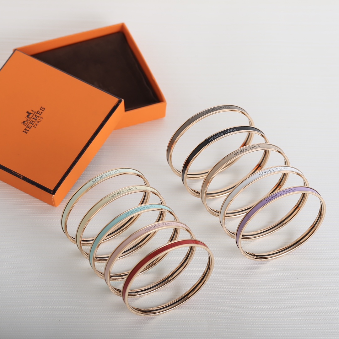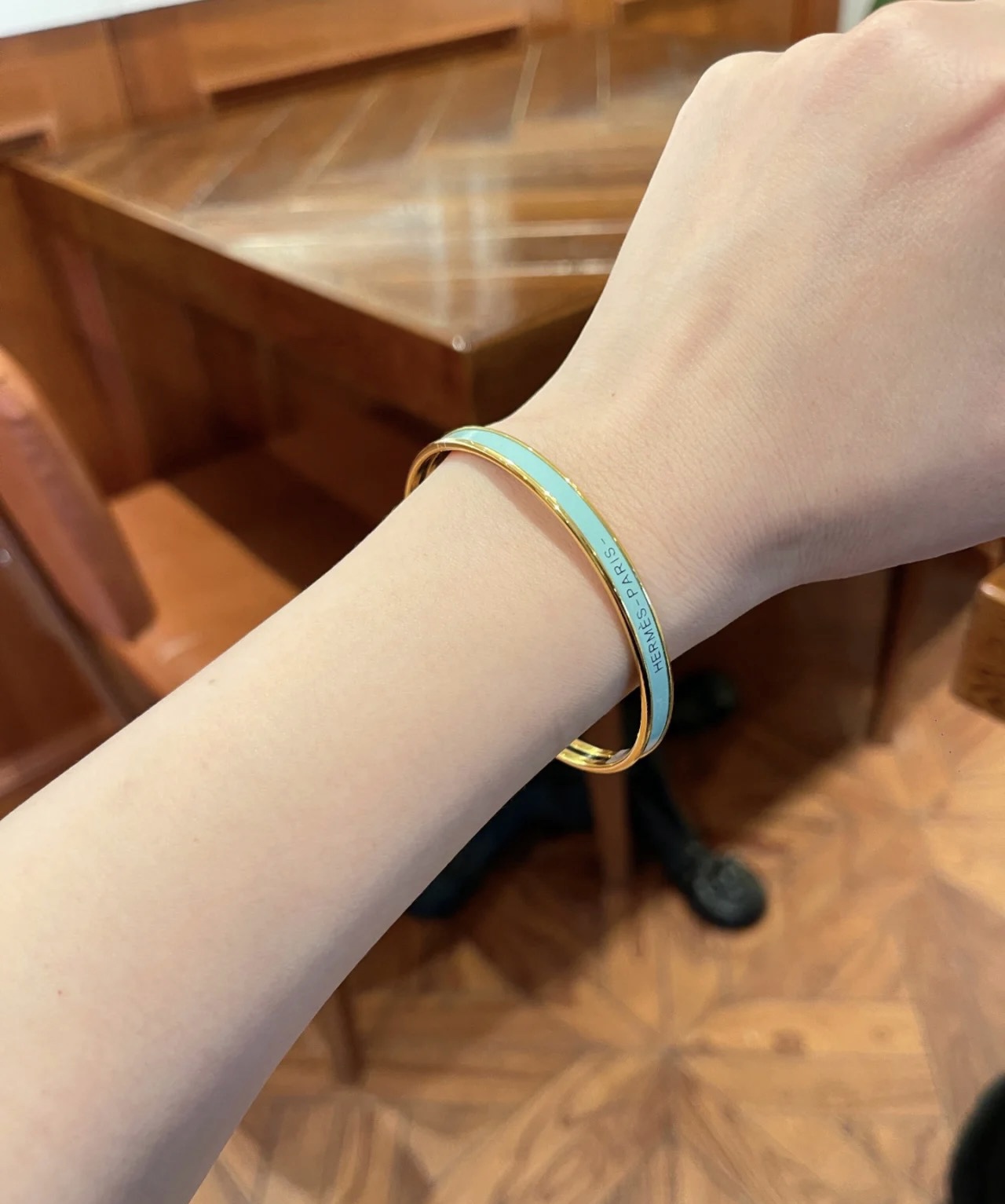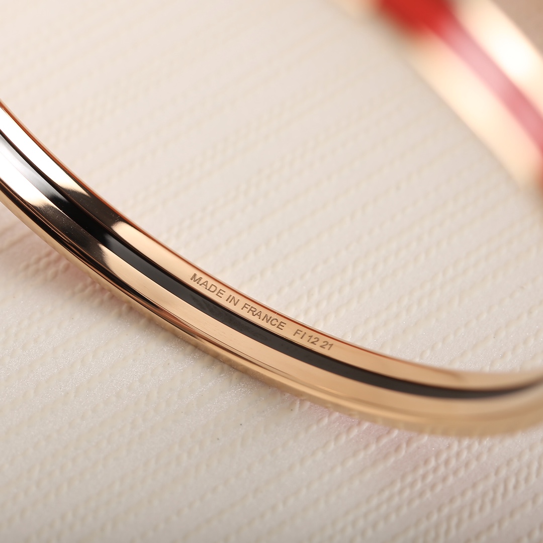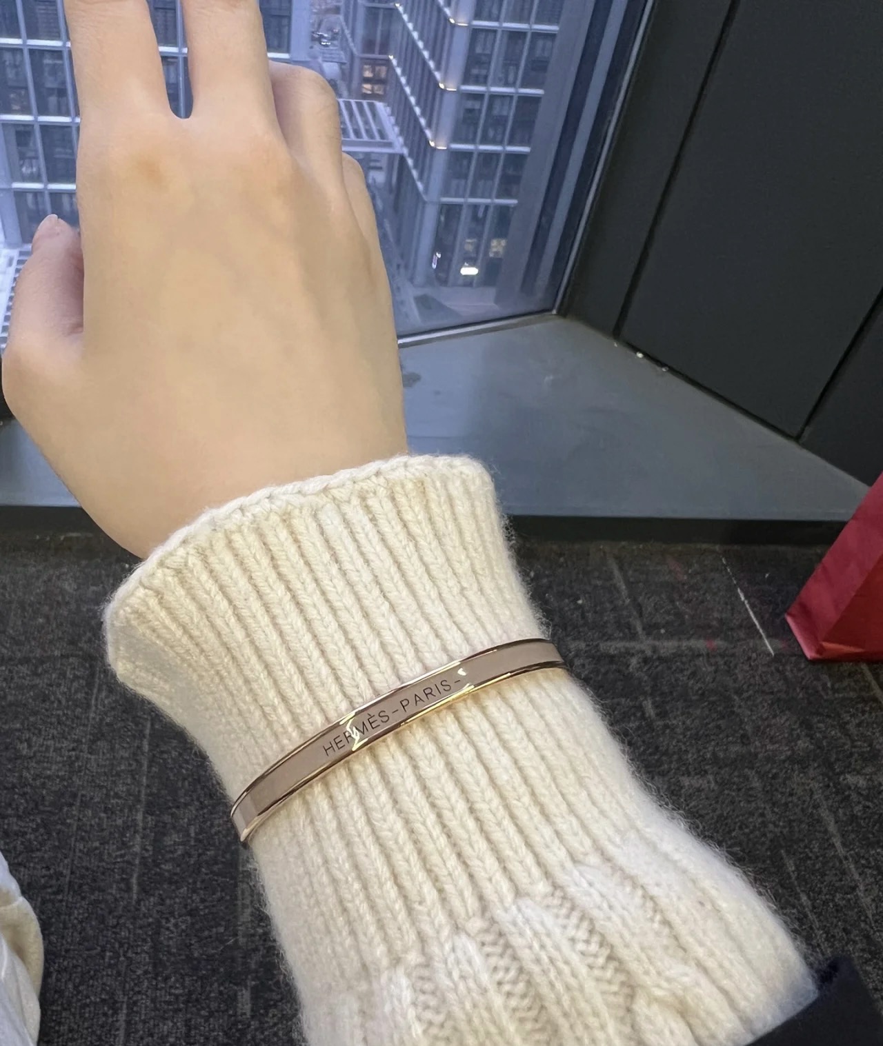 超正珐琅配色均匀而有光泽 ,品牌字母logo印花点缀其间。五金亲肤又有份量随便一上手,都非常时尚,单戴叠戴都好看!配送包装!