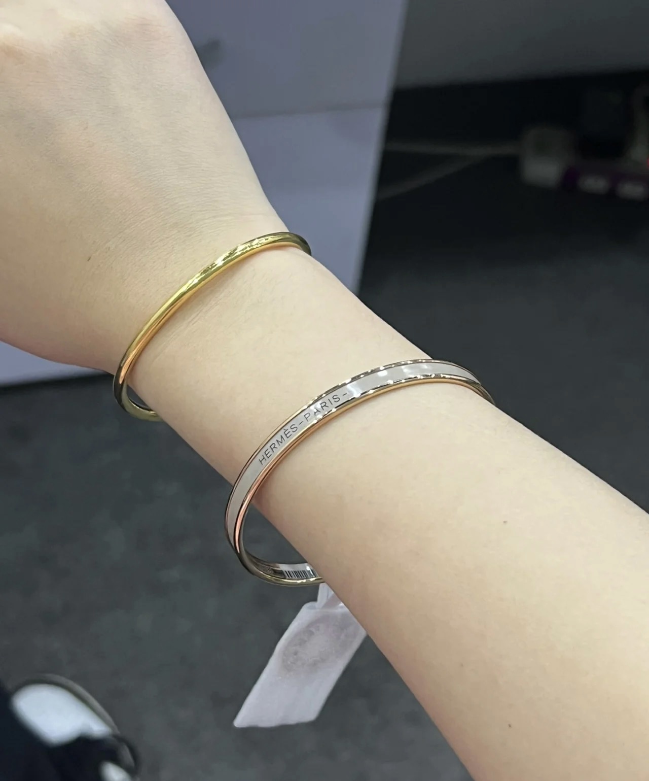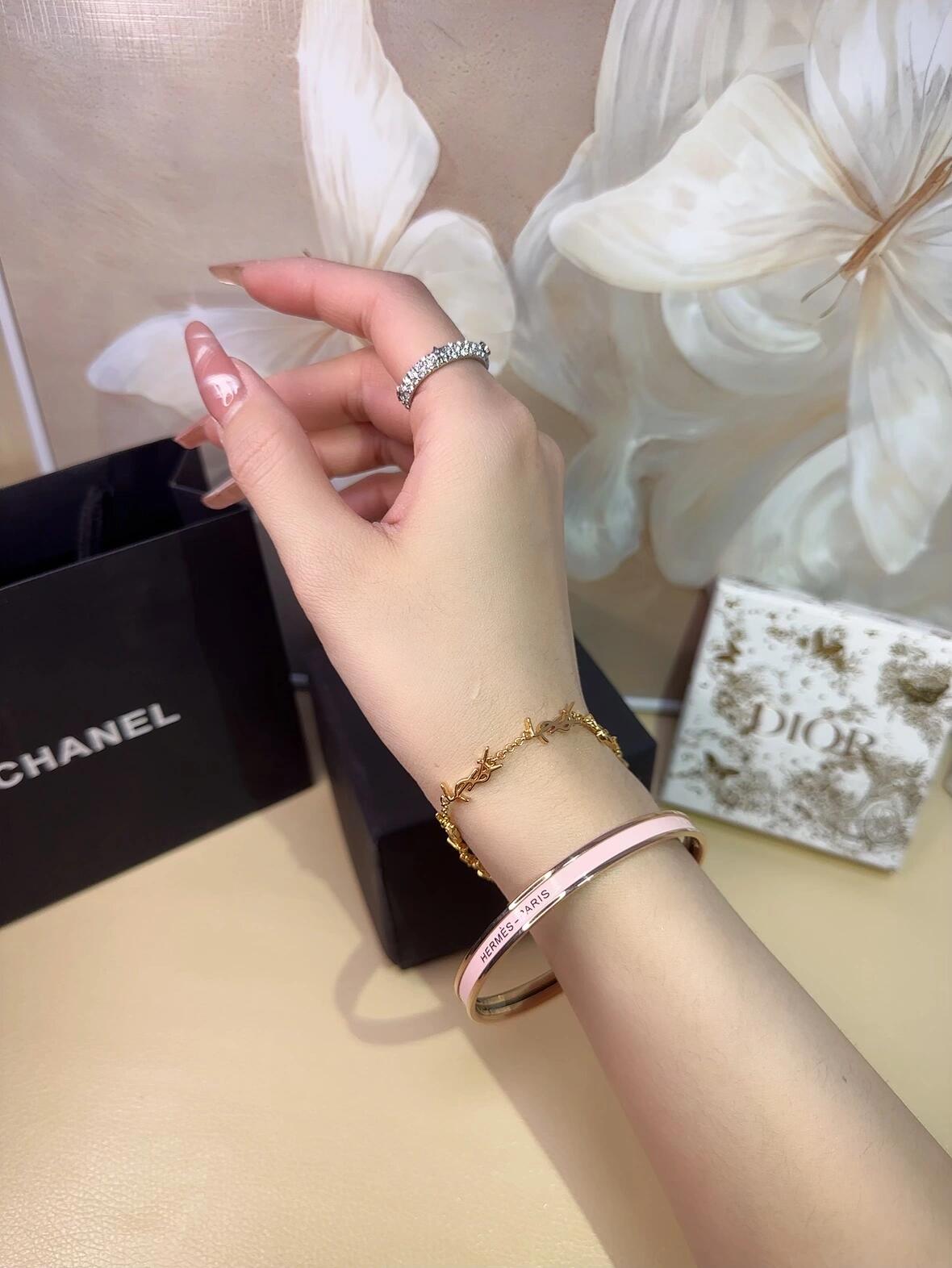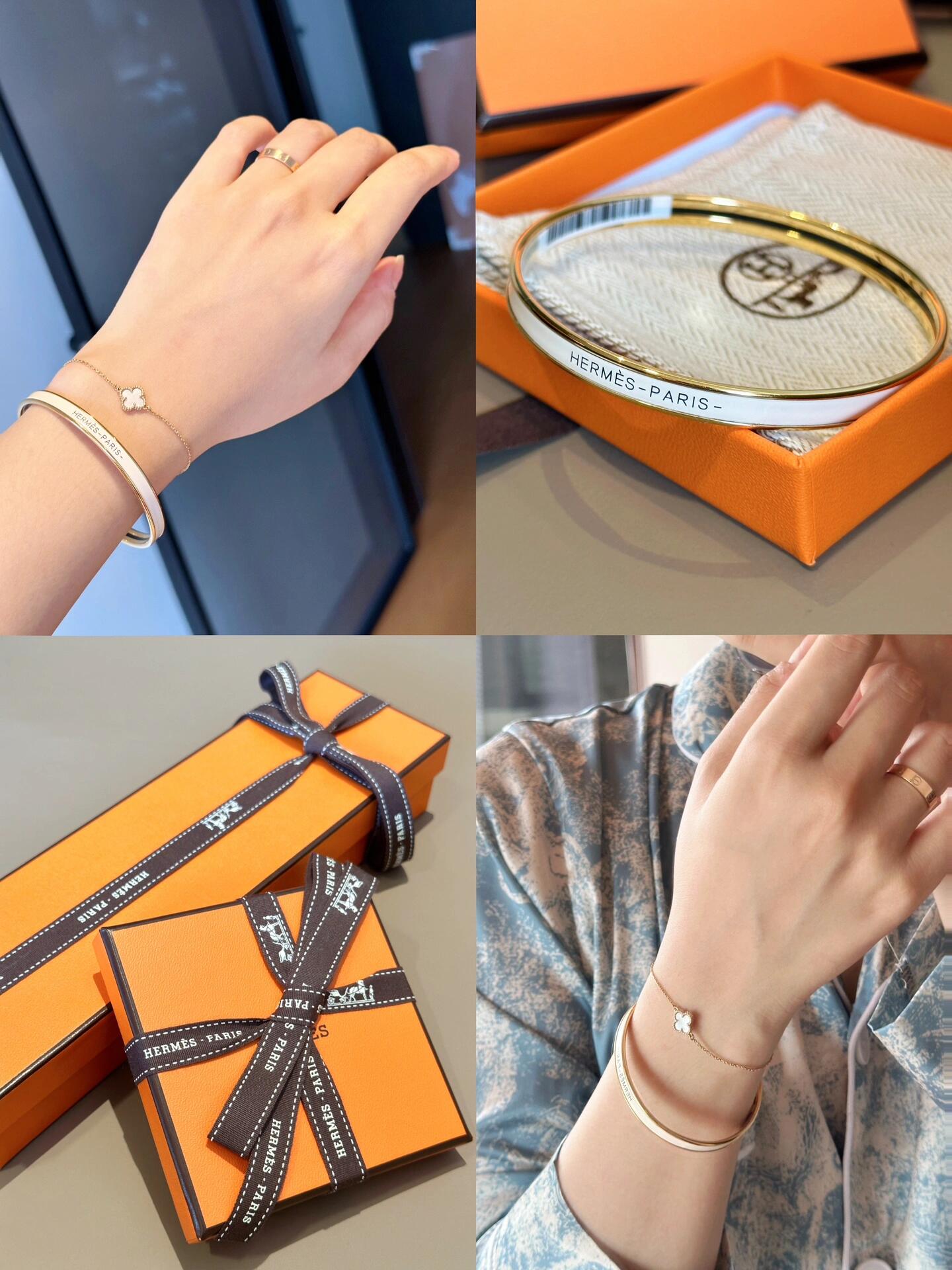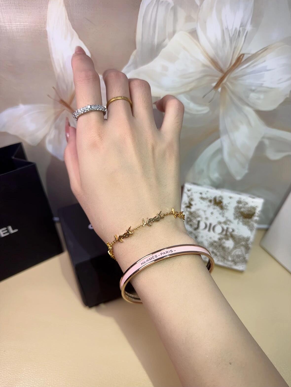超正珐琅配色均匀而有光泽 ,品牌字母logo印花点缀其间。五金亲肤又有份量随便一上手,都非常时尚,单戴叠戴都好看!配送包装!