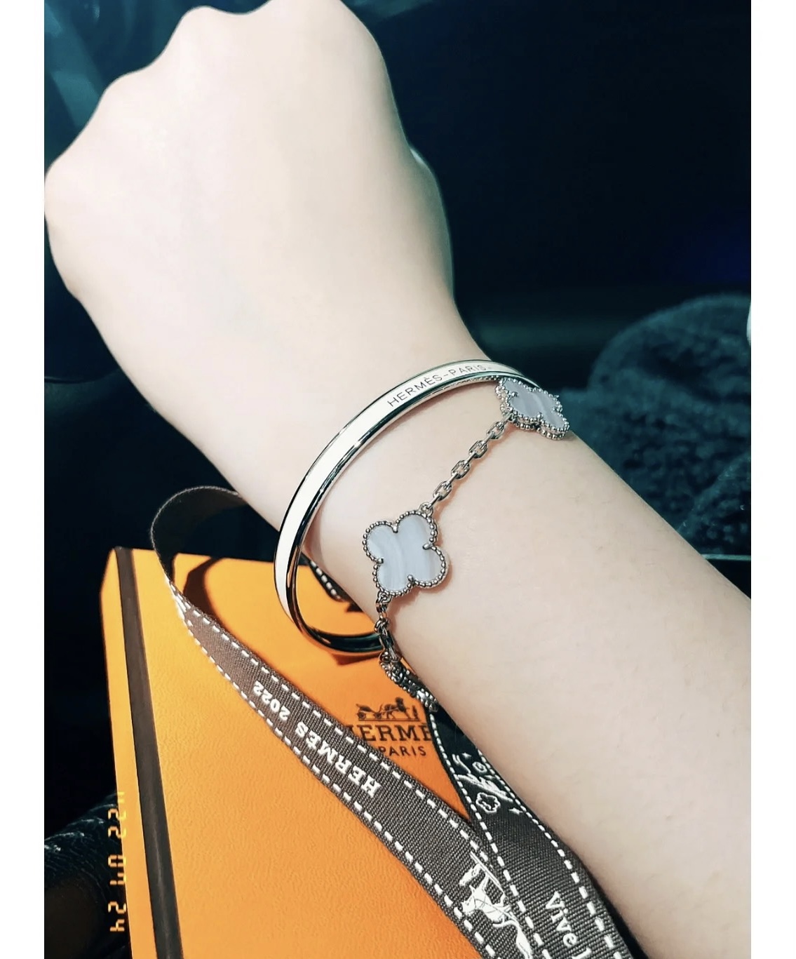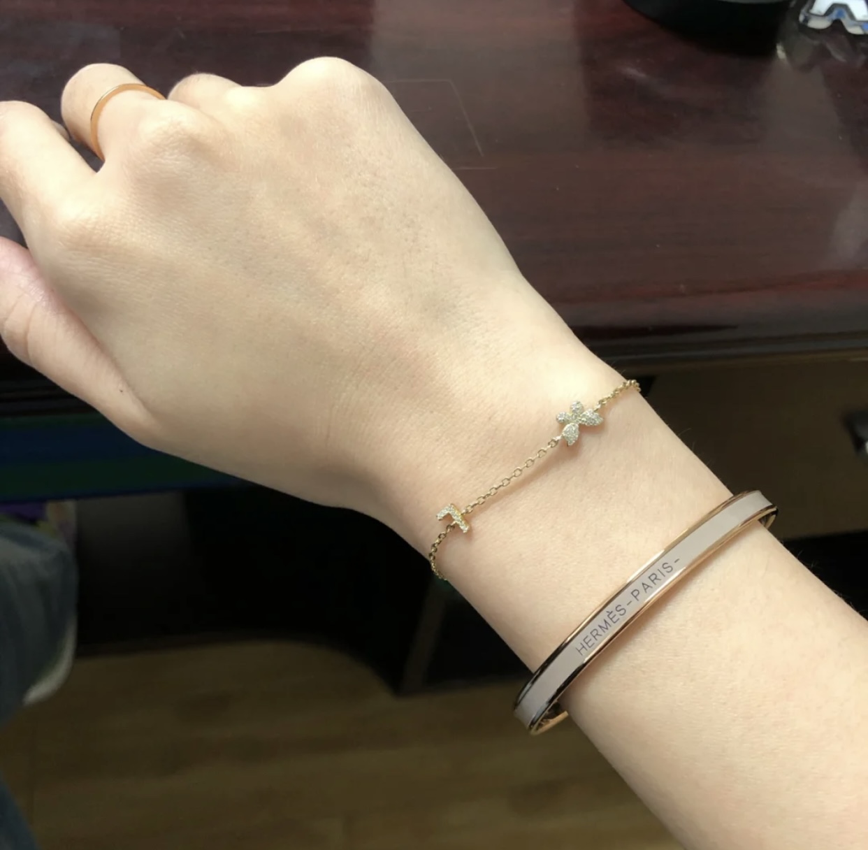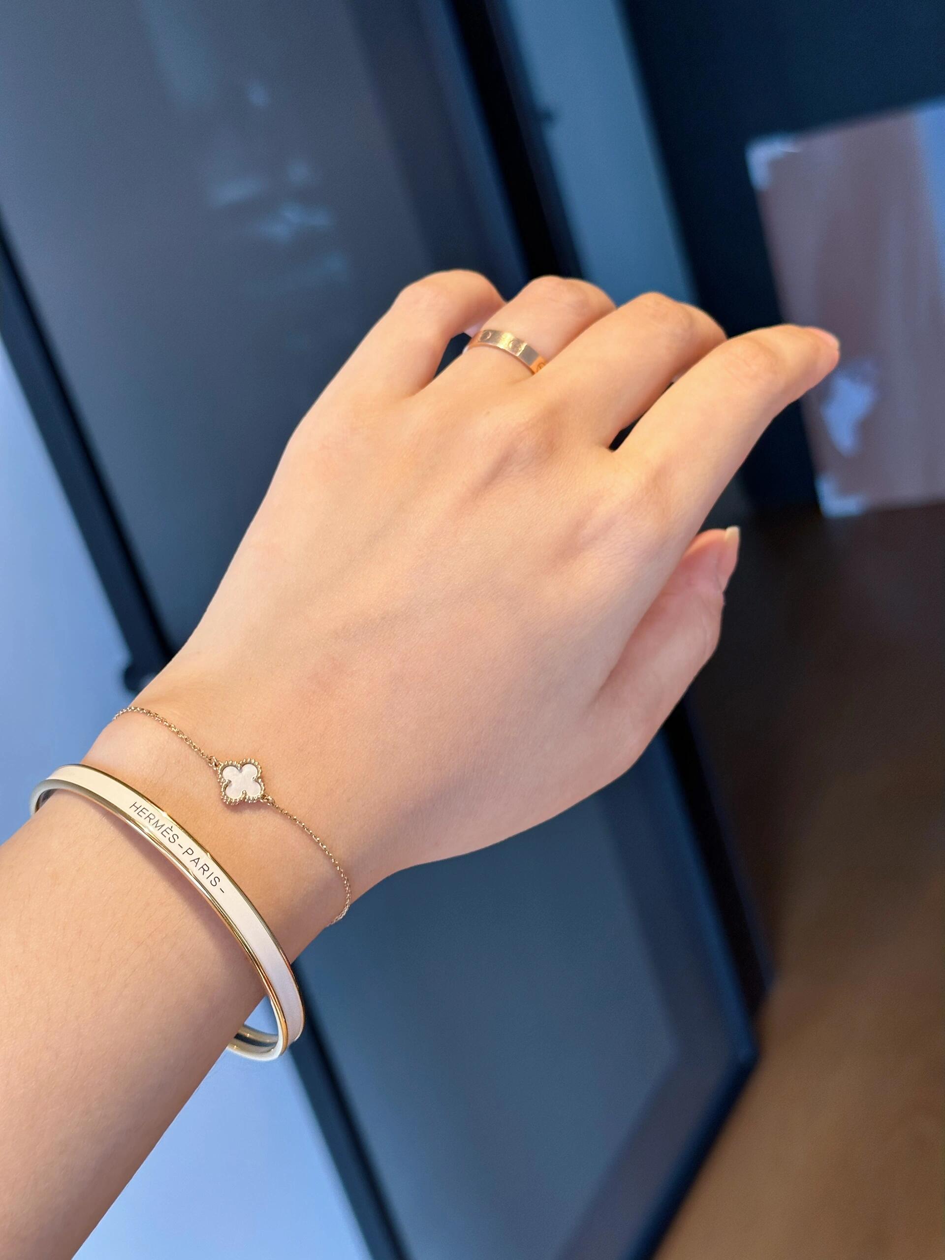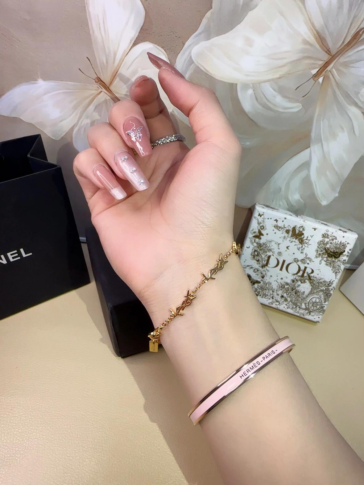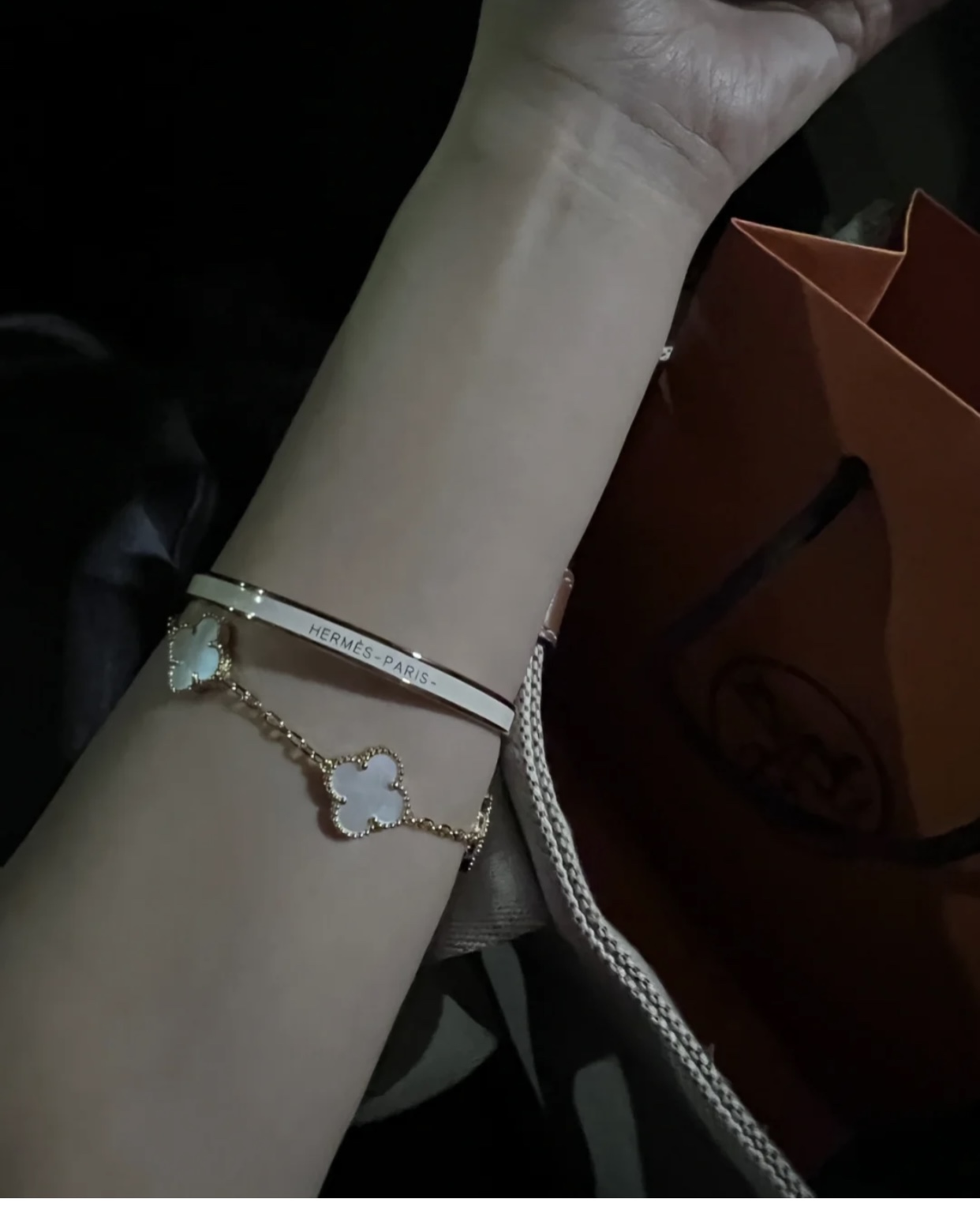 超正珐琅配色均匀而有光泽 ,品牌字母logo印花点缀其间。五金亲肤又有份量随便一上手,都非常时尚,单戴叠戴都好看!配送包装!