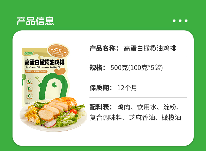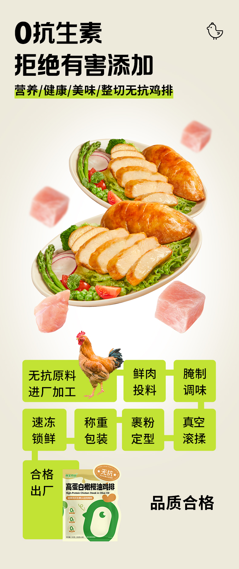 【顺丰快递】橄榄油无抗鸡排 只做整切高蛋白无抗鸡排 全程可追溯无抗认证鸡肉 无激素无抗生素无色素香精 BGJSP