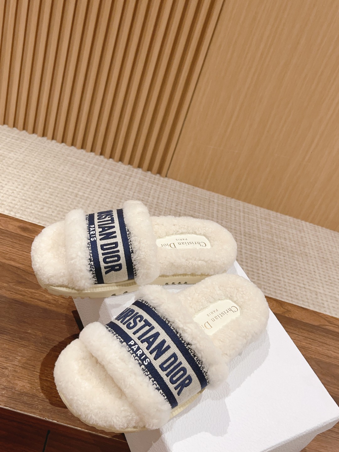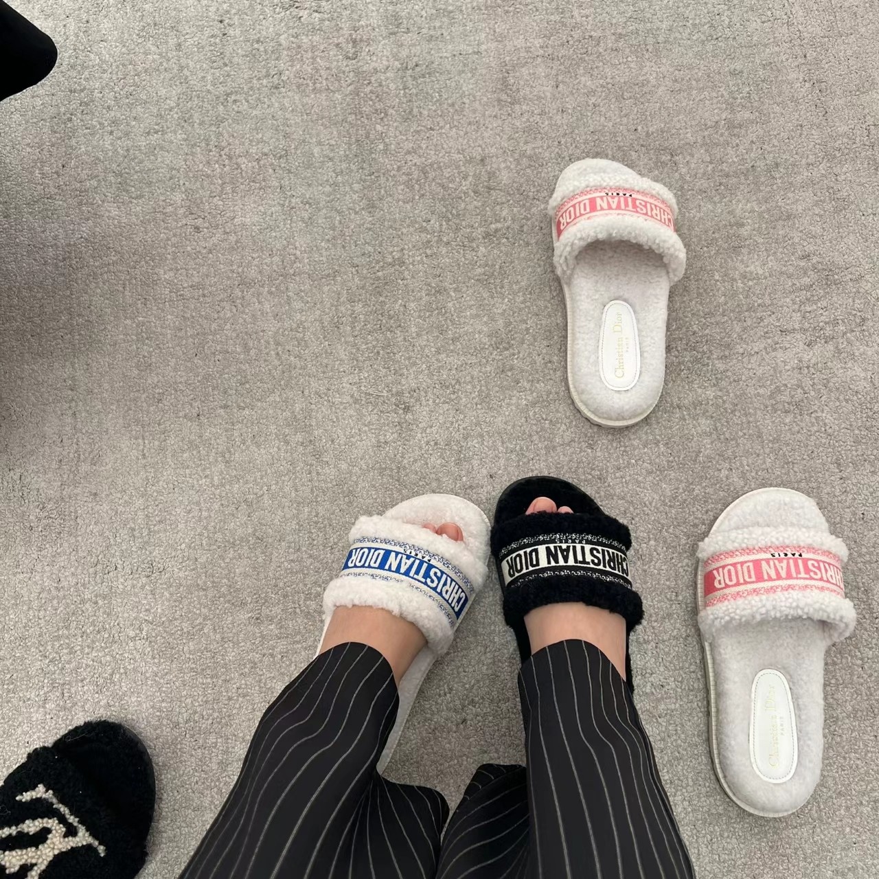 𝐂𝐡𝐫𝐢𝐬𝐭𝐢𝐚𝐧 𝐃𝐢𝐨𝐫 迪奥刺绣条纹logo加绒毛里一字平底拖鞋 秋冬新款羊毛拖鞋 让我重新爱了它一次!这季节美鞋太多这款毛拖真的是让我无法自拔真太可爱了~ 欧洲进口羊毛(不掺入任何假毛) 原版开模超轻鞋底 Size:35-39(40-42定做不退换)