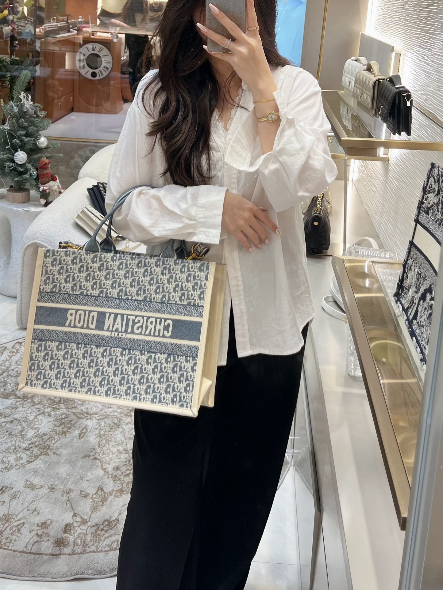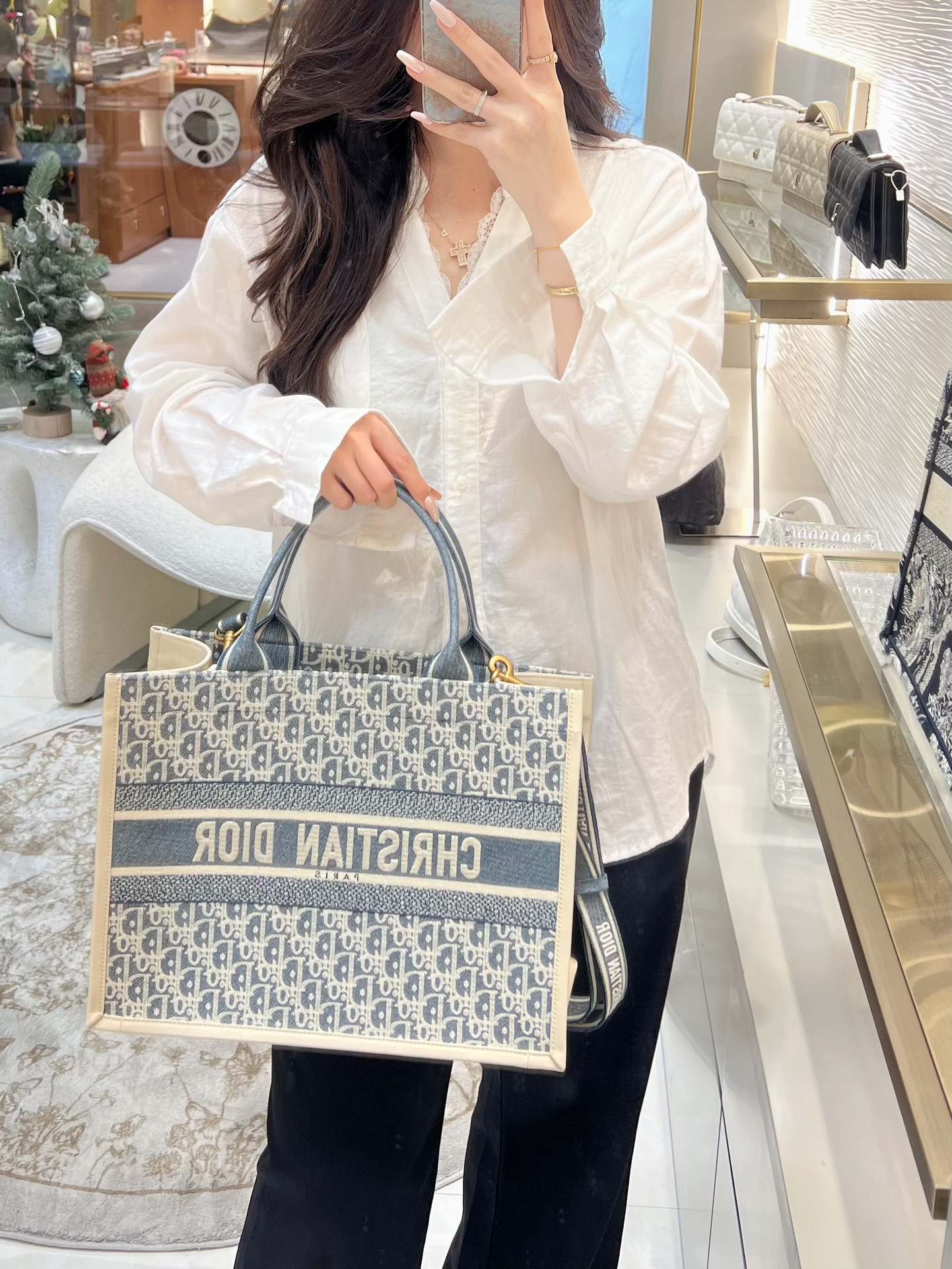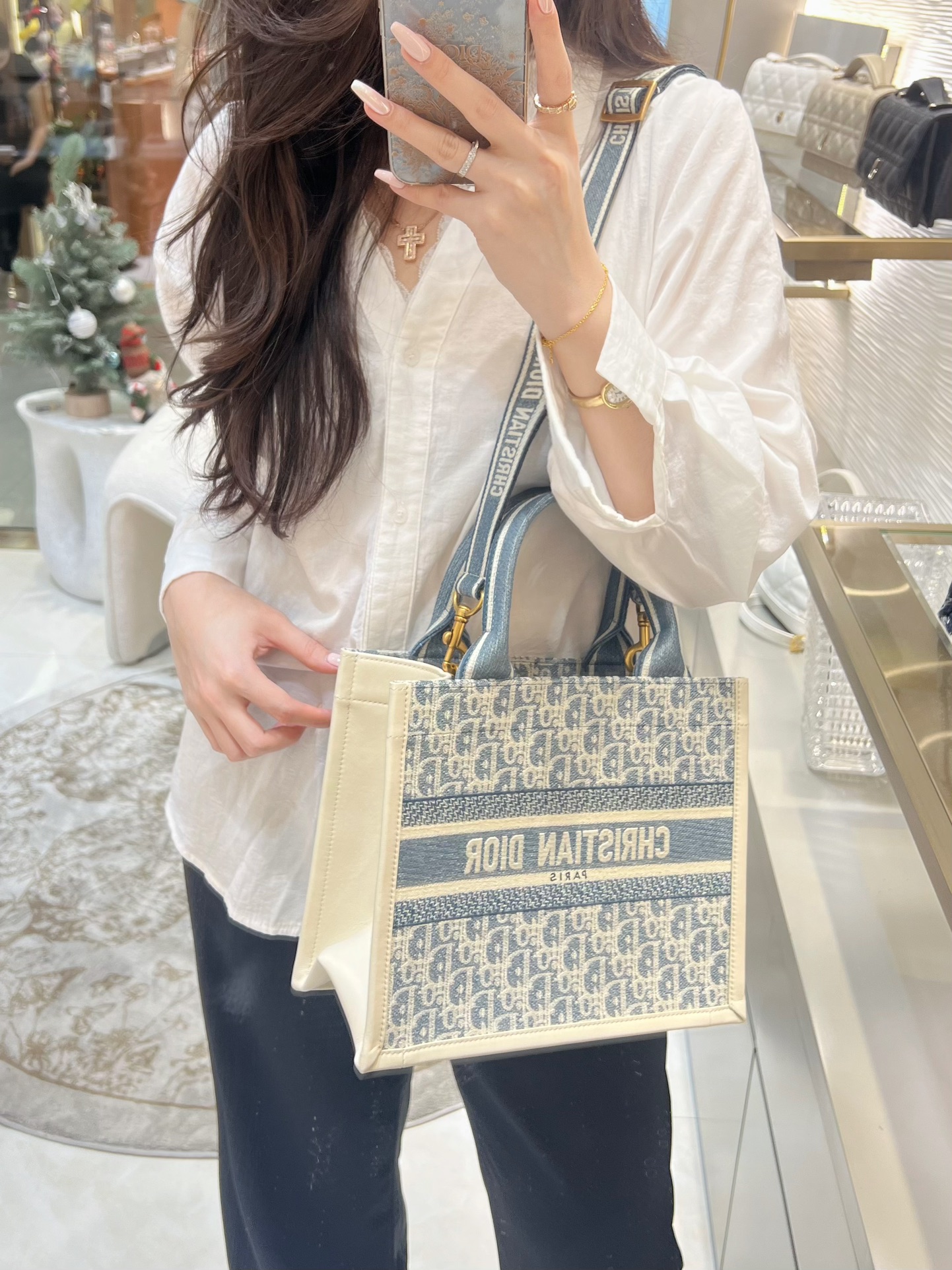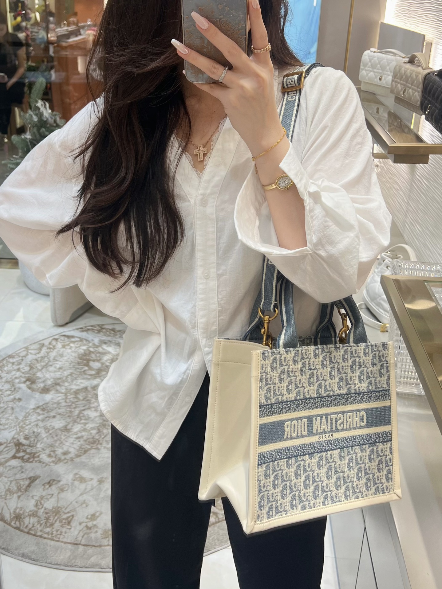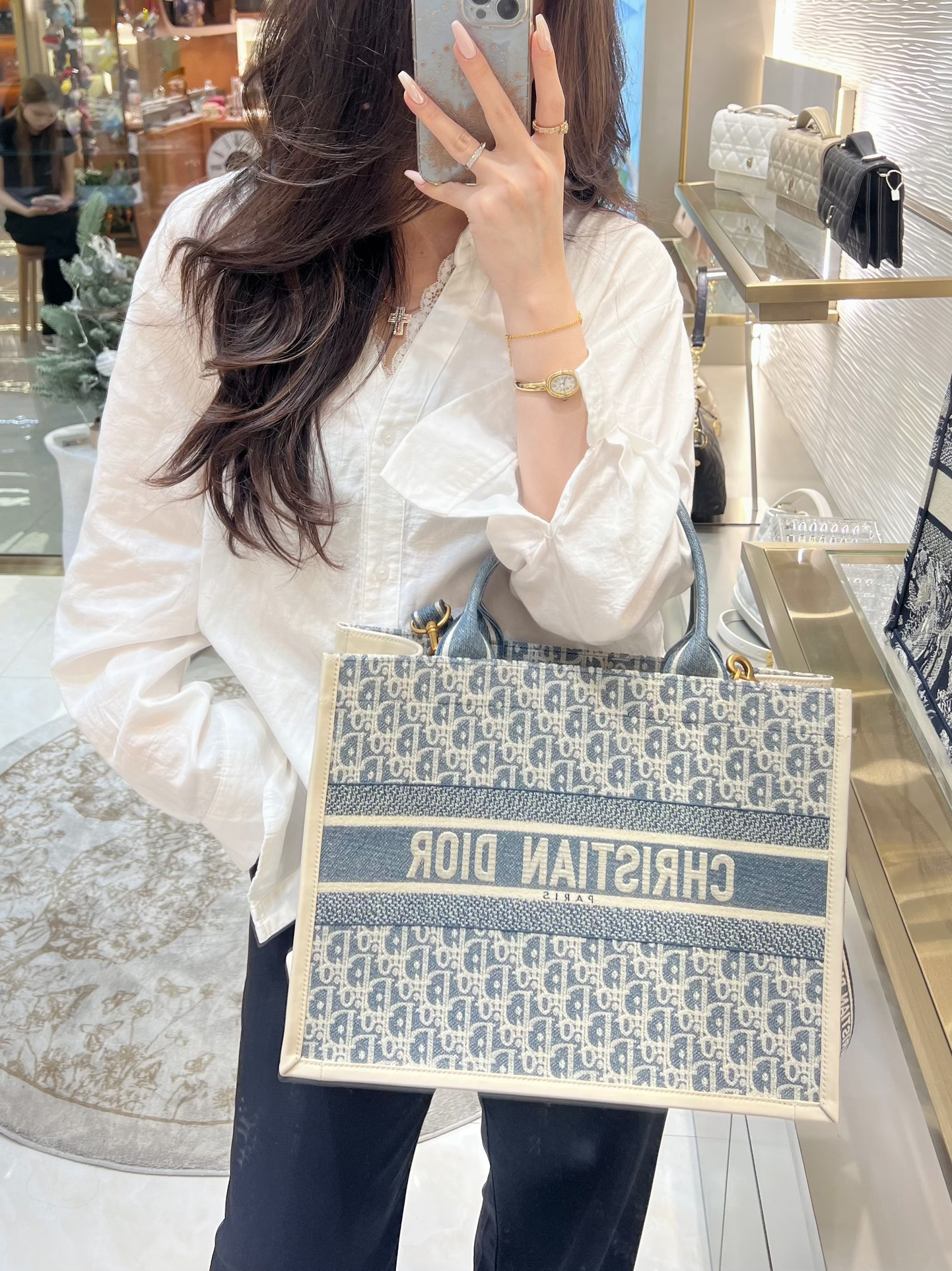 迪奥BOOK TOTE托特摩登又精致 经典老花刺绣拼接牛皮小号中号(MM)