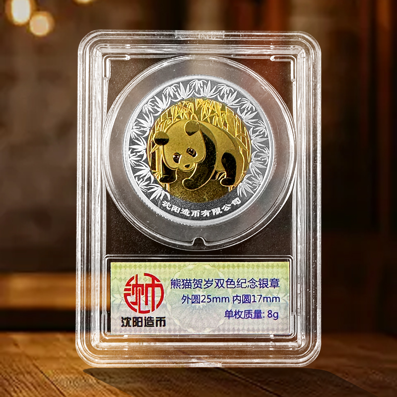 熊猫贺岁狗年双色纪念章 含纯银8克 沈阳造币出品