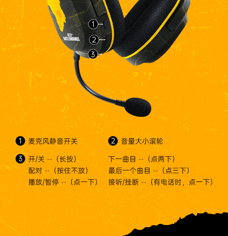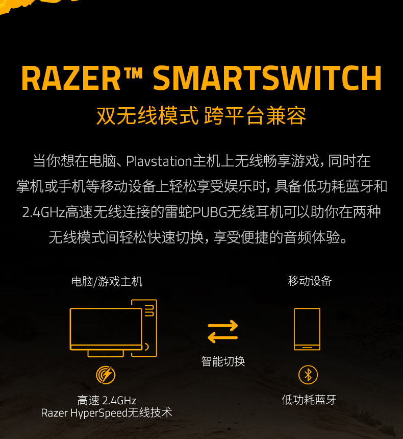 Razer雷蛇PUBG绝地求生联名款 梭鱼X无线耳机 【雷蛇官方直营,3年有限质保】