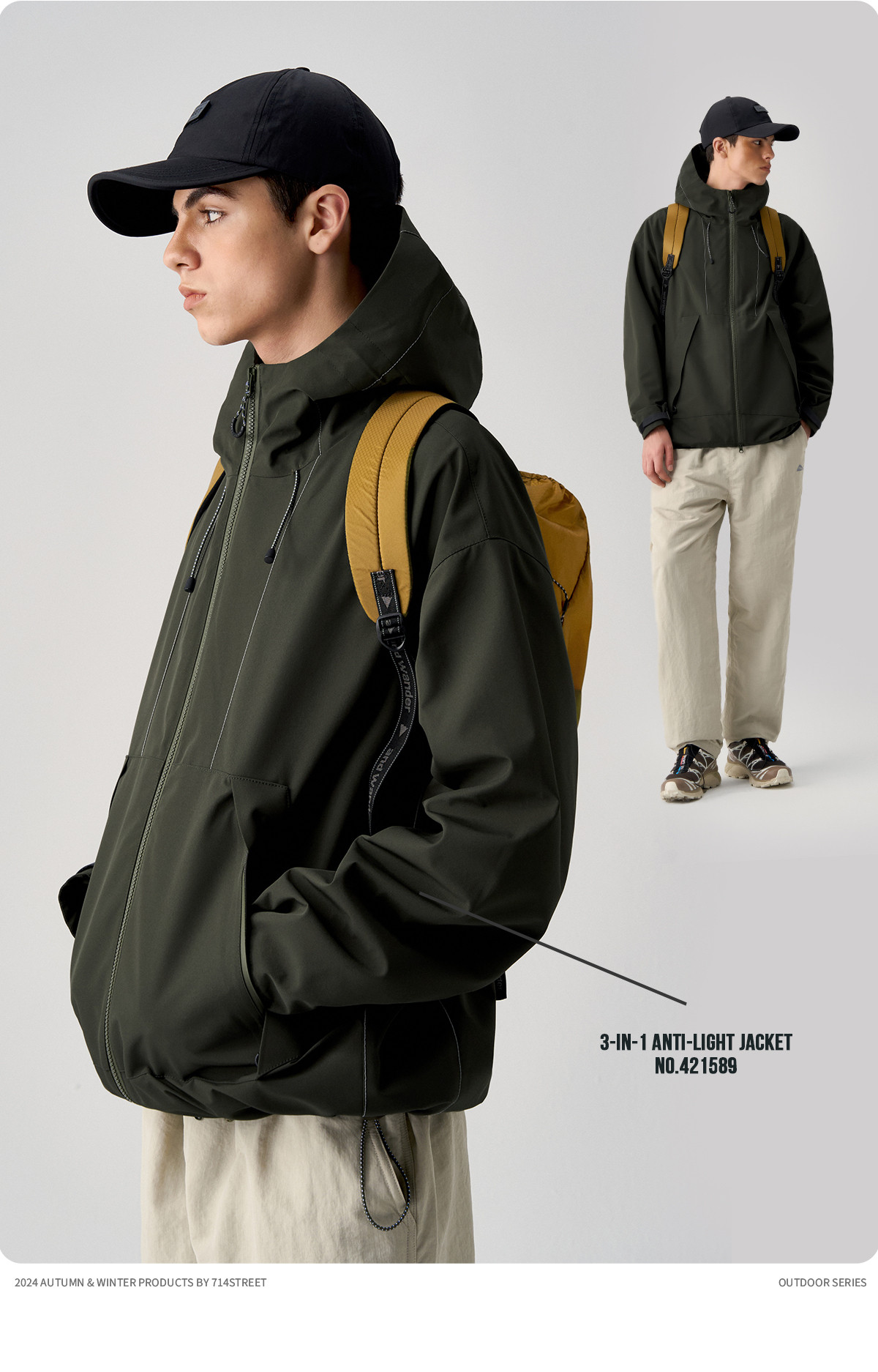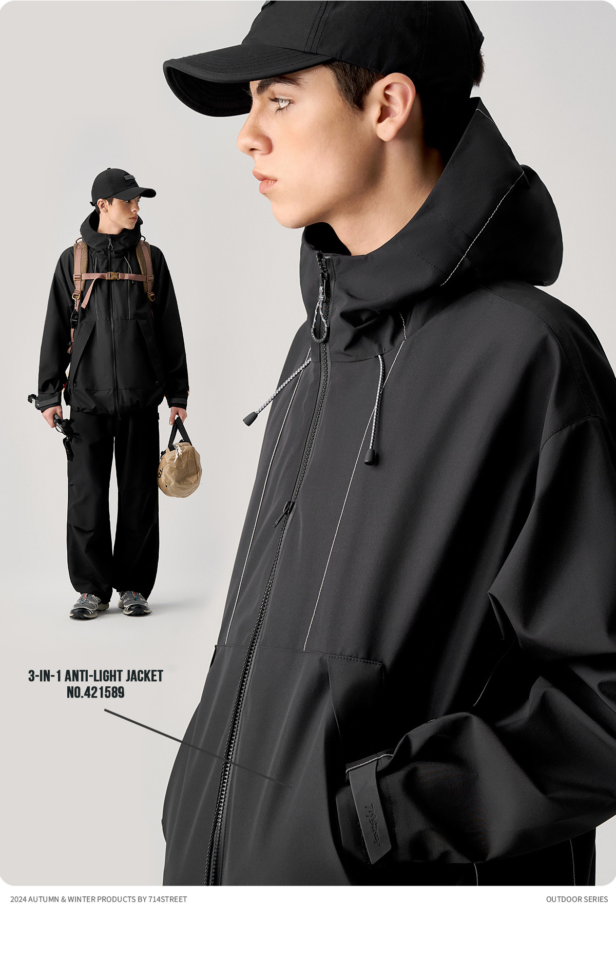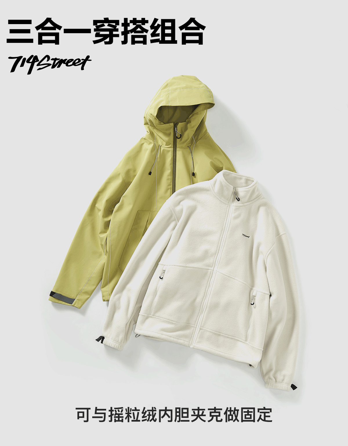714street山系户外反光防风三合一冲锋衣外套男秋季新款宽松夹克
